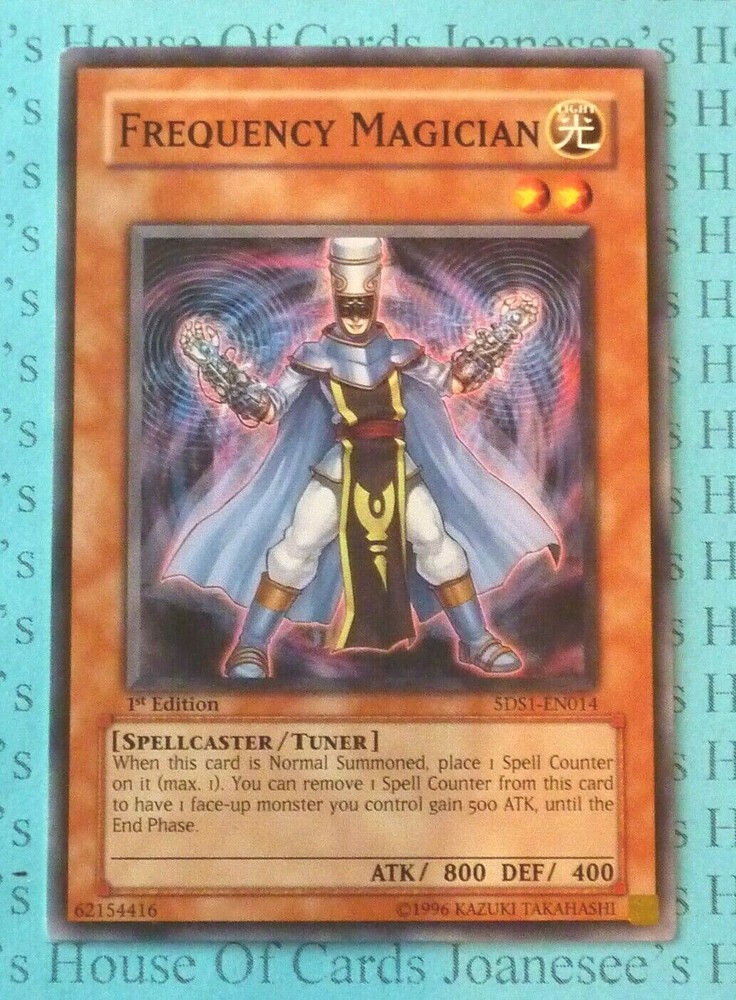 This is a Common Light Spellcaster Tuner Frequency Magician 2 Stars ATK/800 DEF/400 Card text: When this card is Normal Summoned, place 1 Spell Counter on it (max. 1). You can remove 1 Spell Counter from this card to have 1 face-up monster you control gain 500 ATK, until the End Phase. 5DS1 -EN014 1st Edition English Mint/NMint Condition Totally Original Konami (or your money back!) I will deliver in safe packaging to keep it in perfect condition. Ideal for players and collectors alike. Check out my other items! I will combine postage costs for multiple purchases. Sign up for my email newsletters by adding my eBay Shop to your favourites