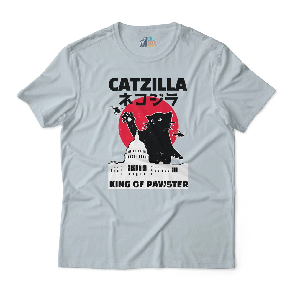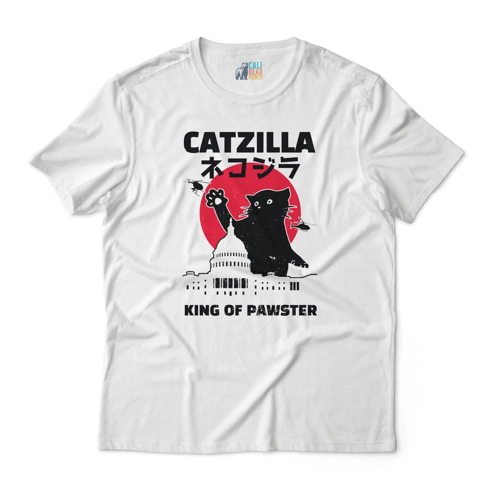 Fun “CATZILLA” Graphic T-Shirt - King of Pawster, Black Cat Godzilla Design - Unisex Product Details Unleash your inner monster with this fun and quirky graphic t-shirt featuring a hilarious “CATZILLA” design! This shirt showcases a black cat posed like the iconic Godzilla, with one paw raised as if stomping on the Capitol building in Washington, D.C., depicted below in silhouette form. The bold text “CATZILLA” and “KING OF PAWSTER” adds a touch of humor and political satire, making it a perfect conversation starter. Ideal for cat lovers, pop culture enthusiasts, and anyone with a sense of humor. Super soft and comfortable fabric 100% Cotton High quality print and finish Vivid and crisp full-color graphic print made to last Graphics printed in USA Machine washable Wash cold inside out Fast shipping About Us We offer a wide variety of original and novelty graphic artwork tees from simplistic to eye-catching rich-in-color image designs. Our graphic shirts are proudly printed in the USA using the latest printer technology that boasts a sharp, vibrant and long-lasting print output.