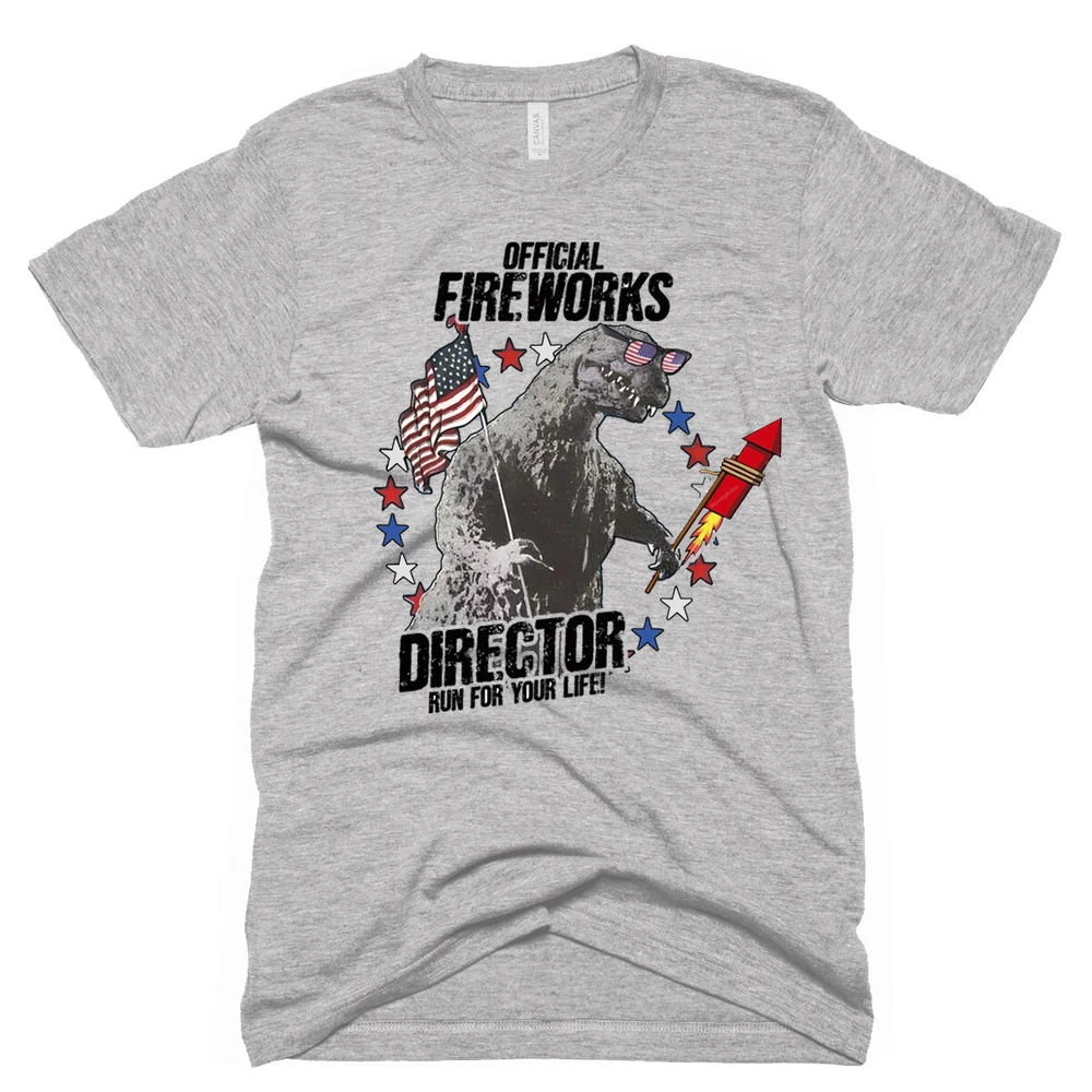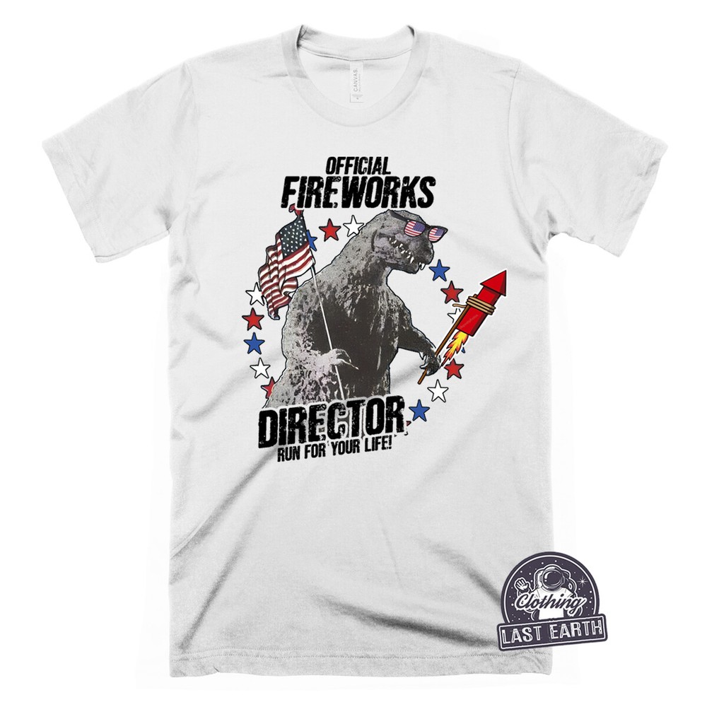 4th Of July Shirt, Official Fireworks Director TShirt, Mens Funny Godzilla Shirt [ QUALITY OF OUR T SHIRTS & INKS ] This graphic design will be printed on a super soft cotton, pre-shrunk durable tshirt . Our heather-ed tees are a soft poly cotton blend for an even softer feel. With 2 extra inches in length and durable stitch side seams you will love the soft feel and look of a true vintage styled tee. Satisfaction Guaranteed! We use non toxic eco friendly water based inks that are cured with forced air technology. Our inks have a soft hand feel to the touch. Every Tee is professionally hand screen printed through, high mesh aluminum screens for clear vibrant images. No cheap iron transfers here. [SIZE MEASUREMENTS] See Chart Our Mens / Unisex and kids run True to size. The size you normally wear should fit nicely. For our womens tee's If you are between sizes or prefer a little more room we recommend ordering one size up. Please refer to the size chart photo above for tee specification. [ SHIPPING & HANDLING ] * Orders ship out Fast within 1-3 business days * We ship everywhere! Thank you for shopping with us. If there is anything you need help with regarding color, sizes, or wholesale info please do not hesitate to contact us. Check out our shop announcements for special offers and promotions.