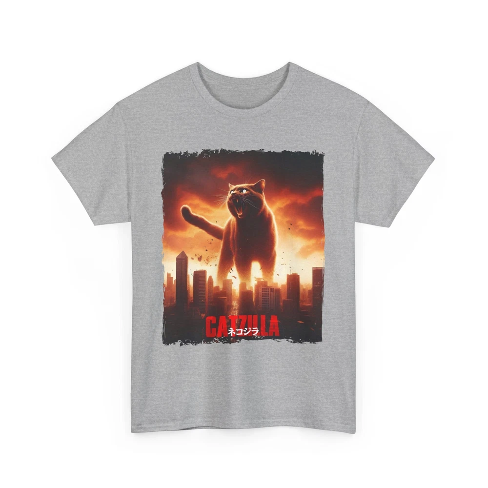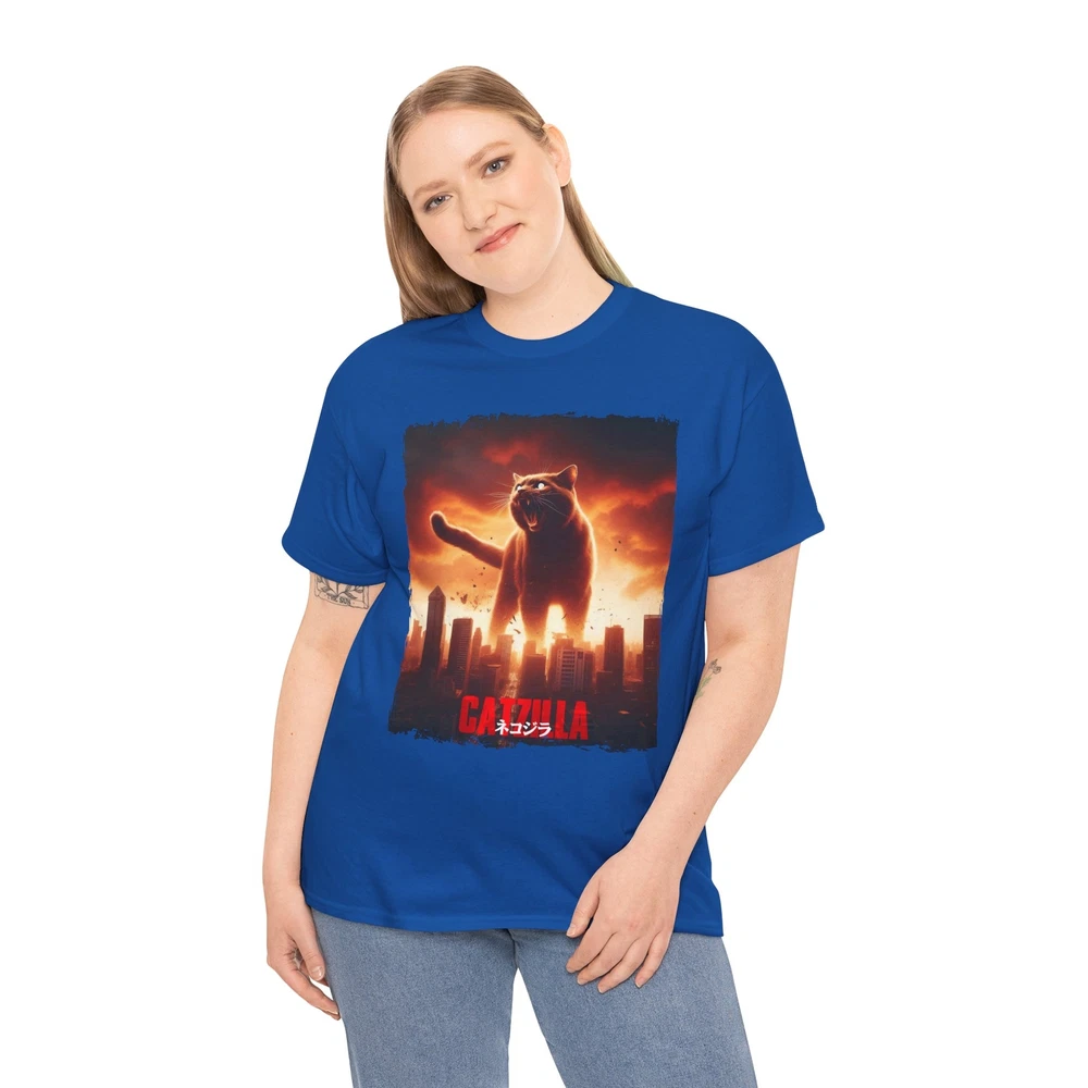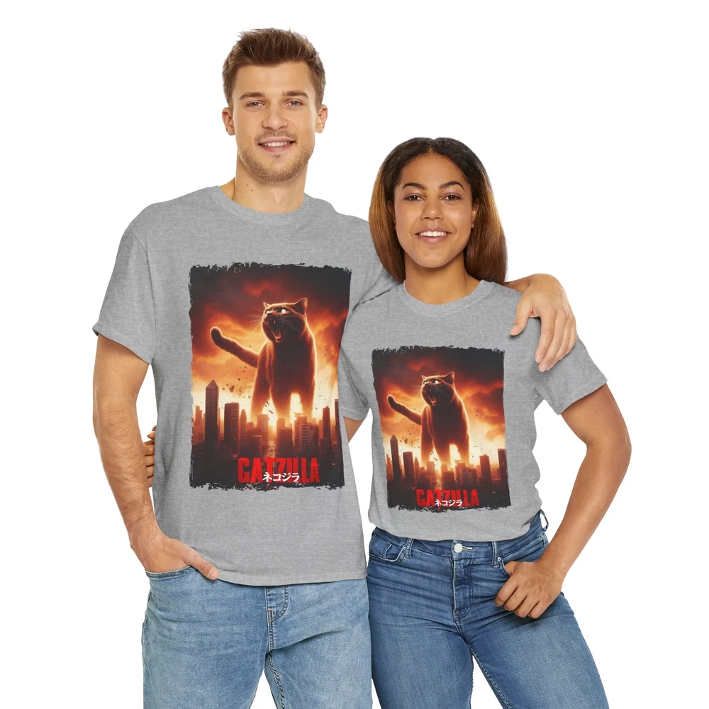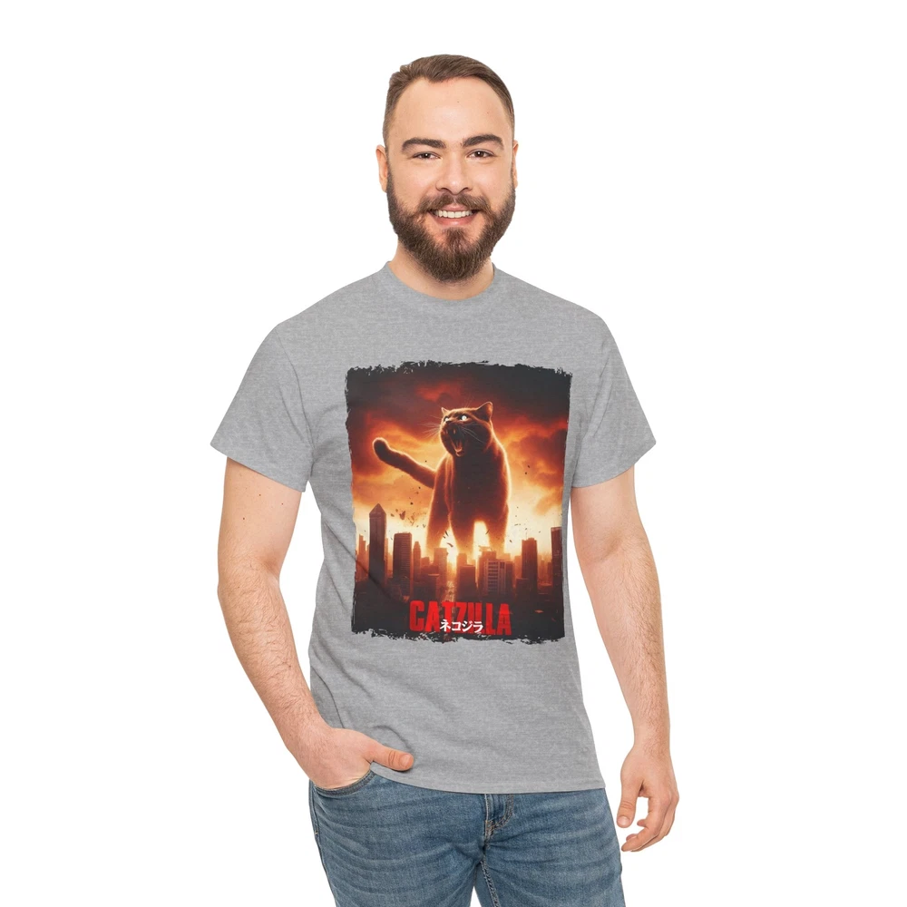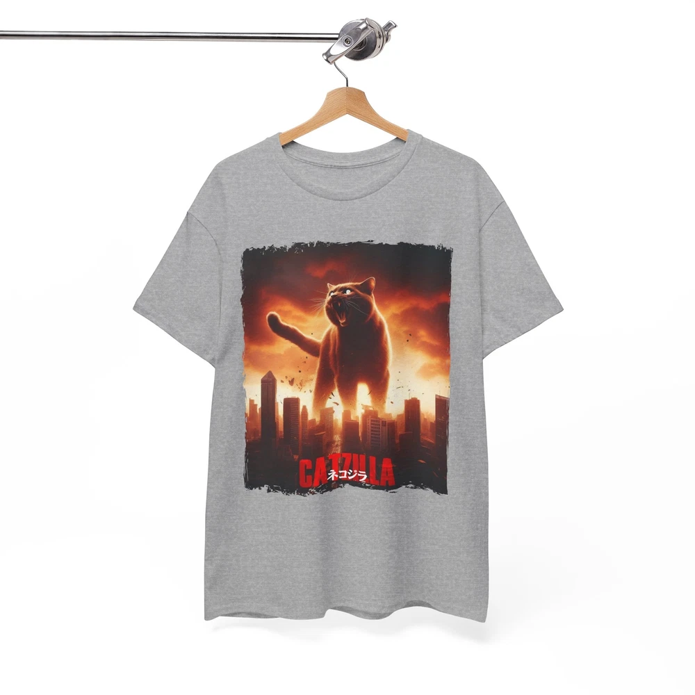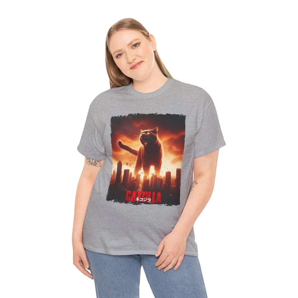 IMPERIAL S M L XL 2XL 3XL 4XL 5XL Width, in 18.00 20.00 22.00 24.00 26.00 28.00 30.00 32.00 Length, in 28.00 29.00 30.00 31.00 32.00 33.00 34.00 35.00 Sleeve length (from center back), in 15.10 16.50 18.00 19.50 21.00 22.40 23.70 25.00 Size tolerance, in 1.50 1.50 1.50 1.50 1.50 1.50 1.50 1.50 ------------------------------------------------------------------------------------------------------------------------------------------------------------------------------ METRIC S M L XL 2XL 3XL 4XL 5XL Width, cm 45.72 50.80 55.88 60.96 66.04 71.12 76.20 81.28 Length, cm 71.12 73.66 76.20 78.74 81.28 83.82 86.36 88.90 Sleeve length (from center back), cm 38.35 41.91 45.72 49.53 53.34 56.90 60.20 63.50 Size tolerance, cm 3.81 3.81 3.81 3.81 3.81 3.81 3.81 3.81 ----------------------------------------------------------------------------------------------------------------------------------------------------------------------------- Unleash feline chaos in style with our Catzilla T-Shirt , the ultimate tee for cat lovers who adore epic, funny, and monster-sized designs. Whether you're a fan of urban legends, Japanese kaiju culture, or just love a sassy cat with a giant attitude, this shirt is made for you. Crafted from 100% ethically grown U.S. cotton, this tee offers a durable yet soft medium-weight fabric (5.3 oz/yd² / 180 g/m²) that feels great on the skin and lasts wear after wear. Its classic fit ensures all-day comfort, while the crew neckline delivers a clean, timeless look perfect for both casual hangouts and relaxed weekends. Designed for cat lovers , kaiju fans , and anyone who enjoys bold, funny, and creative graphic tees, this shirt is more than just a novelty ? it's a wardrobe essential. The tear-away label guarantees a scratch-free experience with no irritation, and its Oeko-Tex certification means it's been tested for harmful substances, ensuring safety and peace of mind. Whether you're buying it for yourself or as a gift for a fellow cat fan, our Catzilla tee brings comfort, laughs, and style together in one perfect package. The unisex heavy cotton tee is the basic staple of any wardrobe. It is the foundation upon which casual fashion grows. All it needs is a personalized design to elevate things to profitability. The specially spun fibers provide a smooth surface for premium printing vividity and sharpness. No side seams mean there are no itchy interruptions under the arms. The shoulders have tape for improved durability. .: Made with medium fabric (5.3 oz/yd² (180 g/m²)) consisting of 100% cotton for year-round comfort that is sustainable and highly durable. .: The classic fit of this shirt ensures a comfy, relaxed wear while the crew neckline adds that neat, timeless look that can blend into any occasion, casual or semi-formal. .: The tear-away label means a scratch-free experience with no irritation or discomfort whatsoever. .: Made using 100% US cotton that is ethically grown and harvested. Gildan is also a proud member of the US Cotton Trust Protocol ensuring ethical and sustainable means of production. This blank tee is certified by Oeko-Tex for safety and quality assurance. The classic fit ensures a comfy, relaxed wear, while the crew neckline adds a neat, timeless look suitable for any occasion, casual or semi-formal. The tear-away label provide a scratch-free experience, ensuring no irritation or discomfort. Key Features: - **Shoulder Tape**: Twill tape covers the shoulder seams to stabilize the back of the garment and prevent stretching. - **No Side Seams**: Knitted in one piece using tubular knit, reducing fabric waste and making the garment more attractive. - **Ribbed Knit Collar**: Highly elastic ribbed knit collar helps retain its shape. - **Durable Fabric**: Specially spun fibers create a smooth surface for premium printing vividity and sharpness. Care Instructions: - Machine wash: warm (max 40C or 105F) - Non-chlorine bleach as needed - Tumble dry: medium - Do not iron - Do not dry clean This unisex heavy cotton tee is the foundation of casual fashion, providing a smooth surface for vibrant and sharp prints. Made from ethically grown and harvested cotton. EU representative : Invicticonte LLC, 2105 Vista Oeste St NW Suite E 1187, Albuquerque, NM, 87120, US Product information : Gildan 5000, 2 year warranty in EU and Northern Ireland as per Directive 1999/44/EC Warnings, Hazard : For adults, Made in Nicaragua Care instructions : Machine wash: warm (max 40C or 105F), Non-chlorine: bleach as needed, Tumble dry: medium, Do not iron, Do not dryclean Keywords: catzilla t-shirt, funny cat shirt, kaiju cat tee, cat graphic t-shirt, monster cat shirt, cat lovers gift, Japanese inspired shirt, cotton t-shirt USA, giant cat tee, urban cat design