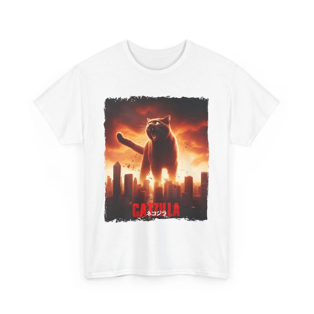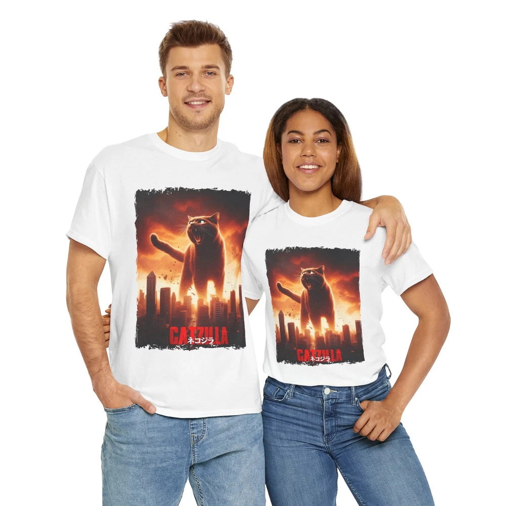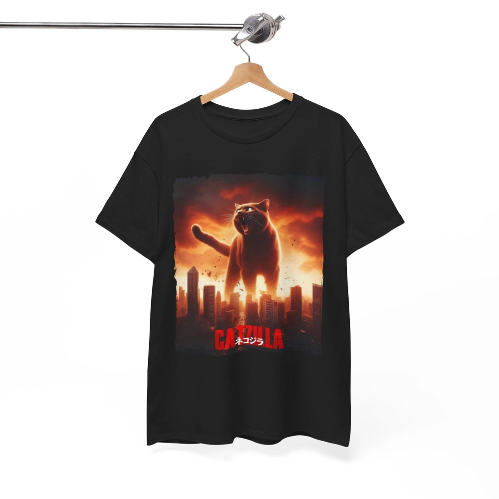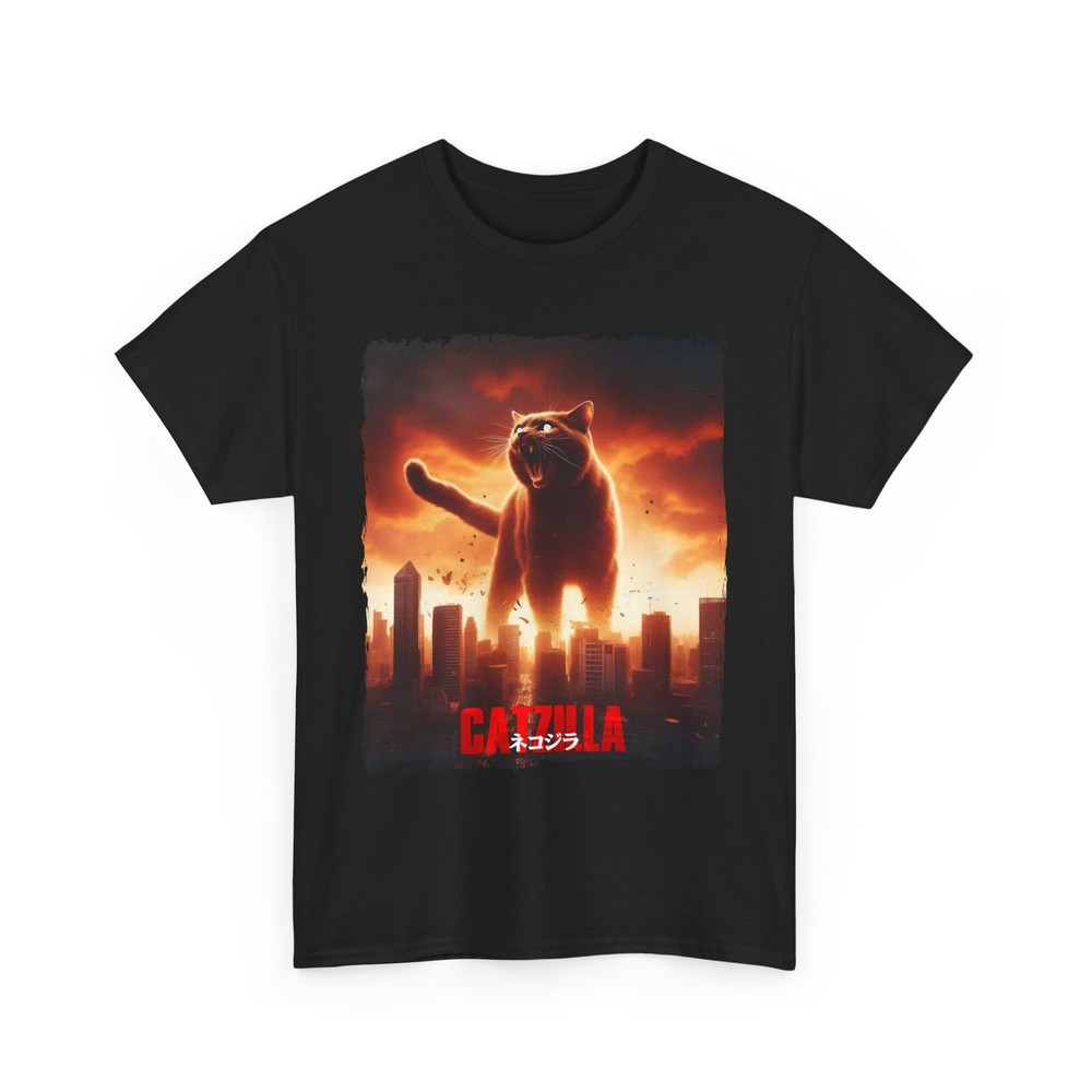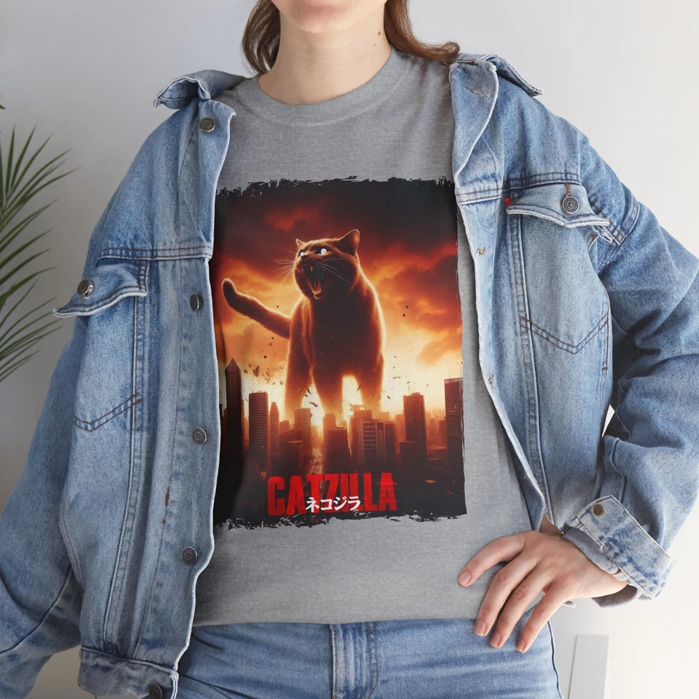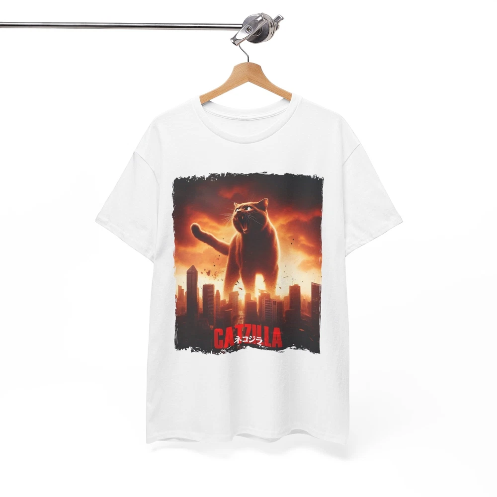 IMPERIAL S M L XL 2XL 3XL 4XL 5XL Width, in 18.00 20.00 22.00 24.00 26.00 28.00 30.00 32.00 Length, in 28.00 29.00 30.00 31.00 32.00 33.00 34.00 35.00 Sleeve length (from center back), in 15.10 16.50 18.00 19.50 21.00 22.40 23.70 25.00 Size tolerance, in 1.50 1.50 1.50 1.50 1.50 1.50 1.50 1.50 ------------------------------------------------------------------------------------------------------------------------------------------------------------------------------ METRIC S M L XL 2XL 3XL 4XL 5XL Width, cm 45.72 50.80 55.88 60.96 66.04 71.12 76.20 81.28 Length, cm 71.12 73.66 76.20 78.74 81.28 83.82 86.36 88.90 Sleeve length (from center back), cm 38.35 41.91 45.72 49.53 53.34 56.90 60.20 63.50 Size tolerance, cm 3.81 3.81 3.81 3.81 3.81 3.81 3.81 3.81 ----------------------------------------------------------------------------------------------------------------------------------------------------------------------------- Unleash feline chaos in style with our Catzilla T-Shirt , the ultimate tee for cat lovers who adore epic, funny, and monster-sized designs. Whether you're a fan of urban legends, Japanese kaiju culture, or just love a sassy cat with a giant attitude, this shirt is made for you. Crafted from 100% ethically grown U.S. cotton, this tee offers a durable yet soft medium-weight fabric (5.3 oz/yd² / 180 g/m²) that feels great on the skin and lasts wear after wear. Its classic fit ensures all-day comfort, while the crew neckline delivers a clean, timeless look perfect for both casual hangouts and relaxed weekends. Designed for cat lovers , kaiju fans , and anyone who enjoys bold, funny, and creative graphic tees, this shirt is more than just a novelty ? it's a wardrobe essential. The tear-away label guarantees a scratch-free experience with no irritation, and its Oeko-Tex certification means it's been tested for harmful substances, ensuring safety and peace of mind. Whether you're buying it for yourself or as a gift for a fellow cat fan, our Catzilla tee brings comfort, laughs, and style together in one perfect package. The unisex heavy cotton tee is the basic staple of any wardrobe. It is the foundation upon which casual fashion grows. All it needs is a personalized design to elevate things to profitability. The specially spun fibers provide a smooth surface for premium printing vividity and sharpness. No side seams mean there are no itchy interruptions under the arms. The shoulders have tape for improved durability. .: Made with medium fabric (5.3 oz/yd² (180 g/m²)) consisting of 100% cotton for year-round comfort that is sustainable and highly durable. .: The classic fit of this shirt ensures a comfy, relaxed wear while the crew neckline adds that neat, timeless look that can blend into any occasion, casual or semi-formal. .: The tear-away label means a scratch-free experience with no irritation or discomfort whatsoever. .: Made using 100% US cotton that is ethically grown and harvested. Gildan is also a proud member of the US Cotton Trust Protocol ensuring ethical and sustainable means of production. This blank tee is certified by Oeko-Tex for safety and quality assurance. The classic fit ensures a comfy, relaxed wear, while the crew neckline adds a neat, timeless look suitable for any occasion, casual or semi-formal. The tear-away label provide a scratch-free experience, ensuring no irritation or discomfort. Key Features: - **Shoulder Tape**: Twill tape covers the shoulder seams to stabilize the back of the garment and prevent stretching. - **No Side Seams**: Knitted in one piece using tubular knit, reducing fabric waste and making the garment more attractive. - **Ribbed Knit Collar**: Highly elastic ribbed knit collar helps retain its shape. - **Durable Fabric**: Specially spun fibers create a smooth surface for premium printing vividity and sharpness. Care Instructions: - Machine wash: warm (max 40C or 105F) - Non-chlorine bleach as needed - Tumble dry: medium - Do not iron - Do not dry clean This unisex heavy cotton tee is the foundation of casual fashion, providing a smooth surface for vibrant and sharp prints. Made from ethically grown and harvested cotton. EU representative : Invicticonte LLC, 2105 Vista Oeste St NW Suite E 1187, Albuquerque, NM, 87120, US Product information : Gildan 5000, 2 year warranty in EU and Northern Ireland as per Directive 1999/44/EC Warnings, Hazard : For adults, Made in Nicaragua Care instructions : Machine wash: warm (max 40C or 105F), Non-chlorine: bleach as needed, Tumble dry: medium, Do not iron, Do not dryclean Keywords: catzilla t-shirt, funny cat shirt, kaiju cat tee, cat graphic t-shirt, monster cat shirt, cat lovers gift, Japanese inspired shirt, cotton t-shirt USA, giant cat tee, urban cat design