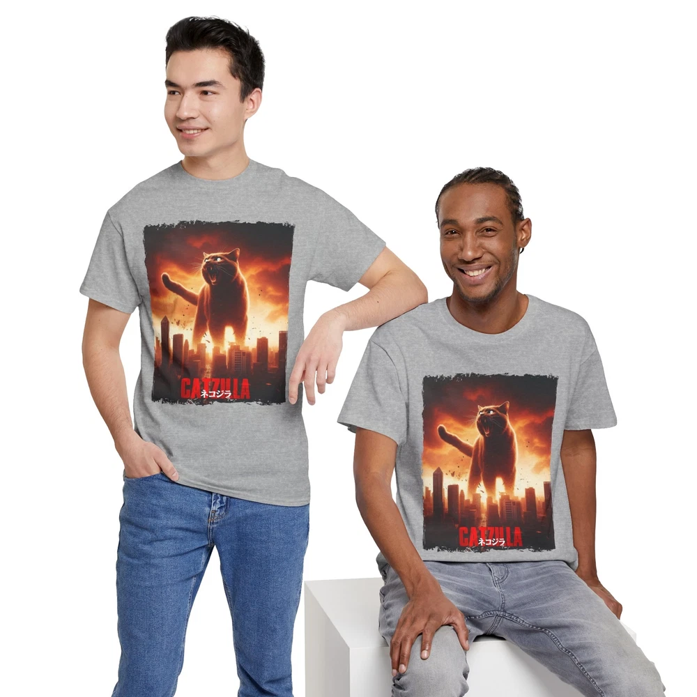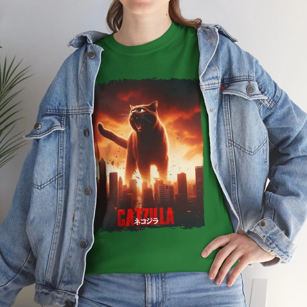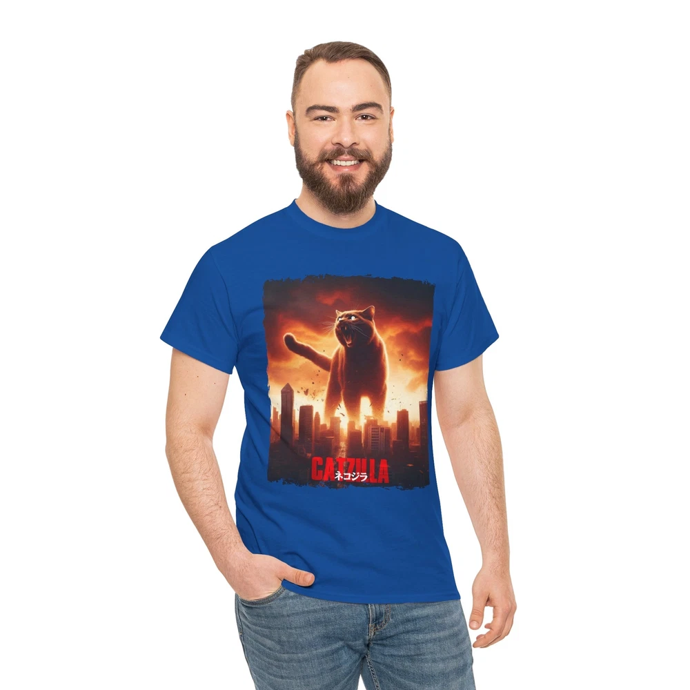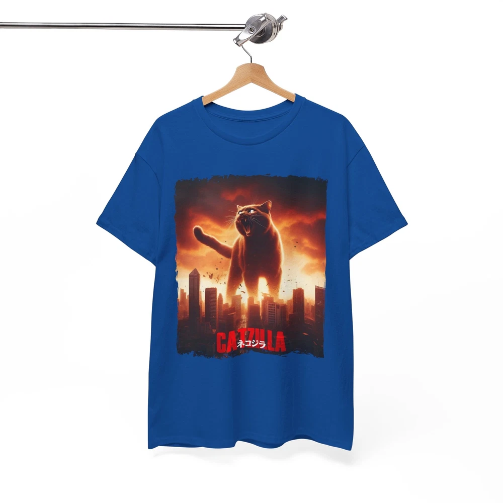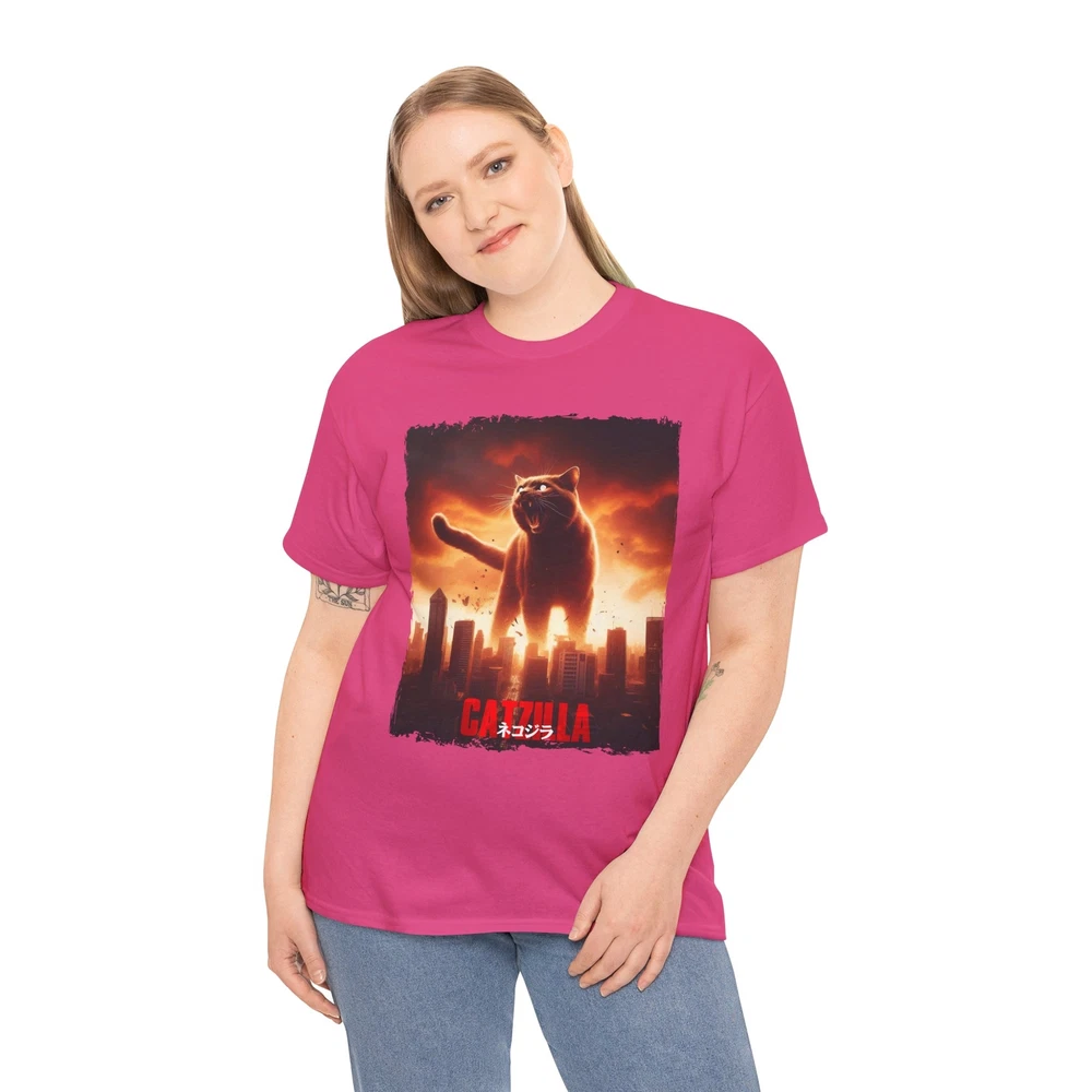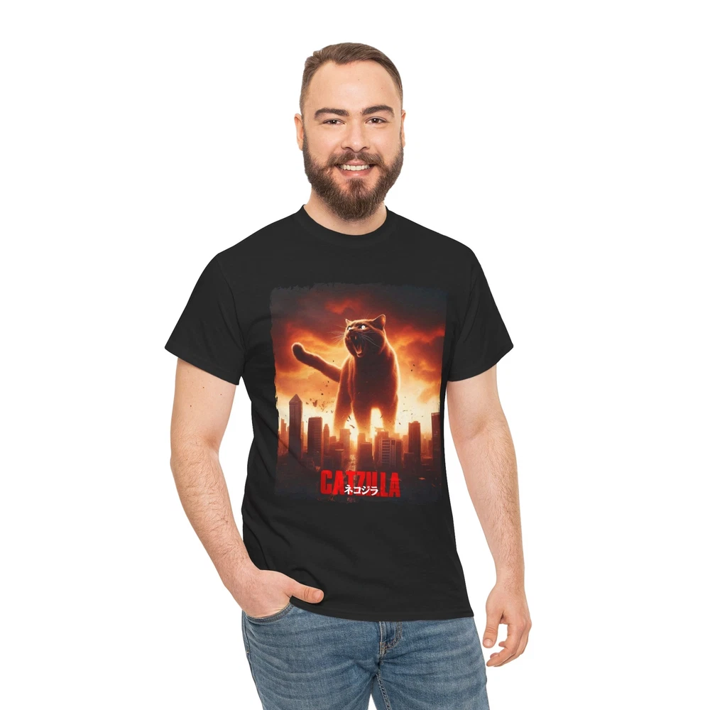 IMPERIAL S M L XL 2XL 3XL 4XL 5XL Width, in 18.00 20.00 22.00 24.00 26.00 28.00 30.00 32.00 Length, in 28.00 29.00 30.00 31.00 32.00 33.00 34.00 35.00 Sleeve length (from center back), in 15.10 16.50 18.00 19.50 21.00 22.40 23.70 25.00 Size tolerance, in 1.50 1.50 1.50 1.50 1.50 1.50 1.50 1.50 ------------------------------------------------------------------------------------------------------------------------------------------------------------------------------ METRIC S M L XL 2XL 3XL 4XL 5XL Width, cm 45.72 50.80 55.88 60.96 66.04 71.12 76.20 81.28 Length, cm 71.12 73.66 76.20 78.74 81.28 83.82 86.36 88.90 Sleeve length (from center back), cm 38.35 41.91 45.72 49.53 53.34 56.90 60.20 63.50 Size tolerance, cm 3.81 3.81 3.81 3.81 3.81 3.81 3.81 3.81 ----------------------------------------------------------------------------------------------------------------------------------------------------------------------------- Unleash feline chaos in style with our Catzilla T-Shirt , the ultimate tee for cat lovers who adore epic, funny, and monster-sized designs. Whether you're a fan of urban legends, Japanese kaiju culture, or just love a sassy cat with a giant attitude, this shirt is made for you. Crafted from 100% ethically grown U.S. cotton, this tee offers a durable yet soft medium-weight fabric (5.3 oz/yd² / 180 g/m²) that feels great on the skin and lasts wear after wear. Its classic fit ensures all-day comfort, while the crew neckline delivers a clean, timeless look perfect for both casual hangouts and relaxed weekends. Designed for cat lovers , kaiju fans , and anyone who enjoys bold, funny, and creative graphic tees, this shirt is more than just a novelty ? it's a wardrobe essential. The tear-away label guarantees a scratch-free experience with no irritation, and its Oeko-Tex certification means it's been tested for harmful substances, ensuring safety and peace of mind. Whether you're buying it for yourself or as a gift for a fellow cat fan, our Catzilla tee brings comfort, laughs, and style together in one perfect package. The unisex heavy cotton tee is the basic staple of any wardrobe. It is the foundation upon which casual fashion grows. All it needs is a personalized design to elevate things to profitability. The specially spun fibers provide a smooth surface for premium printing vividity and sharpness. No side seams mean there are no itchy interruptions under the arms. The shoulders have tape for improved durability. .: Made with medium fabric (5.3 oz/yd² (180 g/m²)) consisting of 100% cotton for year-round comfort that is sustainable and highly durable. .: The classic fit of this shirt ensures a comfy, relaxed wear while the crew neckline adds that neat, timeless look that can blend into any occasion, casual or semi-formal. .: The tear-away label means a scratch-free experience with no irritation or discomfort whatsoever. .: Made using 100% US cotton that is ethically grown and harvested. Gildan is also a proud member of the US Cotton Trust Protocol ensuring ethical and sustainable means of production. This blank tee is certified by Oeko-Tex for safety and quality assurance. The classic fit ensures a comfy, relaxed wear, while the crew neckline adds a neat, timeless look suitable for any occasion, casual or semi-formal. The tear-away label provide a scratch-free experience, ensuring no irritation or discomfort. Key Features: - **Shoulder Tape**: Twill tape covers the shoulder seams to stabilize the back of the garment and prevent stretching. - **No Side Seams**: Knitted in one piece using tubular knit, reducing fabric waste and making the garment more attractive. - **Ribbed Knit Collar**: Highly elastic ribbed knit collar helps retain its shape. - **Durable Fabric**: Specially spun fibers create a smooth surface for premium printing vividity and sharpness. Care Instructions: - Machine wash: warm (max 40C or 105F) - Non-chlorine bleach as needed - Tumble dry: medium - Do not iron - Do not dry clean This unisex heavy cotton tee is the foundation of casual fashion, providing a smooth surface for vibrant and sharp prints. Made from ethically grown and harvested cotton. EU representative : Invicticonte LLC, 2105 Vista Oeste St NW Suite E 1187, Albuquerque, NM, 87120, US Product information : Gildan 5000, 2 year warranty in EU and Northern Ireland as per Directive 1999/44/EC Warnings, Hazard : For adults, Made in Nicaragua Care instructions : Machine wash: warm (max 40C or 105F), Non-chlorine: bleach as needed, Tumble dry: medium, Do not iron, Do not dryclean Keywords: catzilla t-shirt, funny cat shirt, kaiju cat tee, cat graphic t-shirt, monster cat shirt, cat lovers gift, Japanese inspired shirt, cotton t-shirt USA, giant cat tee, urban cat design
