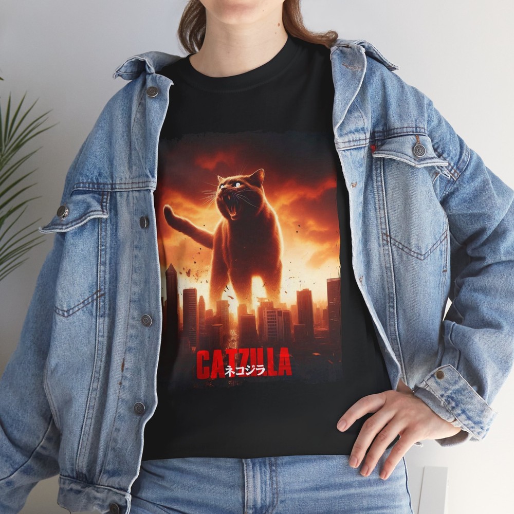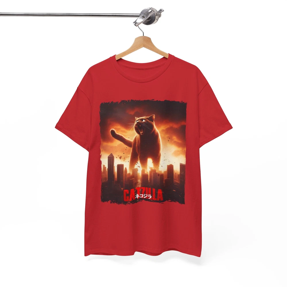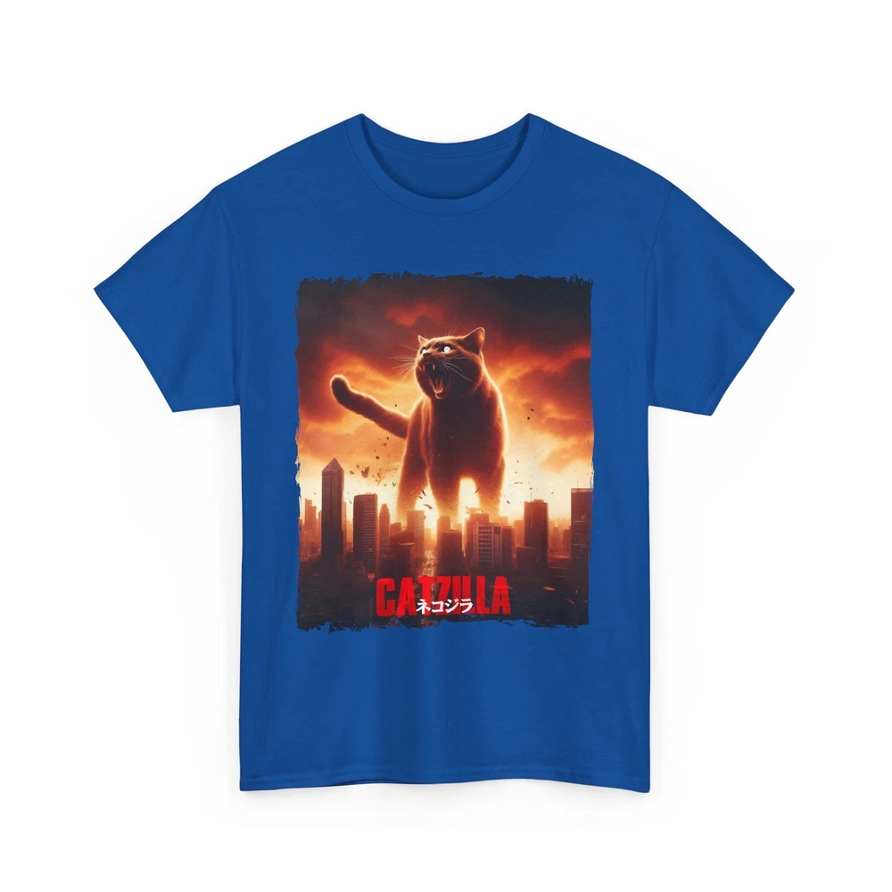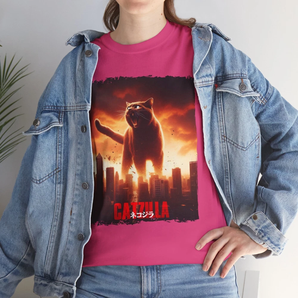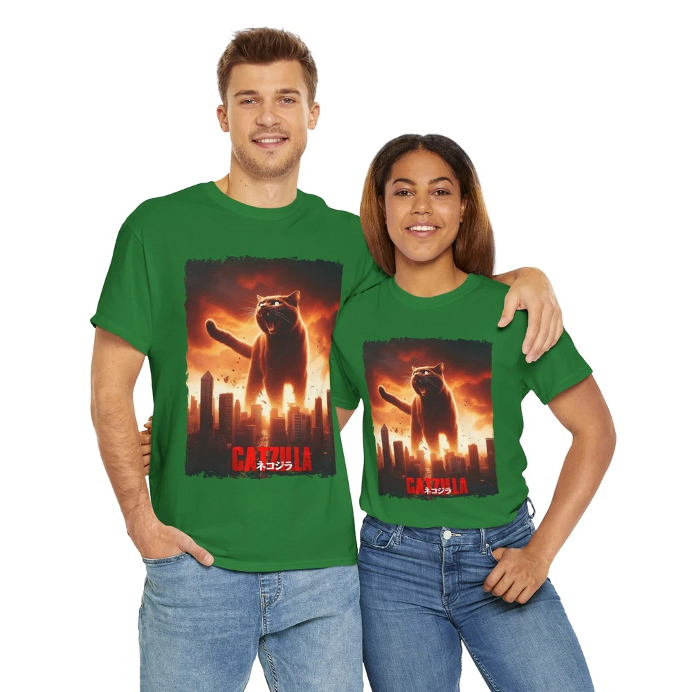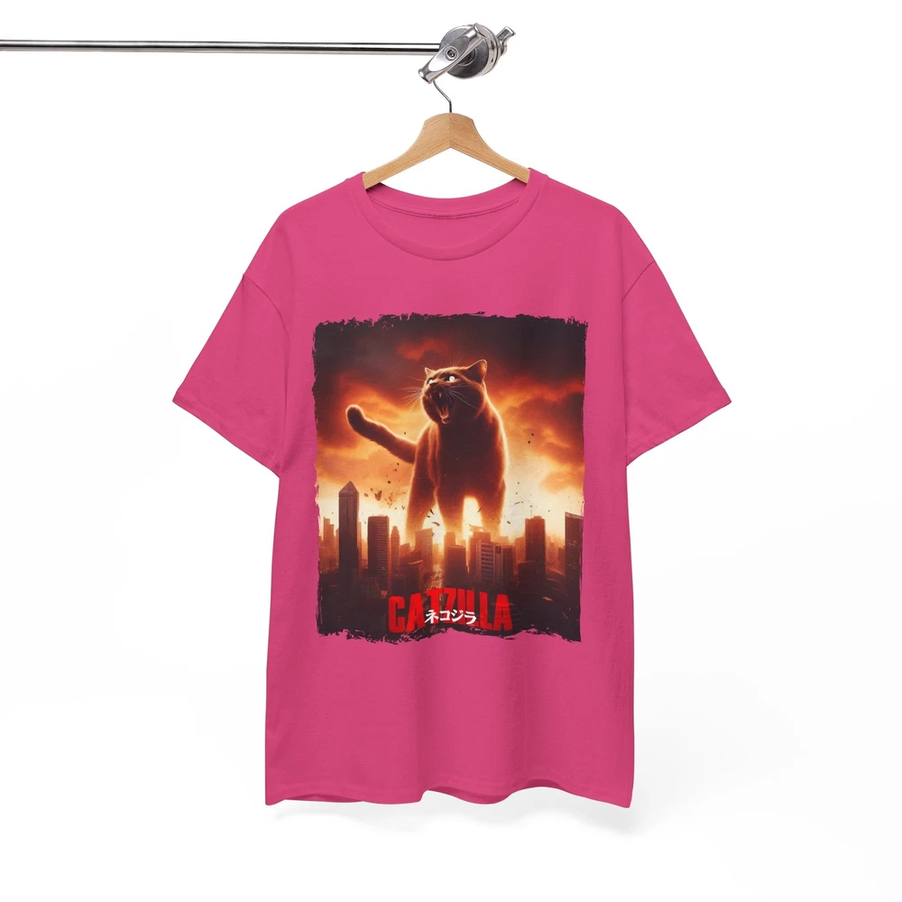 IMPERIAL S M L XL 2XL 3XL 4XL 5XL Width, in 18.00 20.00 22.00 24.00 26.00 28.00 30.00 32.00 Length, in 28.00 29.00 30.00 31.00 32.00 33.00 34.00 35.00 Sleeve length (from center back), in 15.10 16.50 18.00 19.50 21.00 22.40 23.70 25.00 Size tolerance, in 1.50 1.50 1.50 1.50 1.50 1.50 1.50 1.50 ------------------------------------------------------------------------------------------------------------------------------------------------------------------------------ METRIC S M L XL 2XL 3XL 4XL 5XL Width, cm 45.72 50.80 55.88 60.96 66.04 71.12 76.20 81.28 Length, cm 71.12 73.66 76.20 78.74 81.28 83.82 86.36 88.90 Sleeve length (from center back), cm 38.35 41.91 45.72 49.53 53.34 56.90 60.20 63.50 Size tolerance, cm 3.81 3.81 3.81 3.81 3.81 3.81 3.81 3.81 ----------------------------------------------------------------------------------------------------------------------------------------------------------------------------- Unleash feline chaos in style with our Catzilla T-Shirt , the ultimate tee for cat lovers who adore epic, funny, and monster-sized designs. Whether you're a fan of urban legends, Japanese kaiju culture, or just love a sassy cat with a giant attitude, this shirt is made for you. Crafted from 100% ethically grown U.S. cotton, this tee offers a durable yet soft medium-weight fabric (5.3 oz/yd² / 180 g/m²) that feels great on the skin and lasts wear after wear. Its classic fit ensures all-day comfort, while the crew neckline delivers a clean, timeless look perfect for both casual hangouts and relaxed weekends. Designed for cat lovers , kaiju fans , and anyone who enjoys bold, funny, and creative graphic tees, this shirt is more than just a novelty ? it's a wardrobe essential. The tear-away label guarantees a scratch-free experience with no irritation, and its Oeko-Tex certification means it's been tested for harmful substances, ensuring safety and peace of mind. Whether you're buying it for yourself or as a gift for a fellow cat fan, our Catzilla tee brings comfort, laughs, and style together in one perfect package. The unisex heavy cotton tee is the basic staple of any wardrobe. It is the foundation upon which casual fashion grows. All it needs is a personalized design to elevate things to profitability. The specially spun fibers provide a smooth surface for premium printing vividity and sharpness. No side seams mean there are no itchy interruptions under the arms. The shoulders have tape for improved durability. .: Made with medium fabric (5.3 oz/yd² (180 g/m²)) consisting of 100% cotton for year-round comfort that is sustainable and highly durable. .: The classic fit of this shirt ensures a comfy, relaxed wear while the crew neckline adds that neat, timeless look that can blend into any occasion, casual or semi-formal. .: The tear-away label means a scratch-free experience with no irritation or discomfort whatsoever. .: Made using 100% US cotton that is ethically grown and harvested. Gildan is also a proud member of the US Cotton Trust Protocol ensuring ethical and sustainable means of production. This blank tee is certified by Oeko-Tex for safety and quality assurance. The classic fit ensures a comfy, relaxed wear, while the crew neckline adds a neat, timeless look suitable for any occasion, casual or semi-formal. The tear-away label provide a scratch-free experience, ensuring no irritation or discomfort. Key Features: - **Shoulder Tape**: Twill tape covers the shoulder seams to stabilize the back of the garment and prevent stretching. - **No Side Seams**: Knitted in one piece using tubular knit, reducing fabric waste and making the garment more attractive. - **Ribbed Knit Collar**: Highly elastic ribbed knit collar helps retain its shape. - **Durable Fabric**: Specially spun fibers create a smooth surface for premium printing vividity and sharpness. Care Instructions: - Machine wash: warm (max 40C or 105F) - Non-chlorine bleach as needed - Tumble dry: medium - Do not iron - Do not dry clean This unisex heavy cotton tee is the foundation of casual fashion, providing a smooth surface for vibrant and sharp prints. Made from ethically grown and harvested cotton. EU representative : Invicticonte LLC, 2105 Vista Oeste St NW Suite E 1187, Albuquerque, NM, 87120, US Product information : Gildan 5000, 2 year warranty in EU and Northern Ireland as per Directive 1999/44/EC Warnings, Hazard : For adults, Made in Nicaragua Care instructions : Machine wash: warm (max 40C or 105F), Non-chlorine: bleach as needed, Tumble dry: medium, Do not iron, Do not dryclean Keywords: catzilla t-shirt, funny cat shirt, kaiju cat tee, cat graphic t-shirt, monster cat shirt, cat lovers gift, Japanese inspired shirt, cotton t-shirt USA, giant cat tee, urban cat design