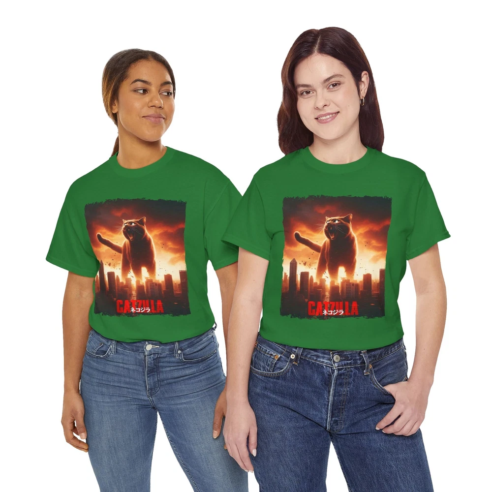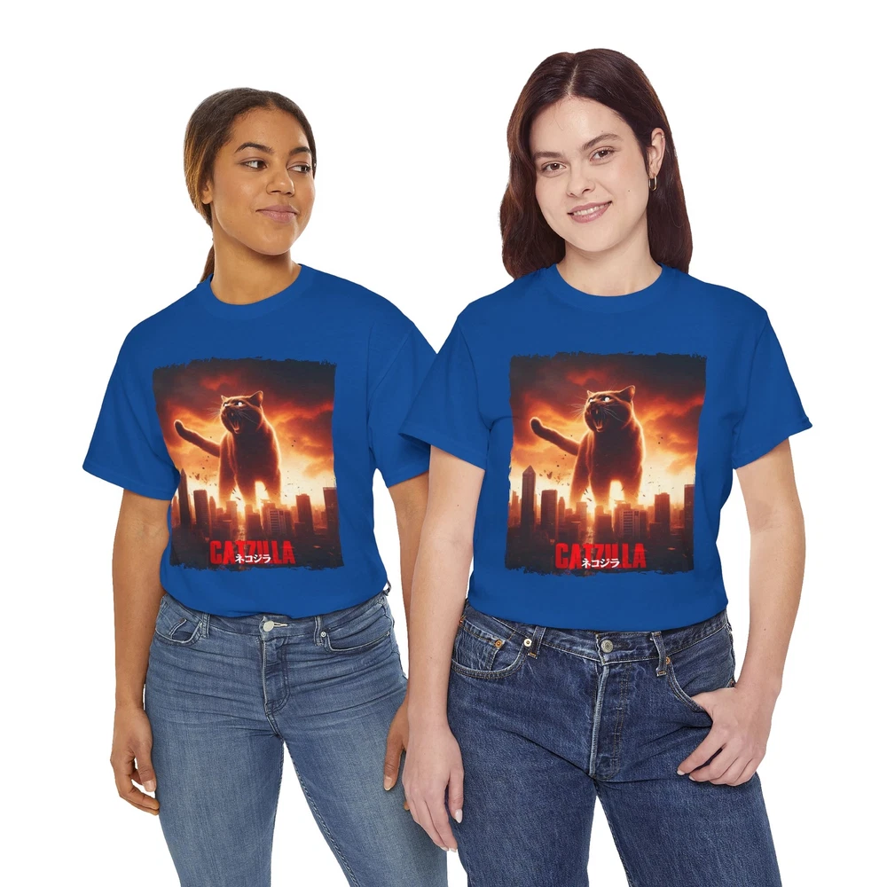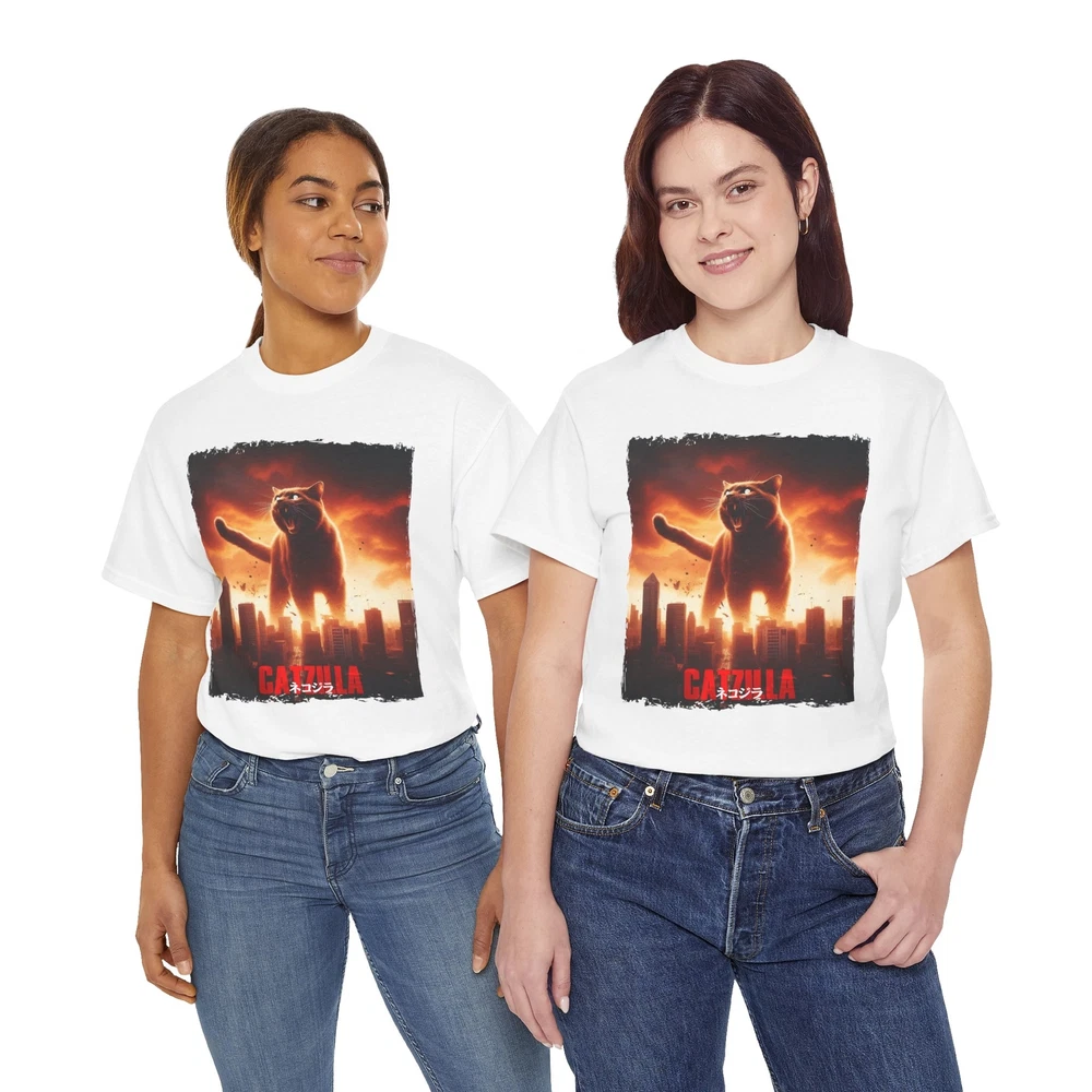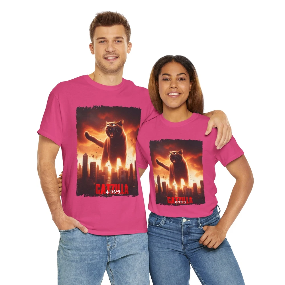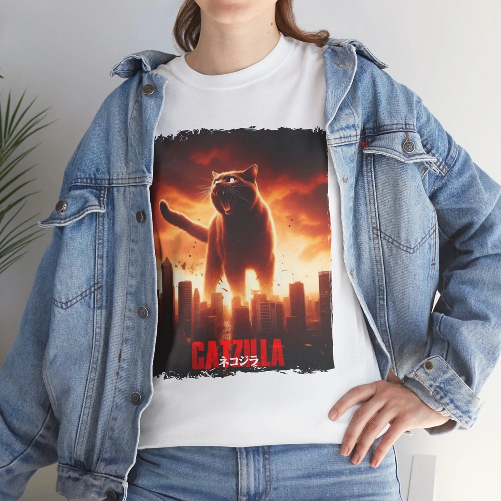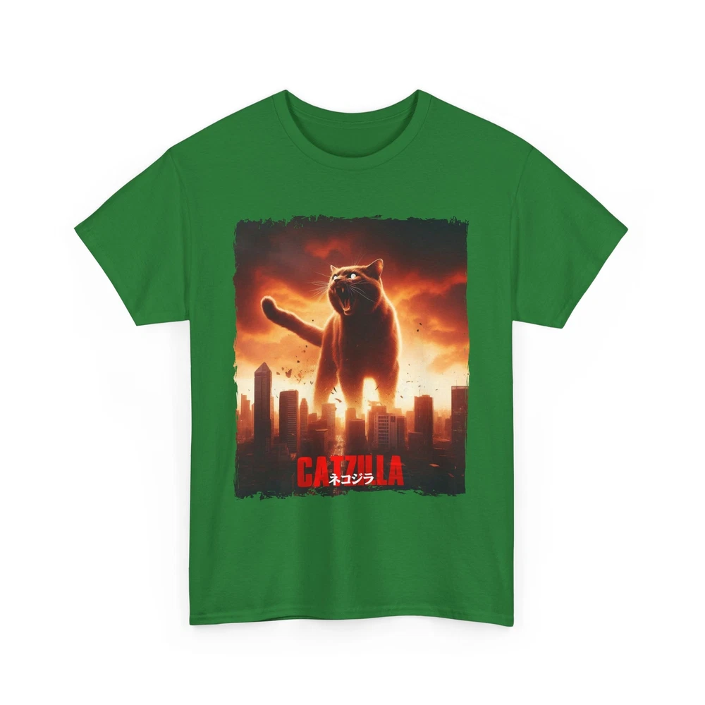IMPERIAL S M L XL 2XL 3XL 4XL 5XL Width, in 18.00 20.00 22.00 24.00 26.00 28.00 30.00 32.00 Length, in 28.00 29.00 30.00 31.00 32.00 33.00 34.00 35.00 Sleeve length (from center back), in 15.10 16.50 18.00 19.50 21.00 22.40 23.70 25.00 Size tolerance, in 1.50 1.50 1.50 1.50 1.50 1.50 1.50 1.50 ------------------------------------------------------------------------------------------------------------------------------------------------------------------------------ METRIC S M L XL 2XL 3XL 4XL 5XL Width, cm 45.72 50.80 55.88 60.96 66.04 71.12 76.20 81.28 Length, cm 71.12 73.66 76.20 78.74 81.28 83.82 86.36 88.90 Sleeve length (from center back), cm 38.35 41.91 45.72 49.53 53.34 56.90 60.20 63.50 Size tolerance, cm 3.81 3.81 3.81 3.81 3.81 3.81 3.81 3.81 ----------------------------------------------------------------------------------------------------------------------------------------------------------------------------- Unleash feline chaos in style with our Catzilla T-Shirt , the ultimate tee for cat lovers who adore epic, funny, and monster-sized designs. Whether you're a fan of urban legends, Japanese kaiju culture, or just love a sassy cat with a giant attitude, this shirt is made for you. Crafted from 100% ethically grown U.S. cotton, this tee offers a durable yet soft medium-weight fabric (5.3 oz/yd² / 180 g/m²) that feels great on the skin and lasts wear after wear. Its classic fit ensures all-day comfort, while the crew neckline delivers a clean, timeless look perfect for both casual hangouts and relaxed weekends. Designed for cat lovers , kaiju fans , and anyone who enjoys bold, funny, and creative graphic tees, this shirt is more than just a novelty ? it's a wardrobe essential. The tear-away label guarantees a scratch-free experience with no irritation, and its Oeko-Tex certification means it's been tested for harmful substances, ensuring safety and peace of mind. Whether you're buying it for yourself or as a gift for a fellow cat fan, our Catzilla tee brings comfort, laughs, and style together in one perfect package. The unisex heavy cotton tee is the basic staple of any wardrobe. It is the foundation upon which casual fashion grows. All it needs is a personalized design to elevate things to profitability. The specially spun fibers provide a smooth surface for premium printing vividity and sharpness. No side seams mean there are no itchy interruptions under the arms. The shoulders have tape for improved durability. .: Made with medium fabric (5.3 oz/yd² (180 g/m²)) consisting of 100% cotton for year-round comfort that is sustainable and highly durable. .: The classic fit of this shirt ensures a comfy, relaxed wear while the crew neckline adds that neat, timeless look that can blend into any occasion, casual or semi-formal. .: The tear-away label means a scratch-free experience with no irritation or discomfort whatsoever. .: Made using 100% US cotton that is ethically grown and harvested. Gildan is also a proud member of the US Cotton Trust Protocol ensuring ethical and sustainable means of production. This blank tee is certified by Oeko-Tex for safety and quality assurance. The classic fit ensures a comfy, relaxed wear, while the crew neckline adds a neat, timeless look suitable for any occasion, casual or semi-formal. The tear-away label provide a scratch-free experience, ensuring no irritation or discomfort. Key Features: - **Shoulder Tape**: Twill tape covers the shoulder seams to stabilize the back of the garment and prevent stretching. - **No Side Seams**: Knitted in one piece using tubular knit, reducing fabric waste and making the garment more attractive. - **Ribbed Knit Collar**: Highly elastic ribbed knit collar helps retain its shape. - **Durable Fabric**: Specially spun fibers create a smooth surface for premium printing vividity and sharpness. Care Instructions: - Machine wash: warm (max 40C or 105F) - Non-chlorine bleach as needed - Tumble dry: medium - Do not iron - Do not dry clean This unisex heavy cotton tee is the foundation of casual fashion, providing a smooth surface for vibrant and sharp prints. Made from ethically grown and harvested cotton. EU representative : Invicticonte LLC, 2105 Vista Oeste St NW Suite E 1187, Albuquerque, NM, 87120, US Product information : Gildan 5000, 2 year warranty in EU and Northern Ireland as per Directive 1999/44/EC Warnings, Hazard : For adults, Made in Nicaragua Care instructions : Machine wash: warm (max 40C or 105F), Non-chlorine: bleach as needed, Tumble dry: medium, Do not iron, Do not dryclean Keywords: catzilla t-shirt, funny cat shirt, kaiju cat tee, cat graphic t-shirt, monster cat shirt, cat lovers gift, Japanese inspired shirt, cotton t-shirt USA, giant cat tee, urban cat design