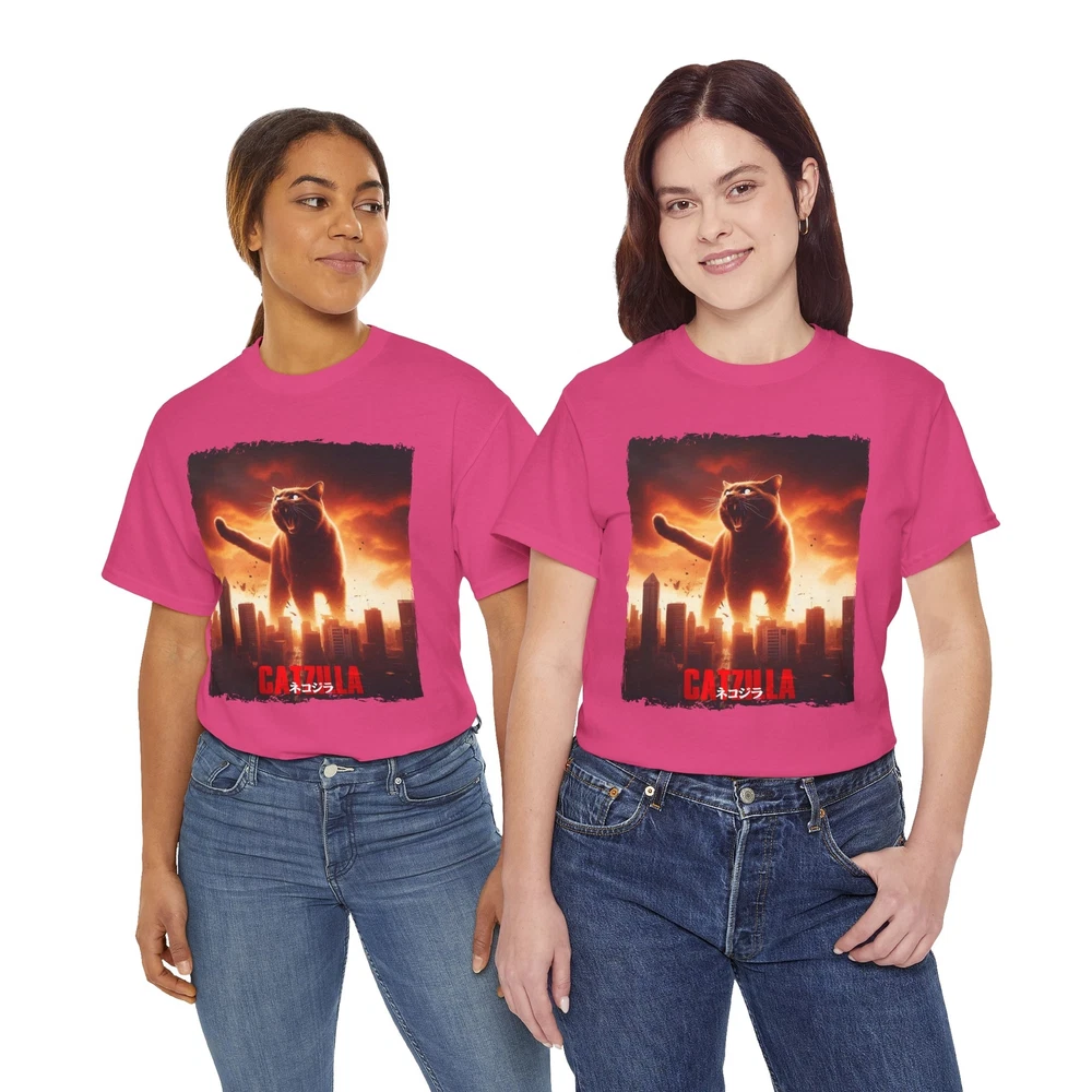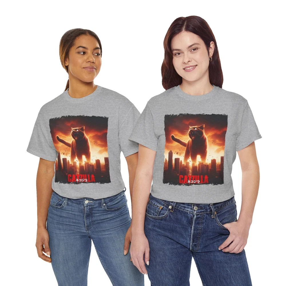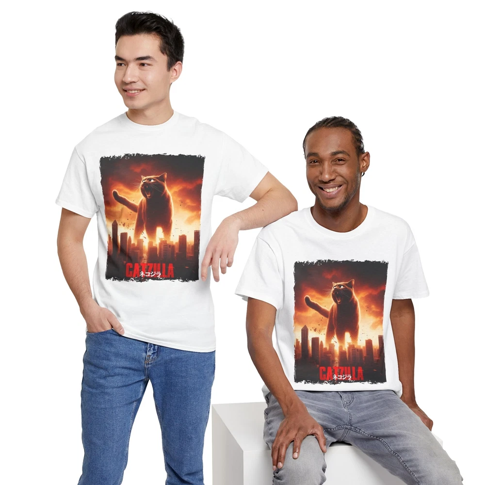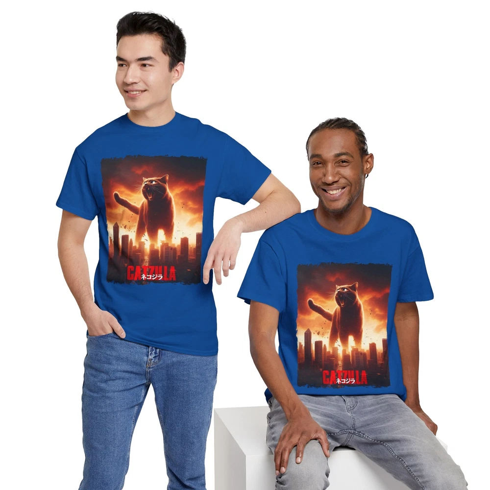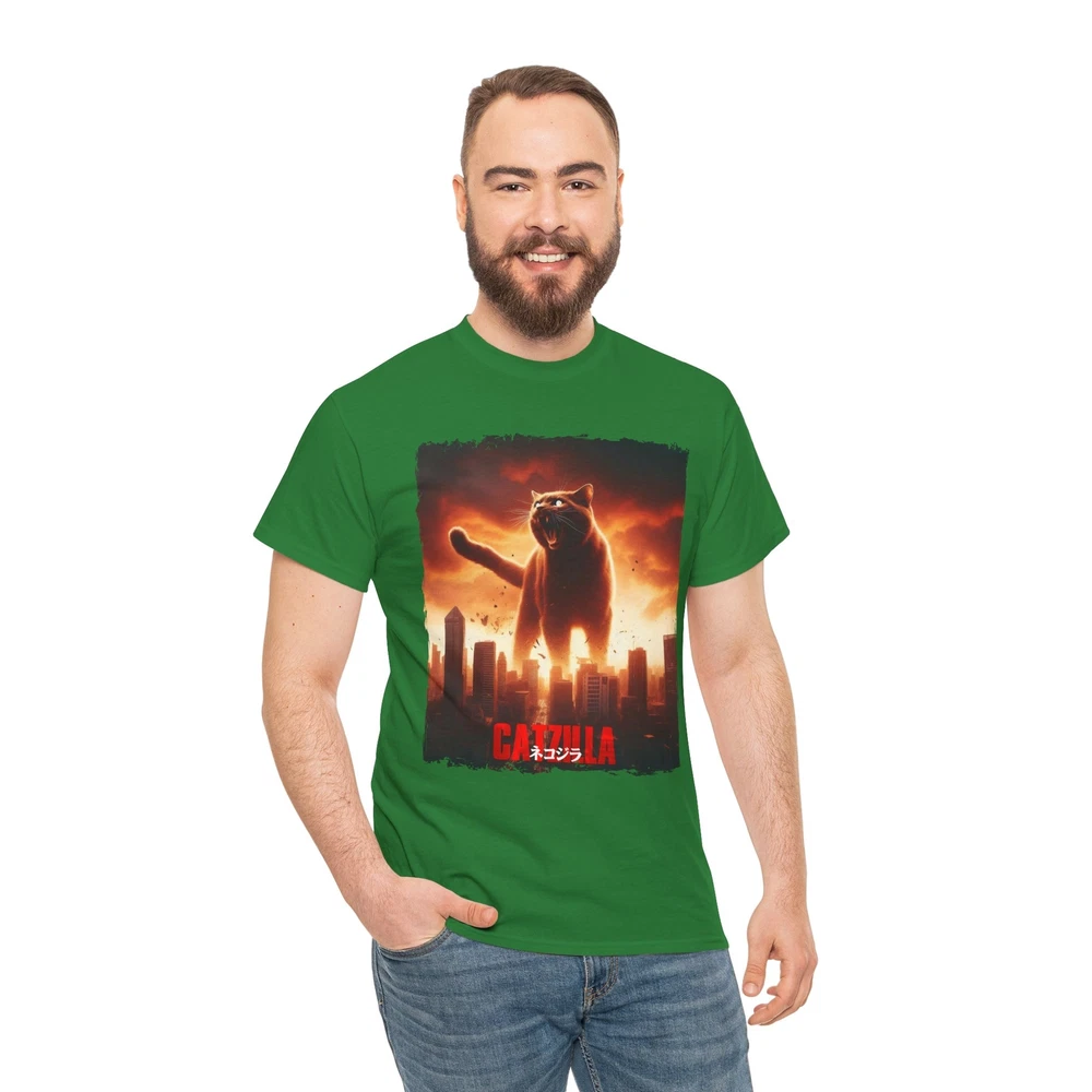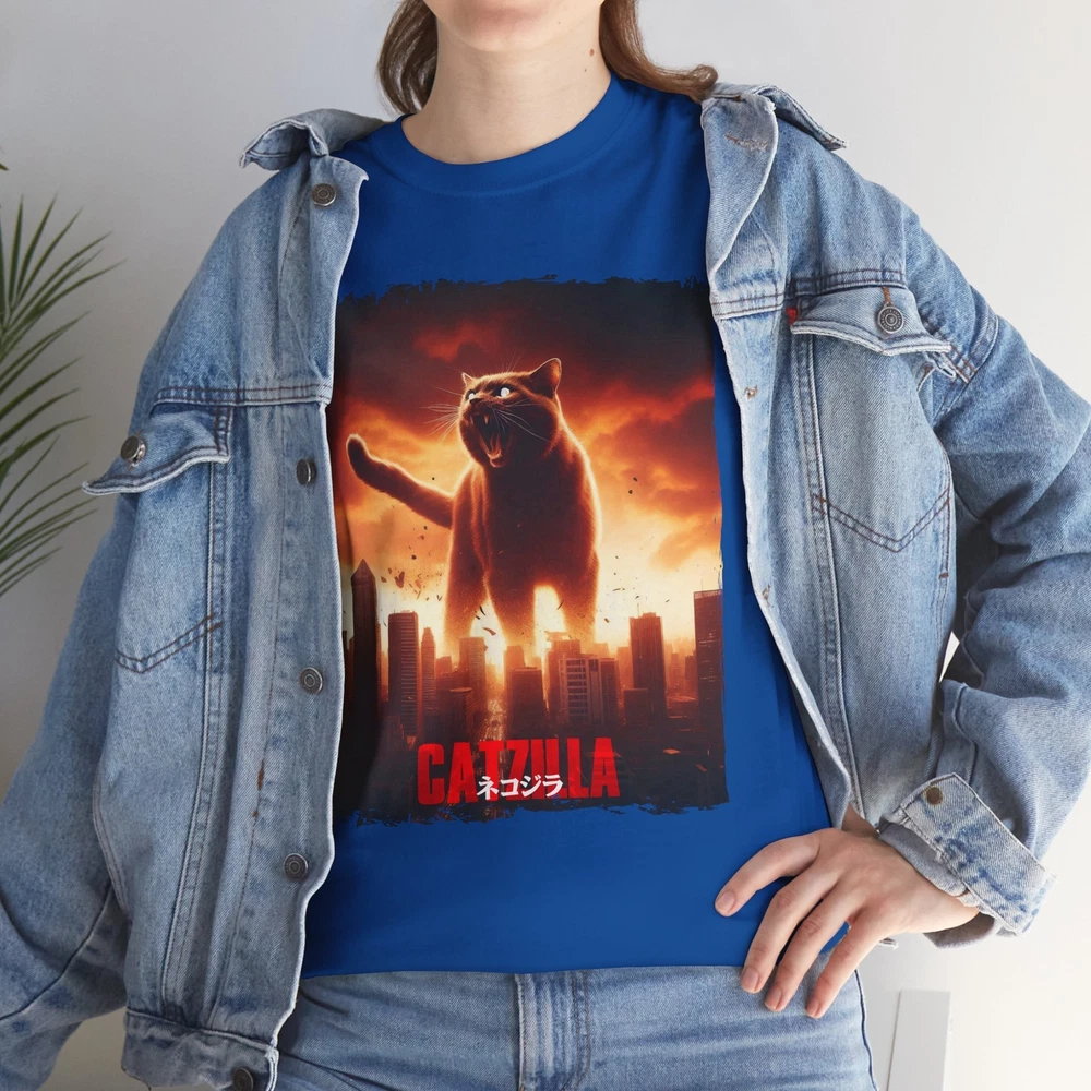 IMPERIAL S M L XL 2XL 3XL 4XL 5XL Width, in 18.00 20.00 22.00 24.00 26.00 28.00 30.00 32.00 Length, in 28.00 29.00 30.00 31.00 32.00 33.00 34.00 35.00 Sleeve length (from center back), in 15.10 16.50 18.00 19.50 21.00 22.40 23.70 25.00 Size tolerance, in 1.50 1.50 1.50 1.50 1.50 1.50 1.50 1.50 ------------------------------------------------------------------------------------------------------------------------------------------------------------------------------ METRIC S M L XL 2XL 3XL 4XL 5XL Width, cm 45.72 50.80 55.88 60.96 66.04 71.12 76.20 81.28 Length, cm 71.12 73.66 76.20 78.74 81.28 83.82 86.36 88.90 Sleeve length (from center back), cm 38.35 41.91 45.72 49.53 53.34 56.90 60.20 63.50 Size tolerance, cm 3.81 3.81 3.81 3.81 3.81 3.81 3.81 3.81 ----------------------------------------------------------------------------------------------------------------------------------------------------------------------------- Unleash feline chaos in style with our Catzilla T-Shirt , the ultimate tee for cat lovers who adore epic, funny, and monster-sized designs. Whether you're a fan of urban legends, Japanese kaiju culture, or just love a sassy cat with a giant attitude, this shirt is made for you. Crafted from 100% ethically grown U.S. cotton, this tee offers a durable yet soft medium-weight fabric (5.3 oz/yd² / 180 g/m²) that feels great on the skin and lasts wear after wear. Its classic fit ensures all-day comfort, while the crew neckline delivers a clean, timeless look perfect for both casual hangouts and relaxed weekends. Designed for cat lovers , kaiju fans , and anyone who enjoys bold, funny, and creative graphic tees, this shirt is more than just a novelty ? it's a wardrobe essential. The tear-away label guarantees a scratch-free experience with no irritation, and its Oeko-Tex certification means it's been tested for harmful substances, ensuring safety and peace of mind. Whether you're buying it for yourself or as a gift for a fellow cat fan, our Catzilla tee brings comfort, laughs, and style together in one perfect package. The unisex heavy cotton tee is the basic staple of any wardrobe. It is the foundation upon which casual fashion grows. All it needs is a personalized design to elevate things to profitability. The specially spun fibers provide a smooth surface for premium printing vividity and sharpness. No side seams mean there are no itchy interruptions under the arms. The shoulders have tape for improved durability. .: Made with medium fabric (5.3 oz/yd² (180 g/m²)) consisting of 100% cotton for year-round comfort that is sustainable and highly durable. .: The classic fit of this shirt ensures a comfy, relaxed wear while the crew neckline adds that neat, timeless look that can blend into any occasion, casual or semi-formal. .: The tear-away label means a scratch-free experience with no irritation or discomfort whatsoever. .: Made using 100% US cotton that is ethically grown and harvested. Gildan is also a proud member of the US Cotton Trust Protocol ensuring ethical and sustainable means of production. This blank tee is certified by Oeko-Tex for safety and quality assurance. The classic fit ensures a comfy, relaxed wear, while the crew neckline adds a neat, timeless look suitable for any occasion, casual or semi-formal. The tear-away label provide a scratch-free experience, ensuring no irritation or discomfort. Key Features: - **Shoulder Tape**: Twill tape covers the shoulder seams to stabilize the back of the garment and prevent stretching. - **No Side Seams**: Knitted in one piece using tubular knit, reducing fabric waste and making the garment more attractive. - **Ribbed Knit Collar**: Highly elastic ribbed knit collar helps retain its shape. - **Durable Fabric**: Specially spun fibers create a smooth surface for premium printing vividity and sharpness. Care Instructions: - Machine wash: warm (max 40C or 105F) - Non-chlorine bleach as needed - Tumble dry: medium - Do not iron - Do not dry clean This unisex heavy cotton tee is the foundation of casual fashion, providing a smooth surface for vibrant and sharp prints. Made from ethically grown and harvested cotton. EU representative : Invicticonte LLC, 2105 Vista Oeste St NW Suite E 1187, Albuquerque, NM, 87120, US Product information : Gildan 5000, 2 year warranty in EU and Northern Ireland as per Directive 1999/44/EC Warnings, Hazard : For adults, Made in Nicaragua Care instructions : Machine wash: warm (max 40C or 105F), Non-chlorine: bleach as needed, Tumble dry: medium, Do not iron, Do not dryclean Keywords: catzilla t-shirt, funny cat shirt, kaiju cat tee, cat graphic t-shirt, monster cat shirt, cat lovers gift, Japanese inspired shirt, cotton t-shirt USA, giant cat tee, urban cat design