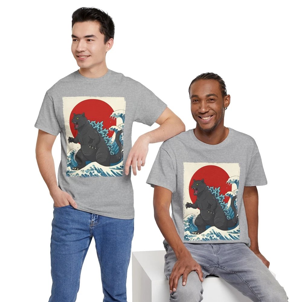 IMPERIAL S M L XL 2XL 3XL 4XL 5XL Width, in 18.00 20.00 22.00 24.00 26.00 28.00 30.00 32.00 Length, in 28.00 29.00 30.00 31.00 32.00 33.00 34.00 35.00 Sleeve length (from center back), in 15.10 16.50 18.00 19.50 21.00 22.40 23.70 25.00 Size tolerance, in 1.50 1.50 1.50 1.50 1.50 1.50 1.50 1.50 ------------------------------------------------------------------------------------------------------------------------------------------------------------------------------ METRIC S M L XL 2XL 3XL 4XL 5XL Width, cm 45.72 50.80 55.88 60.96 66.04 71.12 76.20 81.28 Length, cm 71.12 73.66 76.20 78.74 81.28 83.82 86.36 88.90 Sleeve length (from center back), cm 38.35 41.91 45.72 49.53 53.34 56.90 60.20 63.50 Size tolerance, cm 3.81 3.81 3.81 3.81 3.81 3.81 3.81 3.81 ----------------------------------------------------------------------------------------------------------------------------------------------------------------------------- Unleash feline chaos in style with our Catzilla T-Shirt , the ultimate tee for cat lovers who adore epic, funny, and monster-sized designs. Whether you're a fan of urban legends, Japanese kaiju culture, or just love a sassy cat with a giant attitude, this shirt is made for you. Crafted from 100% ethically grown U.S. cotton, this tee offers a durable yet soft medium-weight fabric (5.3 oz/yd² / 180 g/m²) that feels great on the skin and lasts wear after wear. Its classic fit ensures all-day comfort, while the crew neckline delivers a clean, timeless look perfect for both casual hangouts and relaxed weekends. Designed for cat lovers , kaiju fans , and anyone who enjoys bold, funny, and creative graphic tees, this shirt is more than just a novelty ? it's a wardrobe essential. The tear-away label guarantees a scratch-free experience with no irritation, and its Oeko-Tex certification means it's been tested for harmful substances, ensuring safety and peace of mind. Whether you're buying it for yourself or as a gift for a fellow cat fan, our Catzilla tee brings comfort, laughs, and style together in one perfect package. The unisex heavy cotton tee is the basic staple of any wardrobe. It is the foundation upon which casual fashion grows. All it needs is a personalized design to elevate things to profitability. The specially spun fibers provide a smooth surface for premium printing vividity and sharpness. No side seams mean there are no itchy interruptions under the arms. The shoulders have tape for improved durability. .: Made with medium fabric (5.3 oz/yd² (180 g/m²)) consisting of 100% cotton for year-round comfort that is sustainable and highly durable. .: The classic fit of this shirt ensures a comfy, relaxed wear while the crew neckline adds that neat, timeless look that can blend into any occasion, casual or semi-formal. .: The tear-away label means a scratch-free experience with no irritation or discomfort whatsoever. .: Made using 100% US cotton that is ethically grown and harvested. Gildan is also a proud member of the US Cotton Trust Protocol ensuring ethical and sustainable means of production. This blank tee is certified by Oeko-Tex for safety and quality assurance. The classic fit ensures a comfy, relaxed wear, while the crew neckline adds a neat, timeless look suitable for any occasion, casual or semi-formal. The tear-away label provide a scratch-free experience, ensuring no irritation or discomfort. Key Features: - **Shoulder Tape**: Twill tape covers the shoulder seams to stabilize the back of the garment and prevent stretching. - **No Side Seams**: Knitted in one piece using tubular knit, reducing fabric waste and making the garment more attractive. - **Ribbed Knit Collar**: Highly elastic ribbed knit collar helps retain its shape. - **Durable Fabric**: Specially spun fibers create a smooth surface for premium printing vividity and sharpness. Care Instructions: - Machine wash: warm (max 40C or 105F) - Non-chlorine bleach as needed - Tumble dry: medium - Do not iron - Do not dry clean This unisex heavy cotton tee is the foundation of casual fashion, providing a smooth surface for vibrant and sharp prints. Made from ethically grown and harvested cotton. EU representative : Invicticonte LLC, 2105 Vista Oeste St NW Suite E 1187, Albuquerque, NM, 87120, US Product information : Gildan 5000, 2 year warranty in EU and Northern Ireland as per Directive 1999/44/EC Warnings, Hazard : For adults, Made in Nicaragua Care instructions : Machine wash: warm (max 40C or 105F), Non-chlorine: bleach as needed, Tumble dry: medium, Do not iron, Do not dryclean Keywords: catzilla t-shirt, funny cat shirt, kaiju cat tee, cat graphic t-shirt, monster cat shirt, cat lovers gift, Japanese inspired shirt, cotton t-shirt USA, giant cat tee, urban cat design