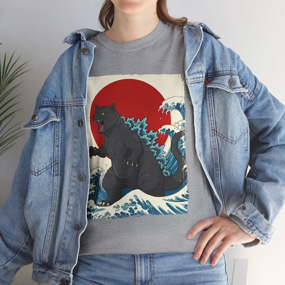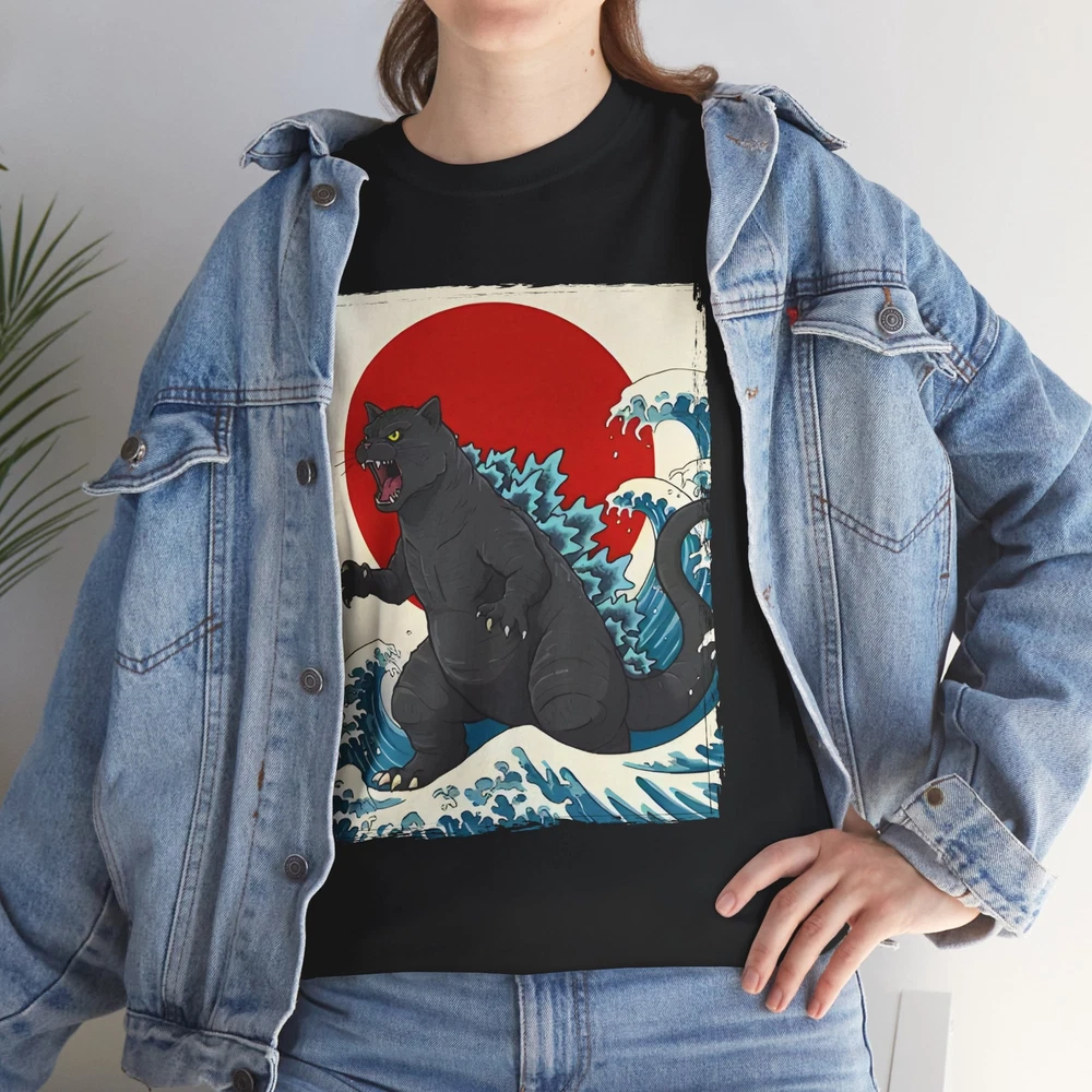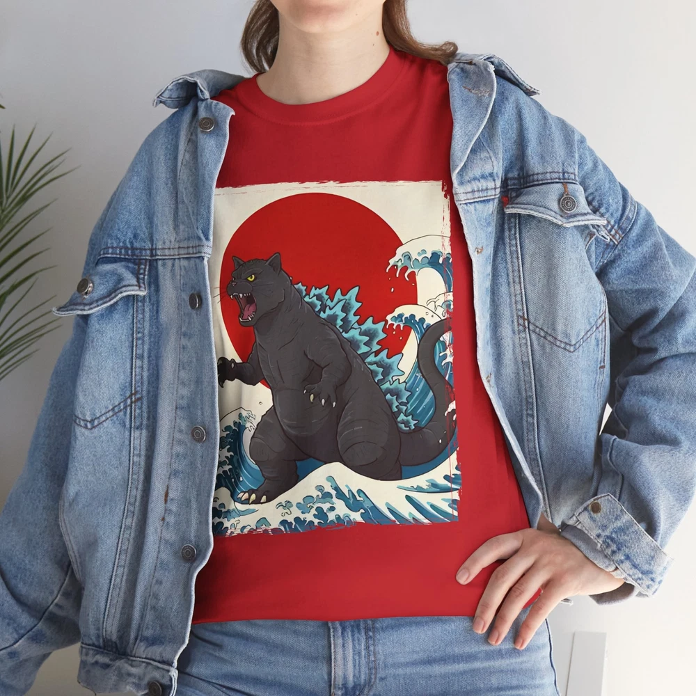 Catzilla Graphic Tee – Fun Cat Meets Godzilla Shirt for Men & Women