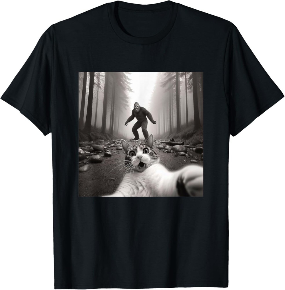 Funny Surprised Scared Cat Selfie With Sasquatsch Bigfoot T-Shirt FREE SHIPPING! FAST DELIVERY! DOMESTIC SHIPPING! Delivery from 3 to 7 business days! Features and further details Stay classy and unique with custom cotton and a pretty thick t-shirt. The print on demand t-shirt is designed with a crew neckline, short sleeves for better comfort, taped neck and shoulders, and double-needle sleeves for enhanced durability. It?s a good choice for both men and women. Material: 5.3 oz/yd², Dark Heather, Graphite Heather, Heather Navy, Heather Red, Tweed (50% cotton, 50% polyester); Sport Grey, Antique Irish Green, Antique Orange, Antique Sapphire (90% Cotton/10% polyester), Ash (99% Cotton/ 1% Polyester), All Others (100% cotton). Classic, unisex fit - Comfortable to wear and suitable for anyone to wear. Non-stitched, classic width, rib collar. Printing technique: Direct to Garment. Color: Ash, Black, Charcoal, Dark Chocolate, Dark Heather, Forest Green, Gold, Ice Grey, Irish Green, Kiwi, Light Blue, Light Pink, Maroon, Military Green, Navy, Orange, Purple, Red, Royal, Sand, Sport Grey, Tropical Blue, Turf Green, White, Antique Irish Green, Antique Orange, Antique Sapphire, Azalea, Cardinal Red, Carolina Blue, Cobalt, Coral Silk, Cornsilk, Daisy, Graphite Heather, Heather Navy, Heather Red, Heliconia, Lime, Natural, Sapphire, Tweed. Size: S, M, L, XL, 2XL, 3XL, 4XL, 5XL. Blank product: Gildan 5000 Shipping We shipping from US for all orders! We offer FREE shipping on all orders! We ship within Three business days of payment, usually sooner. We use a selection of shipping services such as UPS, FedEx, USPS etc. We only ship to the lower 48 states, no APO/FPO addresses or PO Boxes allowed. Local pickups and combined shipping options are not provided at this time. Feedback Customer satisfaction is very important to us. If you have any problem with your order, please contact us and we will do our best to make you satisfied. Contact Us If you have any queries, please contact us via ebay. We usually respond within 24 hours on weekdays. Please visit our store to check out other items for sale! Thank you for shopping at our store.