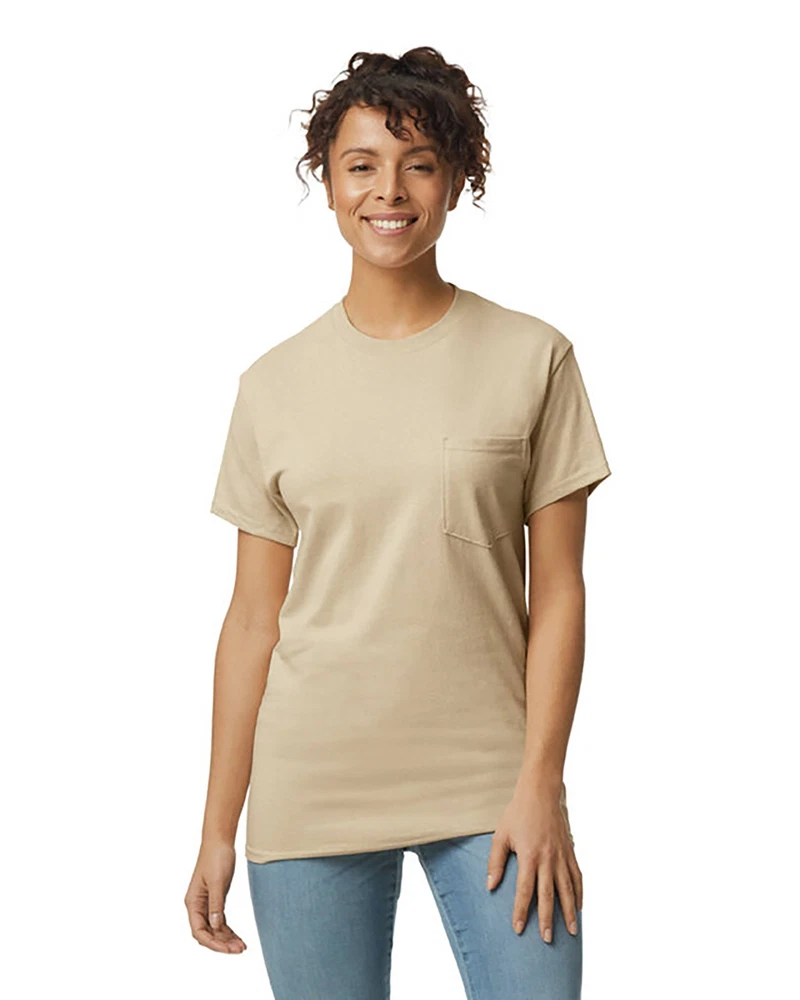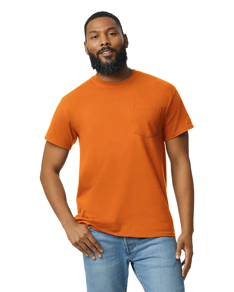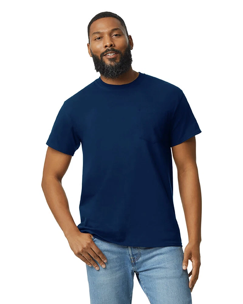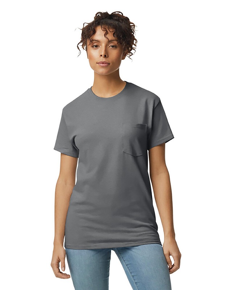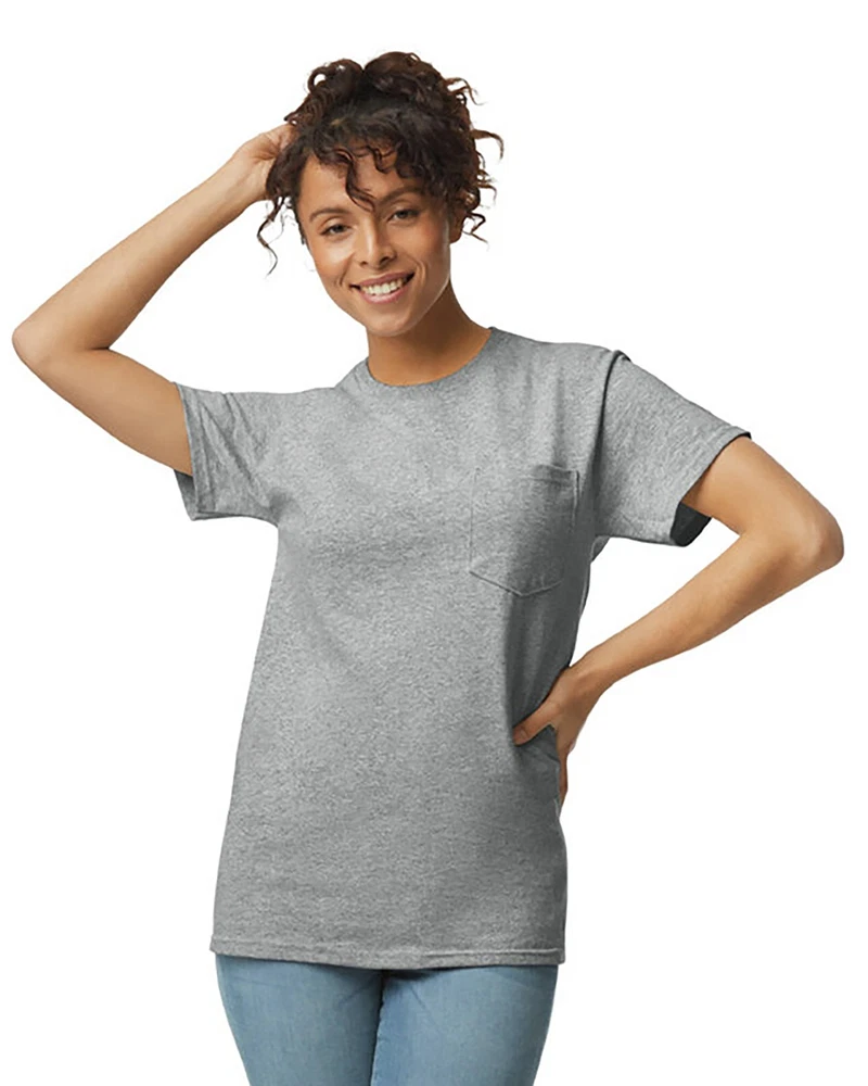GD201 Gildan 2300 Adult Ultra Cotton Short Sleeve T-Shirt – Classic Crew Neck with Pocket, Durable Fabric, and Everyday Comfort in One! Product Specifications 6.0 oz., 100% US cotton, 18/1 6.0 oz., 99% cotton / 1% polyester (Ash Grey) 6.0 oz., 90% cotton / 10% polyester (Sport Grey) 6.0 oz., 50% cotton / 50% polyester (S Orange, Safety Pink & Safety Green) Ultra Cotton's heavweight fabric provides structure and durability in an extensive color palette, making it a great choice for everyday and workwear. Classic width, rib collar Taped neck and shoulders for comfort and durability Classic fit, seamless body Transitioning to high-performing black recycled tear-away label Safety Green is compliant with ANSI / ISEA 107 high-visibility standards Proud member of the U.S. Cotton Trust Protocol Made with OEKO-TEX certified low-impact dyes Plastic waste is diverted from landfills annually by the removal of polybags from all products except color white Size Chart