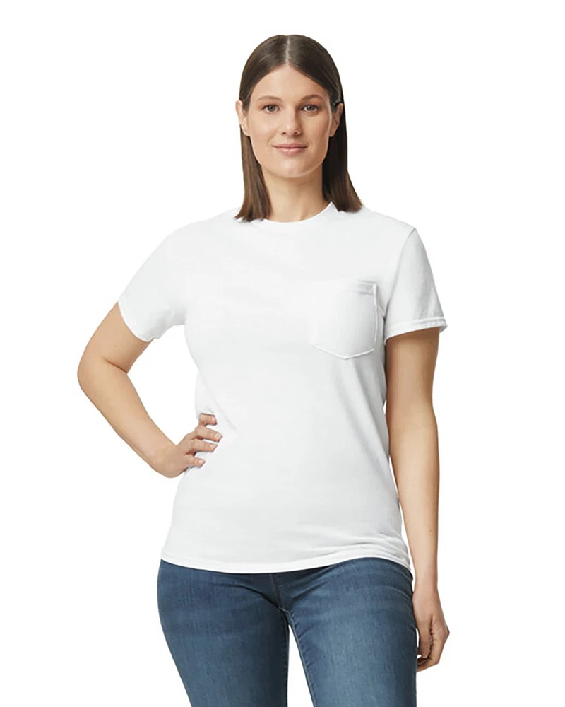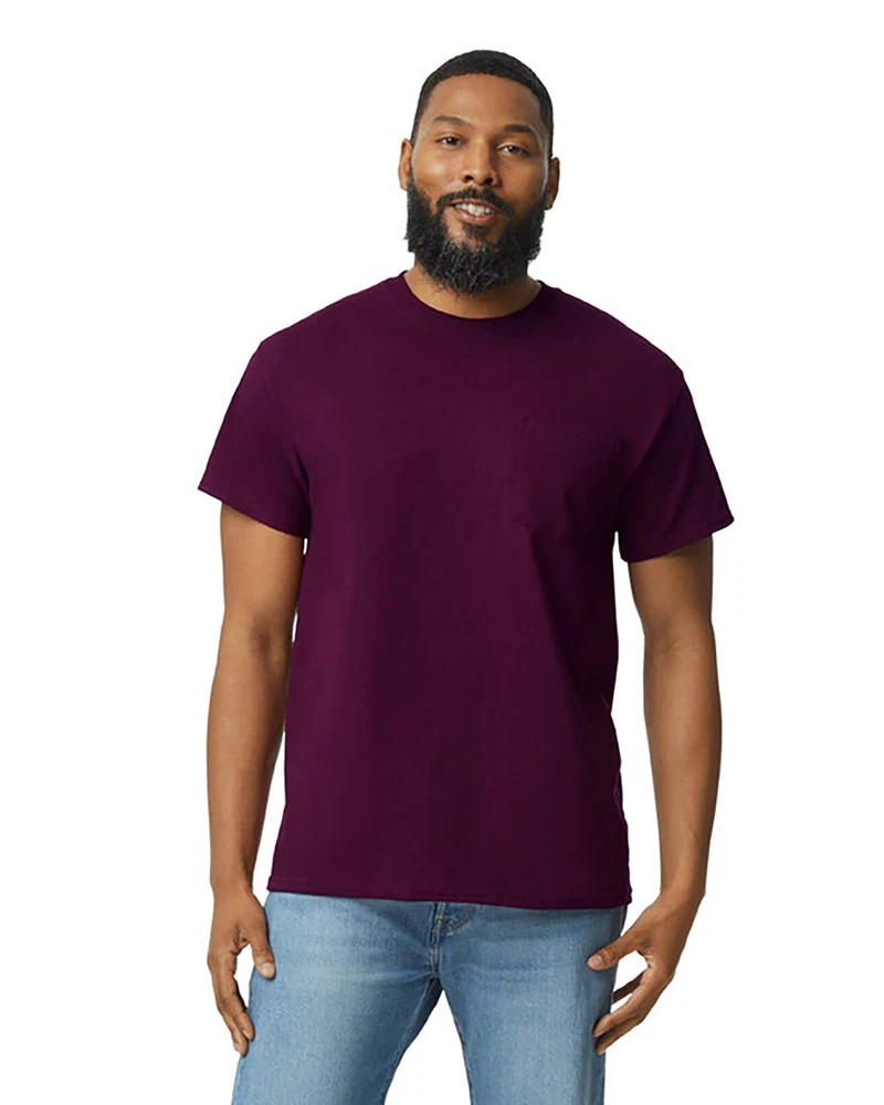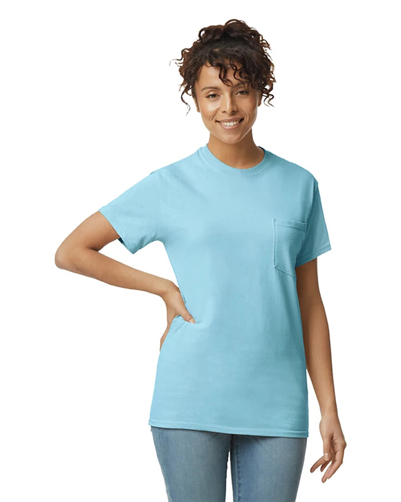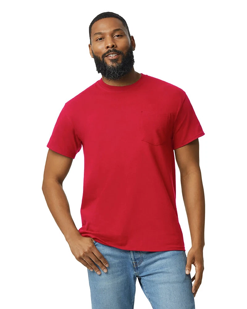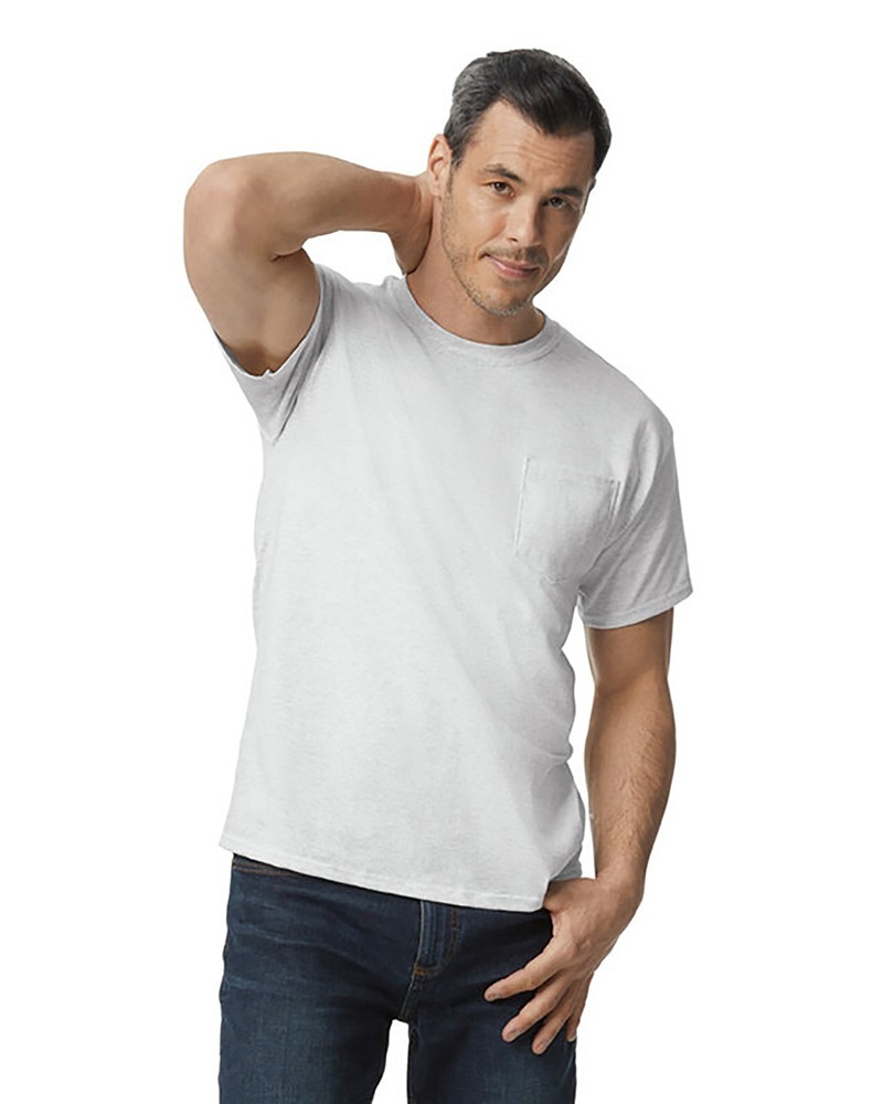 GD201 Gildan 2300 Adult Ultra Cotton Short Sleeve T-Shirt – Classic Crew Neck with Pocket, Durable Fabric, and Everyday Comfort in One! Product Specifications 6.0 oz., 100% US cotton, 18/1 6.0 oz., 99% cotton / 1% polyester (Ash Grey) 6.0 oz., 90% cotton / 10% polyester (Sport Grey) 6.0 oz., 50% cotton / 50% polyester (S Orange, Safety Pink & Safety Green) Ultra Cotton's heavweight fabric provides structure and durability in an extensive color palette, making it a great choice for everyday and workwear. Classic width, rib collar Taped neck and shoulders for comfort and durability Classic fit, seamless body Transitioning to high-performing black recycled tear-away label Safety Green is compliant with ANSI / ISEA 107 high-visibility standards Proud member of the U.S. Cotton Trust Protocol Made with OEKO-TEX certified low-impact dyes Plastic waste is diverted from landfills annually by the removal of polybags from all products except color white Size Chart