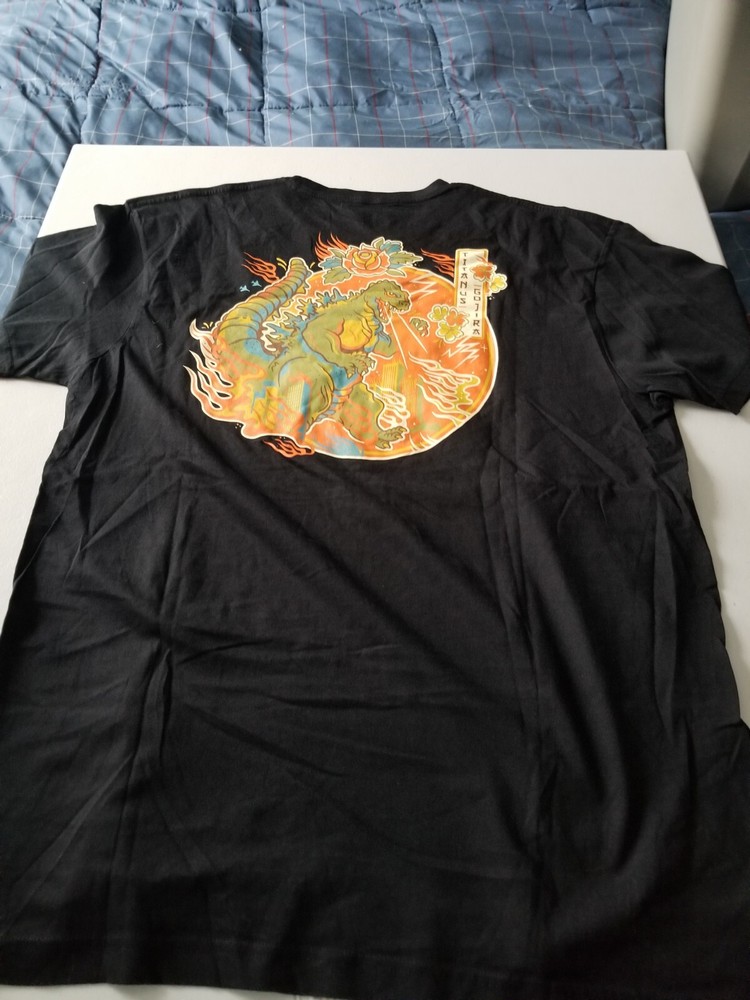 GEEK FUEL GODZILLA TITANUS GOJIRA SS SLEEVE T SHIRT SZ XL CLR BLACK BNNW SIZE X-LARGE COLOR BLACK MAKER OR BRAND GEEK FUEL OUR BUSINESS STATEMENT WE ARE NOT APPRAISERS OR EXPERTS . WE WILL GIVE HONEST DESCRIPTIONS TO CONDITION OF ITEMS AS ACCURATE AS POSSIBLE. MOST ITEMS ARE FROM ESTATE SALES AND HAVE BEEN PREVIOUSLY LOVED AND OWNED. ALL VISIBLE FLAWS WILL BE NOTED. WE WILL USE ARE BEST JUDGEMENT TO DETERMINE CONDITION. WE WANT YOU TO BE HAPPY WITH YOUR PURCHASE AND WELCOME ANY QUESTIONS YOU HAVE. BEFORE GOING TO RESOLUTION CENTER PLEASE CONTACT US PRIOR, 99% OF THE TIME WE CAN RESOLVE ANY PROBLEM PRIOR TO. WE WANT YOU TO ENJOY EBAY AND YOUR BIDDING/BUYING EXPERIENCE. WE LEAVE FEEDBACK AND HOPE YOU RETURN THE FAVOR WE WELCOME CORRECTIONS IF YOU SEE ANYTHING LISTED WRONG, WE ALSO APPRECIEATE KNOWLEDGE OF PRODUCTS. IF YOU KNOW SOMETHING THAT WILL HELP US, PLEASE FEEL FREE TO SEND INFO, IT HELPS EVERYONE ON EBAY WITH ACCURATE DESCRIPTIONS. GOOD LUCK IN YOUR BIDDING! WE APPRECIEATE YOUR BUSINESS! INTERNATIONAL SHIPPING WE USE THE GLOBAL SHIPPING PROGRAM ONLY NO QUOTES CAN BE GIVEN