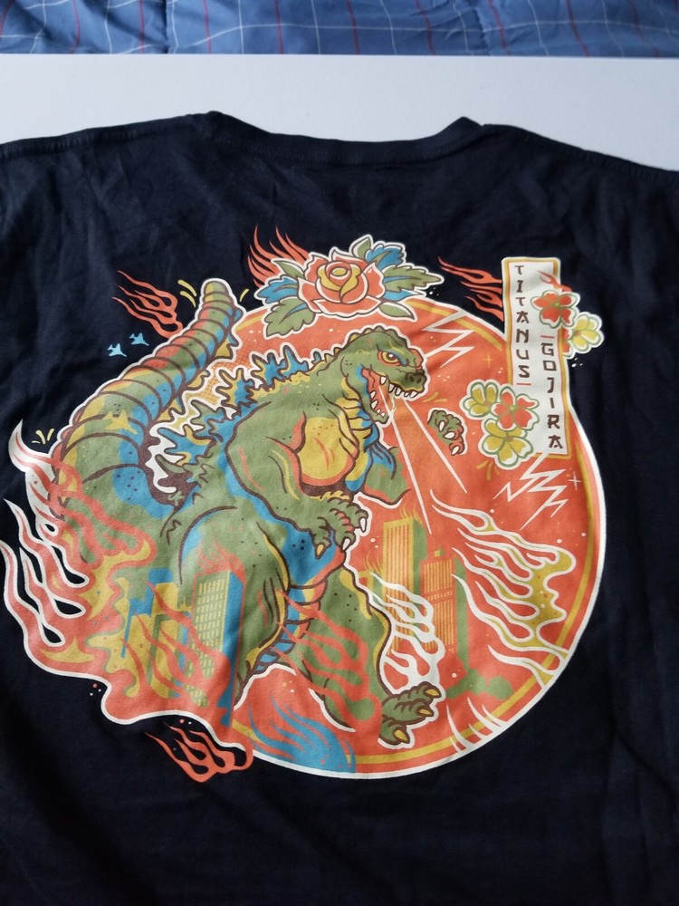 This Godzilla tee is a must-have for any kaiju fan! The print is bold and vibrant, and the XL fits perfectly—true to size. The black color makes the design pop, and the fabric feels soft and comfortable. Even though it's pre-loved, the condition is excellent with no noticeable flaws. Great quality for the price, and it arrived quickly. Highly recommend for fellow monster enthusiasts!