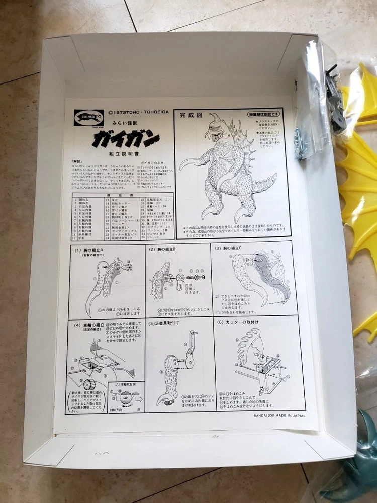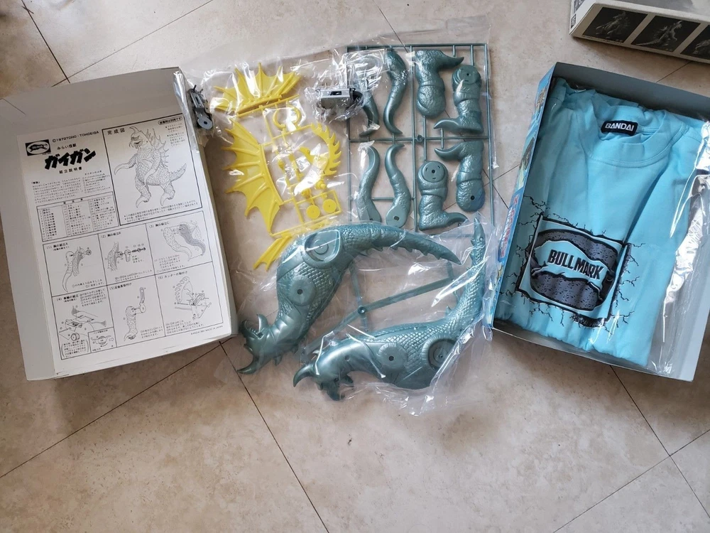 **** HOLIDAY SALE **** NORMALLY COSTS: $139.99 PLEASE READ THE ENTIRE DESCRIPTION FOR ITEM DIMENSIONS, SHIPPING OPTIONS AND RATES, AS WELL AS , PAYMENT INSTRUCTIONS "BEFORE BIDDING". This auction is for 1 BRAND NEW GIGAN WALKING MODEL KIT with INSTRUCTIONS and T-SHIRT. It is from the BANDAI 2001 REISSUE SERIES OF THE "BULLMARK" VERSION MODEL KITS. This Series is NO LONGER BEING PRODUCED and is considered to be from a "RETIRED SET". T his is a BUY IT NOW AUCTION. If you want the merchandise, just use the "BUY IT NOW OPTION" RIGHT NO W and the item is yours. There is NO WAITING FOR THE AUCTION TO END. This WALKING MODEL KIT with T-SHIRT is Fantastic for any GODZILLA & COMPANY FAN and makes the ULTIMATE COLLECTIBLE or GIFT. SINCE THE MODEL KIT HAS NOT BEEN ASSEMBLED YET, as shown in the Pictures, WE CAN NOT GIVE YOU THE EXACT DIMENSIONS. HOWEVER, we thought the following information would be helpful: The GIGAN is approximately 9 & 1/2 inches Tall, 10 inches Long and 4 inches Wide. ASSEMBLY OF THE MODEL KIT IS REQUIRED and when finished, this Model Kit will be able to WALK. The T-SHIRT DOES NOT appear to have a size marked on it. It looks to be a LARGE or X-LARGE. Also, please remember, the T-SHIRT HAS NEVER BEEN WORN. We STRONGLY RECOMMEND the MODEL GIGAN BE USED FOR DISPLAY PUPOSES and SERIOUS COLLECTOR "ONLY". It is "NOT" MEANT FOR CHILDREN TO PLAY WITH AS A TOY. This ABSOLUTELY OUTSTANDING GIGAN WALKING MODEL KIT with T-SHIRT was made by BANDAI, JAPAN and PRODUCED in their CHINA PLANT in 2001. It is from their BANDAI 2001 REISSUE SERIES OF THE "BULLMARK" VERSION MODEL KITS, which is NO LONGER BEING PRODUCED. Any Pieces from the Series are EXTREMELY RARE and VERY HARD TO FIND. This Series is CONSIDERED TO NOW BE A "RETIRED SET". DO NOT LET THIS GIGAN WALKING MODEL KIT WITH T-SHIRT "WALK" AWAY. The KIT comes in its ORIGINAL COLOR BOX WITHIN A BOX PACKAGING with INSTRUCTIONS and T-SHIRT. It has been OPENED so we could take pictures of the KIT, but PLEASE REMEMBER, it has NEVER BEEN ASSEMBLED and the T-SHIRT HAS NEVER BEEN WORN. The items are BRAND NEW. Anyone who is a Godzilla & Company Fan will definitely want to own this AMAZING ITEM. It is a MUST HAVE piece for any Godzilla Collector. Take a look at the other merchandise we have up for auction. If you are interested in purchasing more than 1 of our items, please do so and then WAIT FOR ME TO SEND YOUR INVOICE. This way you will MOST LIKELY RECEIVE A DISCOUNT ON SHIPPING and all items CAN USUALLY (this really depends on the size of the and weight of the pieces) BE SHIPPED TOGETHER IN 1 BOX. **** IMPORTANT NOTE: IF YOU PAY FOR ITEMS INDIVIDUALLY, THEN THEY MUST BE SHIPPED INDIVIDUALLY. If you have any questions, please feel free to contact us through E-Bay. WE WILL ONLY SHIP WITHIN THE UNITED STATES. NO EXCEPTIONS WILL BE MADE AT THIS TIME. Shipping is via PRIORITY MAIL with INSURANCE for the items Entire Purchase Price of $99.99 and a Delivery Confirmation TRACKING #. This service costs $26.75 and takes an average of 2 to 4 days after shipping, however, sometimes it can take longer due to BAD WEATHER or HOLIDAYS. We will ship the merchandise SECURELY IN A STURDY BOX FOR SAFETY PURPOSES , NOT A BUBBLE ENVELOPE WITH JUST STAMPS ON IT AND NO TRACKING INFORMATION. PROCESSING TIME USUALLY TAKES BETWEEN 1 and 5 BUSINESS DAYS AFTER PAYMENT HAS BEEN CLEARED BY PAYPAL.