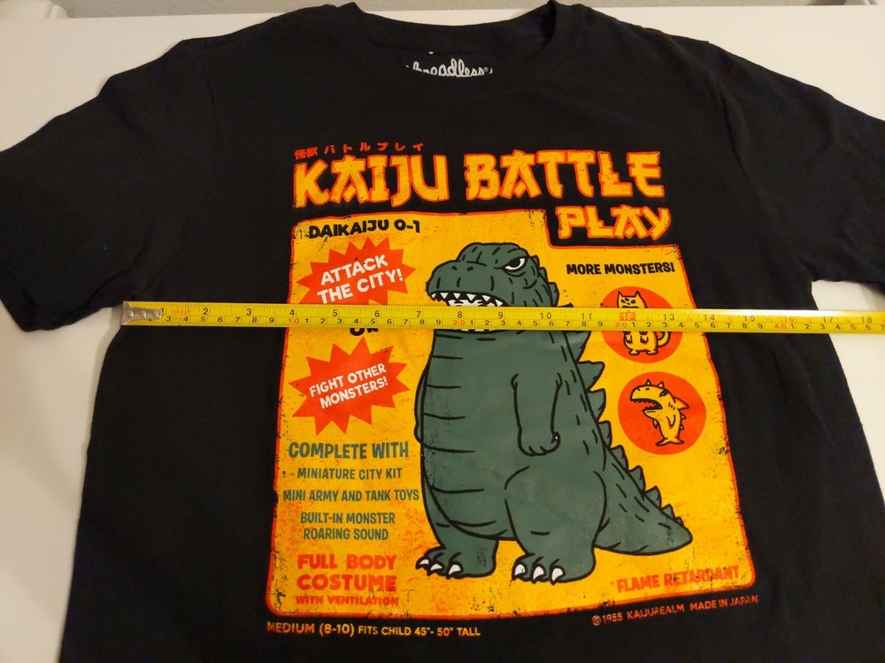 GODZILLA Black Shirt Size SM Advertisement Logo Threadless Kaiju City. -Brand New without Tags -Adult Size Small -Measurements included in pictures **Colors may vary due to lighting** Thank you for looking