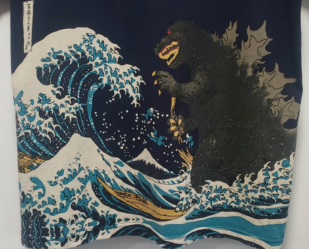 PLEASE READ AND VIEW PHOTOS CAREFULLY! GODZILLA GOJIRA BLUE UKIYOE TSUNAMI WAVE T-SHIRT SIZE 3XL ASIAN SIZE 2017 USED; EXCELLENT CONDITION NO LONGER MADE: THE ONLY ONE ON EBAY KNOW YOUR SIZE BEFORE PURCHASE SOLD AS IS ALL SALES ARE FINAL NO RETURNS INTERNATIONAL SHIPPING EXTRA!