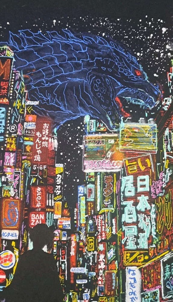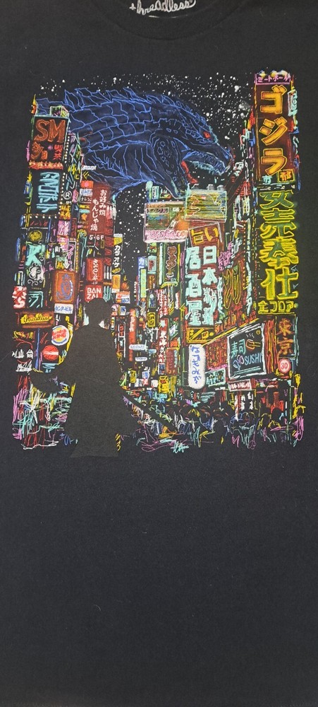 This rare and sought-after GODZILLA KAIJU CITY t-shirt is a must-have for any fan of the iconic monster and the vibrant city life. The black tee features a unique design that showcases the legendary beast and the bustling metropolis, making it the perfect addition to any wardrobe. Whether you're a collector or just looking for a stylish and comfortable tee, this is the perfect choice. Add it to your cart today!
