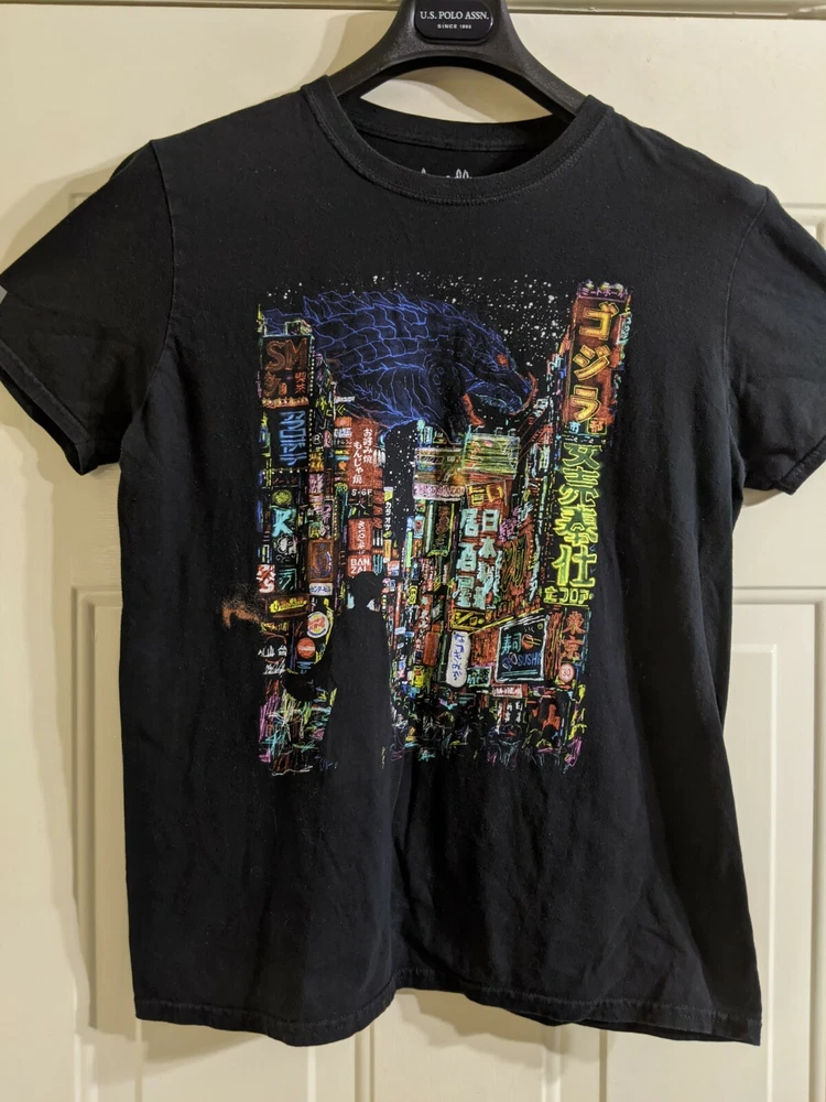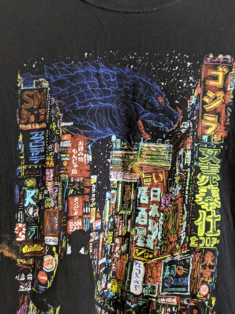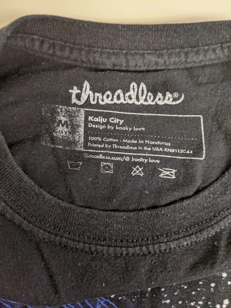 Mens Threadless Rare T-Shirt Sz Med Black Kaiju City Kooky Love Design Godzilla. Condition is "Pre-owned". Shipped with USPS First Class... Amazing GRAPHIC!!!! GREAT RARE SHIRT!!!...