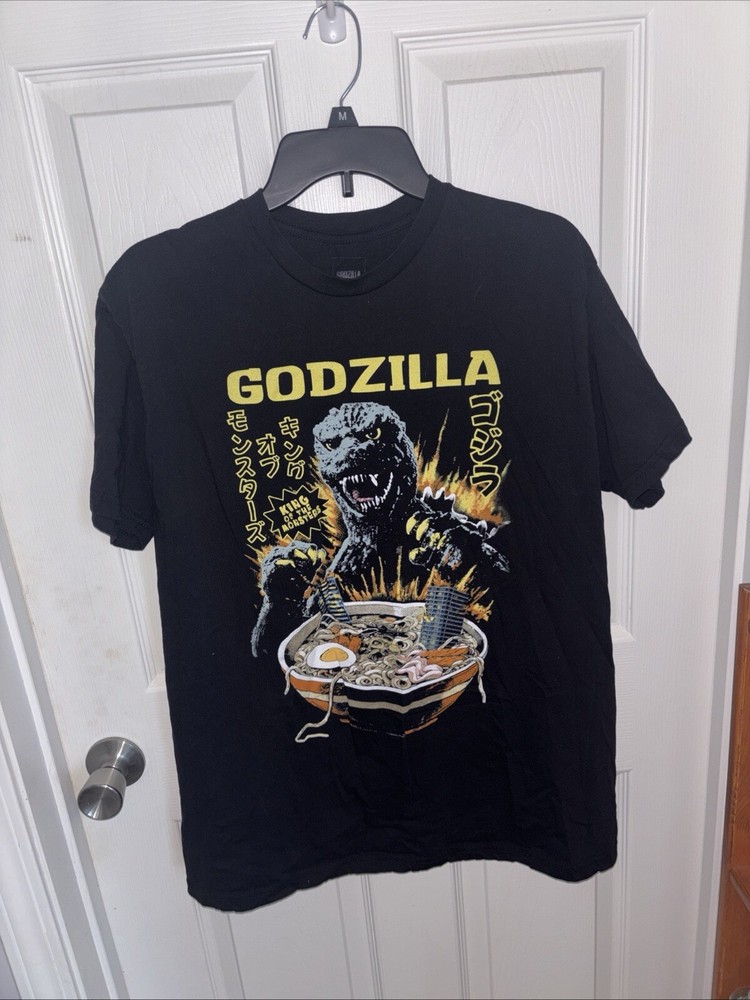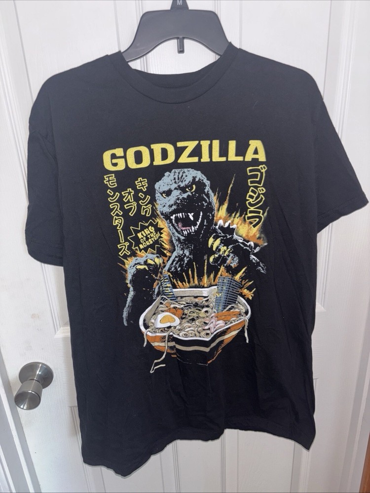 This black cotton and polyester t-shirt features a graphic print of Godzilla from the King of the Monsters movie. The shirt has a crew neck and short sleeves, and is available in size L. It is machine washable and easy to care for, making it a great choice for all seasons. The shirt is lightweight and breathable, with a collarless design and no accents other than the logo. It is perfect for fans of the Godzilla franchise, as well as those who love horror, anime, and classic movie themes. This t-shirt is part of the Toho Co product line and was manufactured in Pakistan between 2010 and 2019.