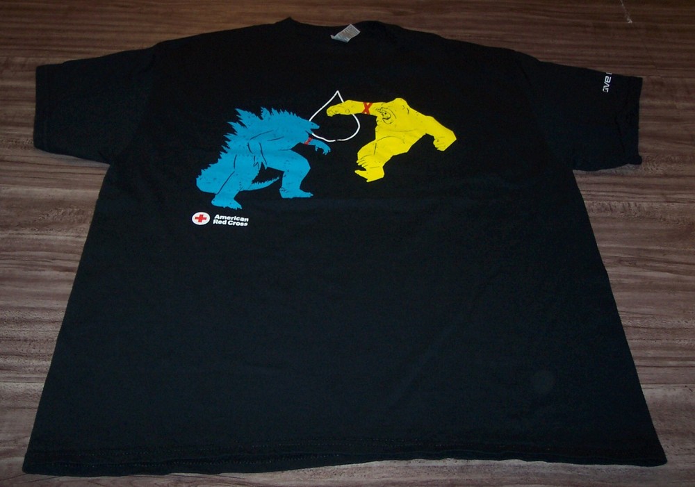 This is a GODZILLA KONG The New Empire Movie Red Cross Promo T-shirt. It is a size XL. It is 24 inches from armpit to armpit and 29 inches in length. It is a little shorter then a typical XL, but if you are on the shorter side it may fit you perfectly. See Measurements. It is in Great condition. It is CLEAN! No Stains, Tears, or Defects. Combine auctions to save on shipping. AD ~~~~~~~~~~~SMOKE FREE HOME!!~~~~~~~~~~~
