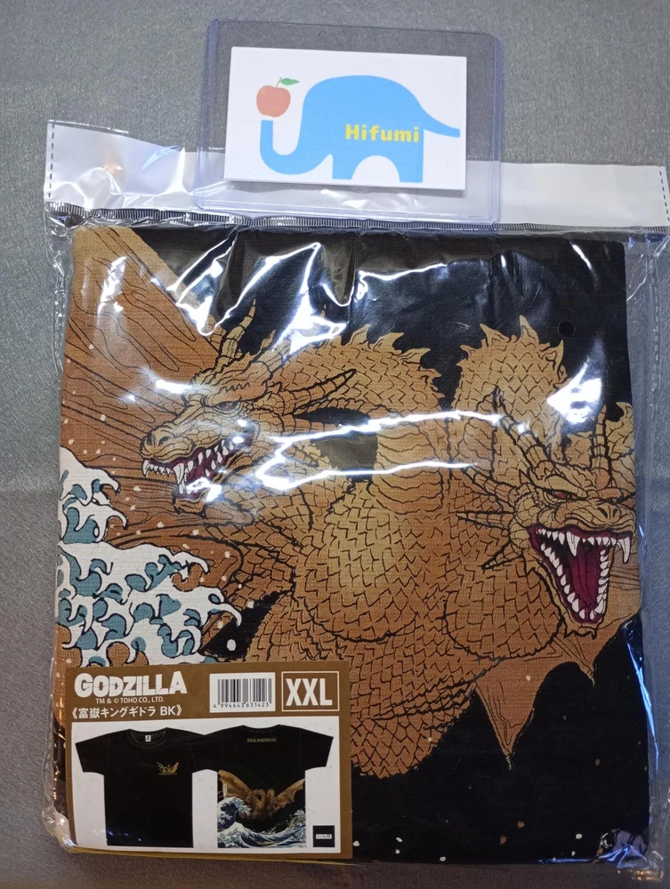 [GODZILLA] King Ghidorah dyed T-Shirt Black XXL (L29 x W23) Ukiyo-e Fugaku JAPAN