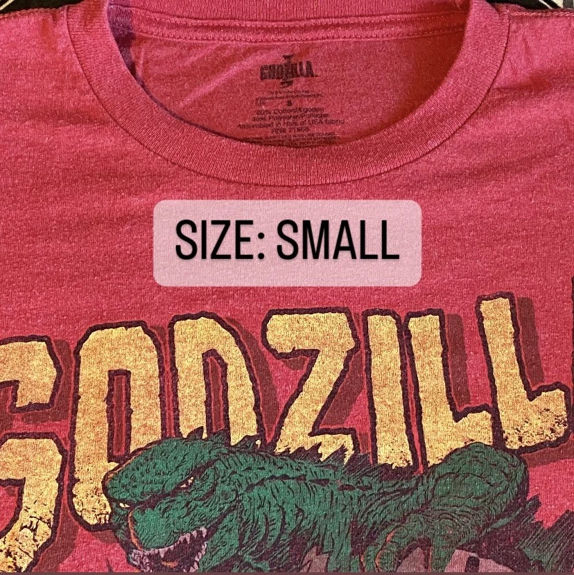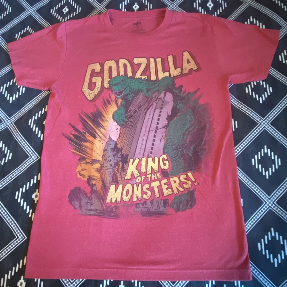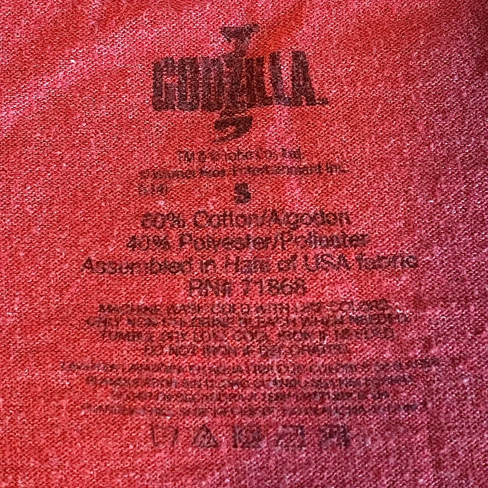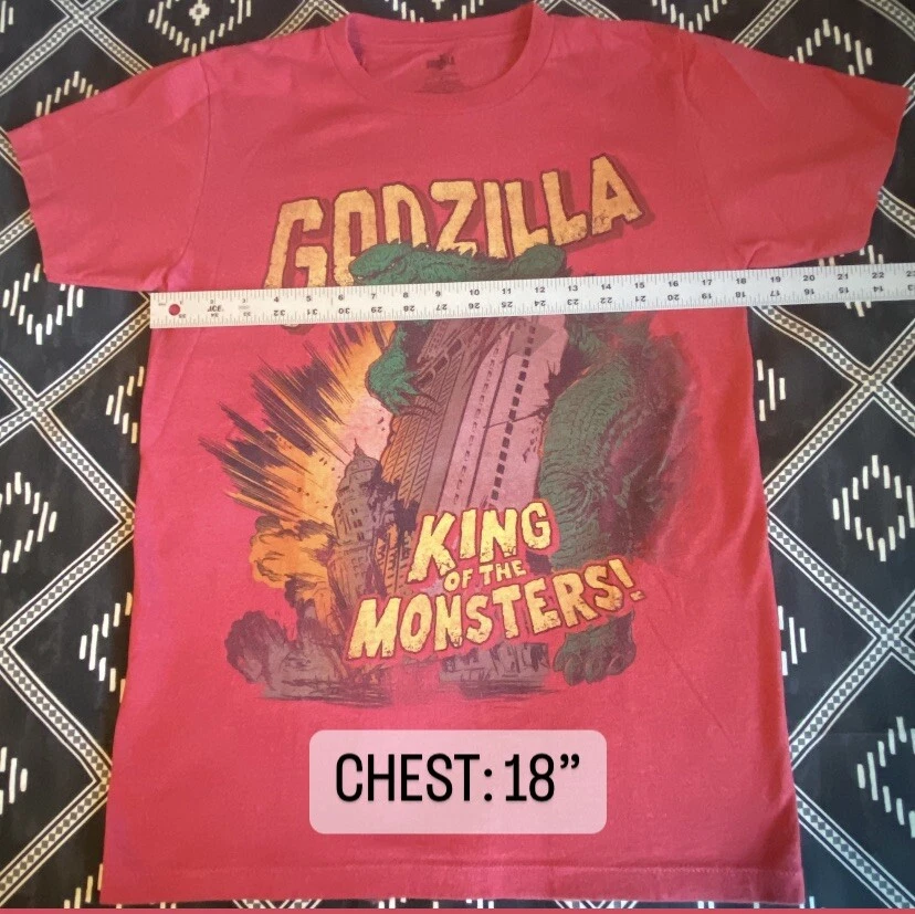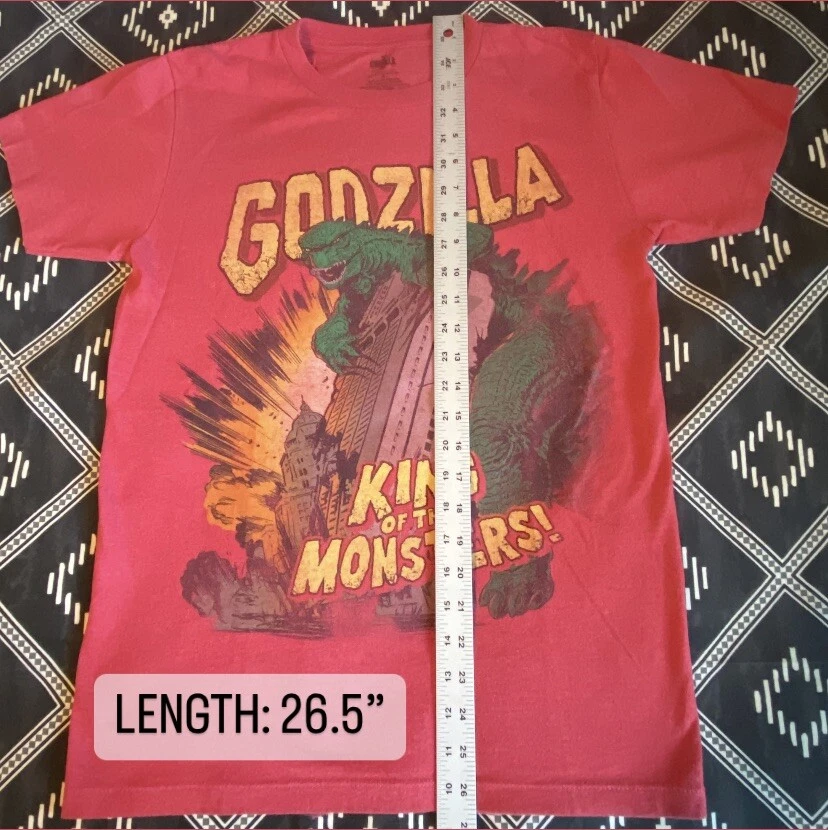 (NV) GODZILLA “King of the Monsters” Officially Licensed T-Shirt By Toho Co. Ltd. Size: SMALL (ATHLETIC FIT) See Measurements Below. Retro-reprint Creature Feature tee for giant Japanese monster, Godzilla. The distressed Comic Book style design features the iconic giant Kaiju unleashing havoc on a city. Large “Godzilla” logo with “King of the Monsters” written below. Soft Cotton Poly Blend, Athletic Fit, Red T-Shirt. Condition is "Pre-owned" and is in great shape. Shipped with USPS Ground Advantage. No Returns. MEASUREMENTS : Fits like a Mens SMALL (S) (ATHLETIC FIT) Length: 26.5” Chest: 18” Sleeve: 7” CHECK OUT MY OTHER COOL TEES. NOW AVAILABLE AT MY EBAY STORE! ALL USED CLOTHING HAS BEEN PROPERLY CLEANED & LAUNDERED IN COMPLIANCE TO EBAY POLICY STANDARDS