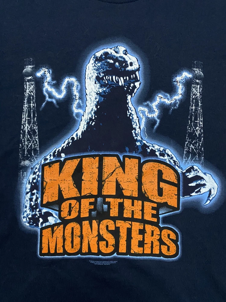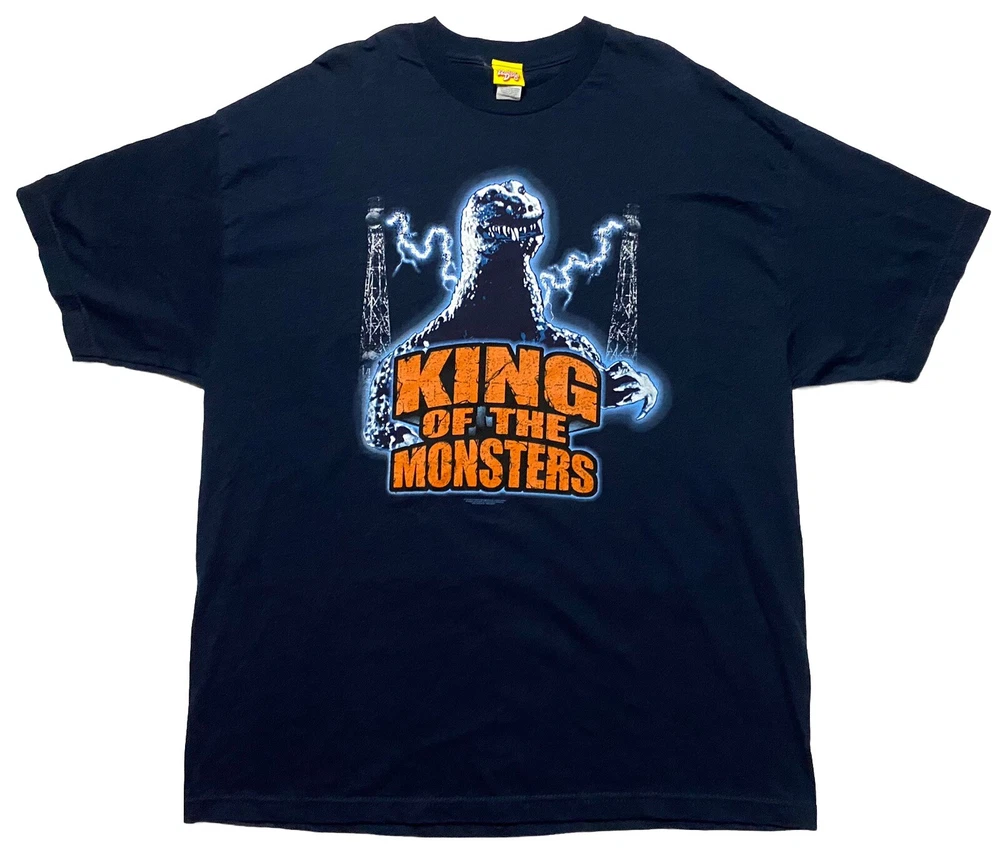 Fans of the classic movie, "Godzilla King of the Monsters," will love this XXL navy blue T-shirt from Radio Days. The shirt features a bold print of the iconic monster and is perfect for any fan of the franchise. Made from high-quality materials, this shirt is sure to last for years to come. Whether you're looking for a unique addition to your movie memorabilia collection or just a comfortable and stylish shirt to wear around town, this Godzilla King of the Monsters T-shirt is sure to please. With its bold print and high-quality construction, it's a must-have for any true fan of the movie. Shirt is in great condition, no holes or tears asides from the original tag.