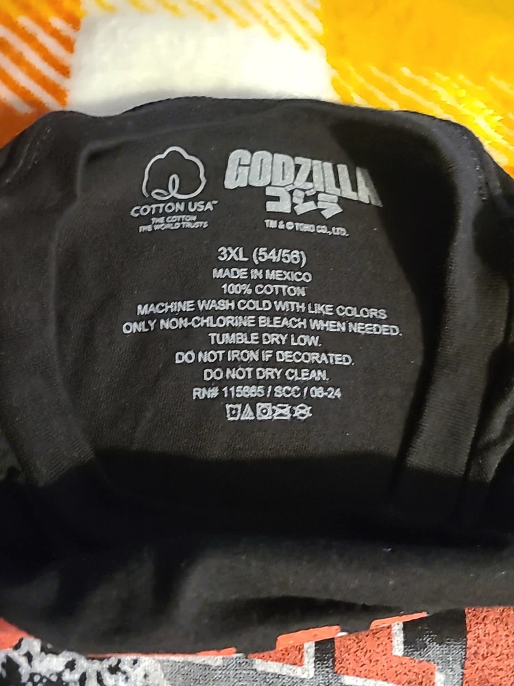 Note: The t-shirt will be lint rolled before being shipped. This Godzilla men's 3XL graphic t-shirt features a crew neck, short sleeves, and a black color. Made of cotton fabric, the lightweight and breathable shirt is easy to care for with machine washability. Officially licensed and showcasing a Godzilla logo graphic print, this regular fit tee is a part of the Godzilla product line, perfect for fans of the movie, cartoon, and comics theme. Ideal for all seasons, this t-shirt is a must-have for any Godzilla enthusiast looking to add a unique piece to their collection.
