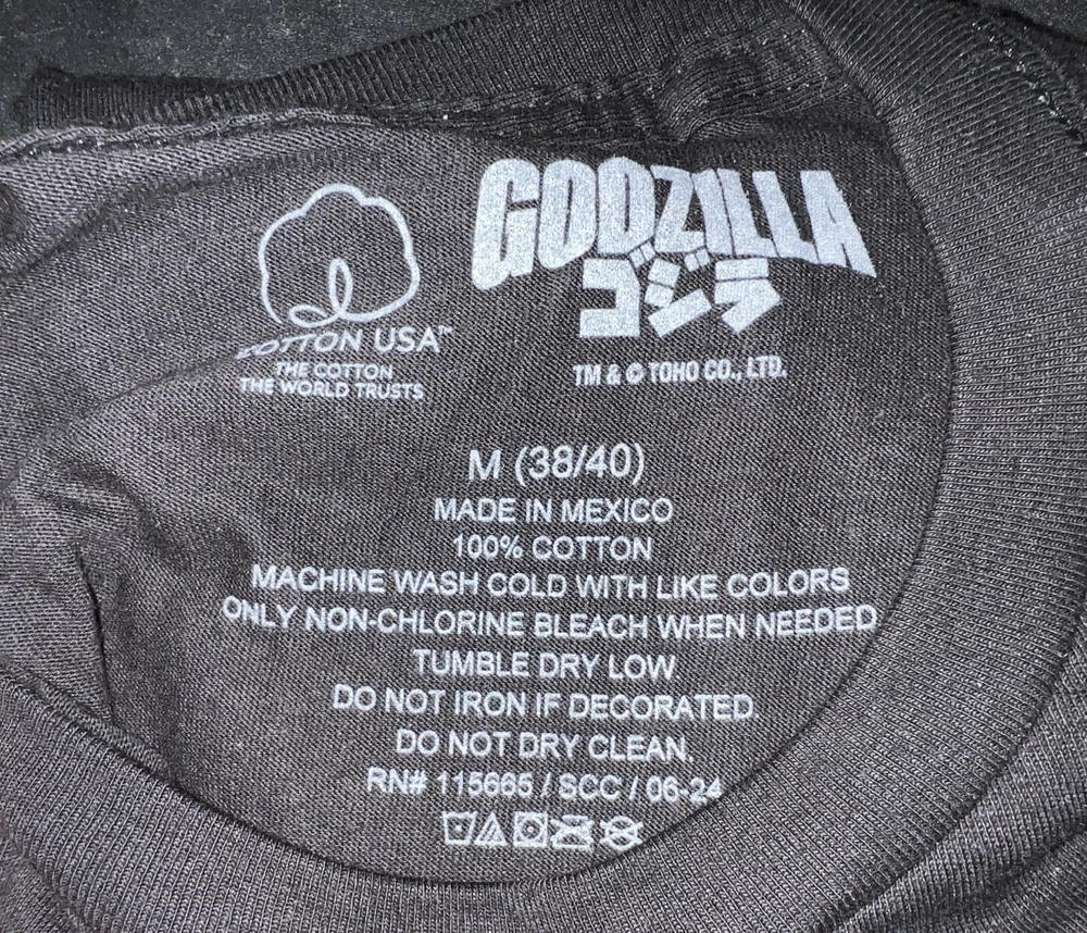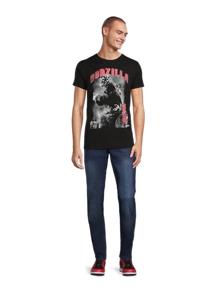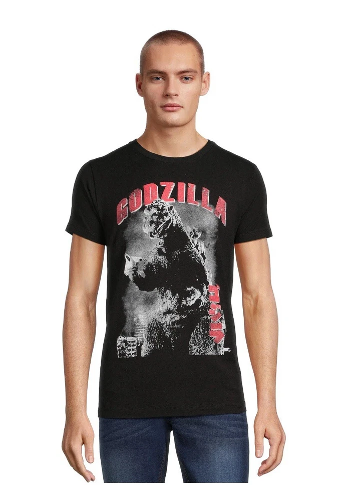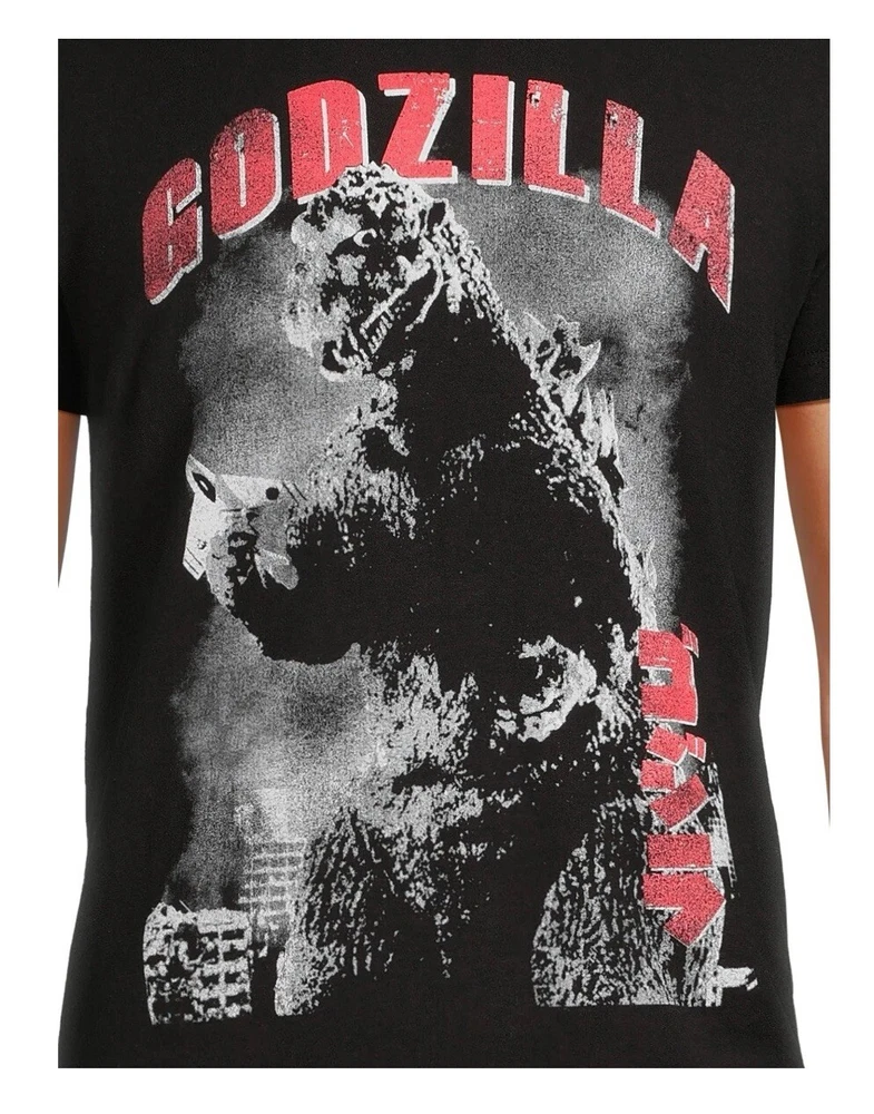 It’s Godzilla! Celebrate the colossal character with this classic Godzilla Tee for men. This short-sleeve T-shirt features a super-cool image of the King of the Monsters, Godzilla, wreaking havoc throughout the city. This crewneck graphic tee is crafted in 100% cotton for maximum comfort and pairs with your shorts or jeans for a complete pop culture-inspired outfit. ****This product was sourced from a major retailer that is authorized to sell these legally licensed shirts. **** • Material: 100% Cotton • Care: Machine washable • Country of Origin: Imported • Size: Model is 6'1" and is wearing a size M • Fit: Classic • Closure: Pullover style • Sleeves: Short • Pockets: None • Features: Crewneck; graphic print at front • ©Toho Co., Ltd., All Rights Reserved • Men's Godzilla Graphic Tee