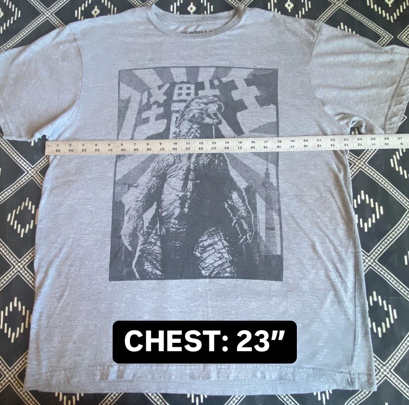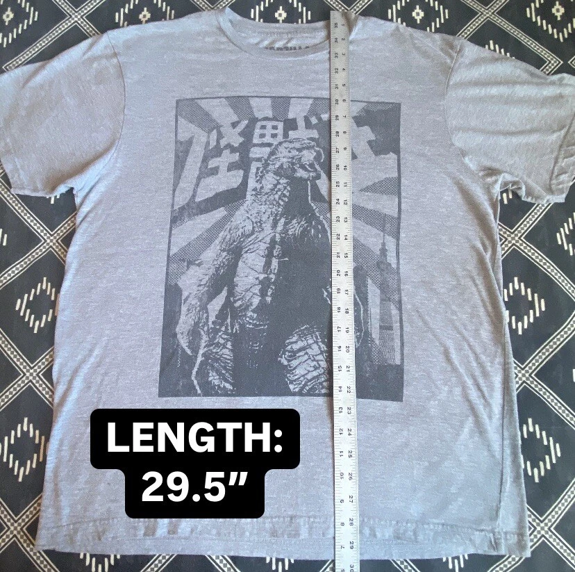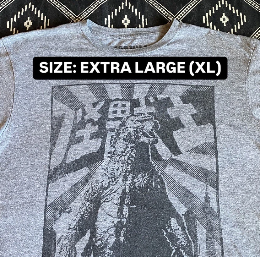 (NV) GODZILLA “Rising Sun” Officially Licensed Monster T-Shirt by Toho Co. Ltd. Size: XL (ATHLETIC FIT) See Measurements Below. Awesome Creature Feature tee for Godzilla “The King of the Monsters”. The design features a b&w illustration of the great kaiju against a Japanese “Rising Sun” background. A large, bold Japanese “Gojira” logo appears in the background. Cotton, Poly Blend Athletic Fit, Heather Gray T-Shirt. Condition is "Pre-owned" and is in excellent shape. Shipped with USPS Ground Advantage. No Returns. MEASUREMENTS : Tag Reads Mens EXTRA LARGE (XL) (ATHLETIC FIT) Length: 29.5” Chest: 23” Sleeve: 8” CHECK OUT MY OTHER COOL TEES. NOW AVAILABLE AT MY EBAY STORE! ALL USED CLOTHING HAS BEEN PROPERLY CLEANED & LAUNDERED IN COMPLIANCE TO EBAY POLICY STANDARDS