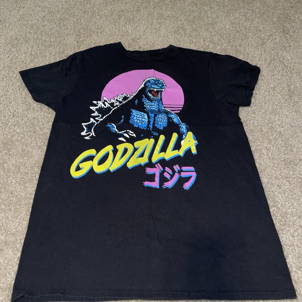 This Godzilla shirt is a must-have for any fan of the classic monster. It is made for women and comes in a size small. The shirt is black and features a design with the iconic Godzilla character. It is made from high-quality materials and is perfect for casual wear or as a gift for a fellow fan.