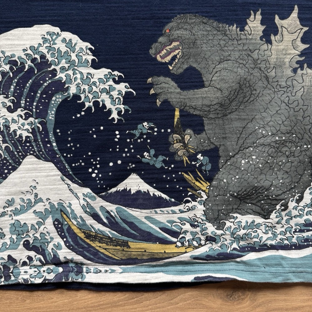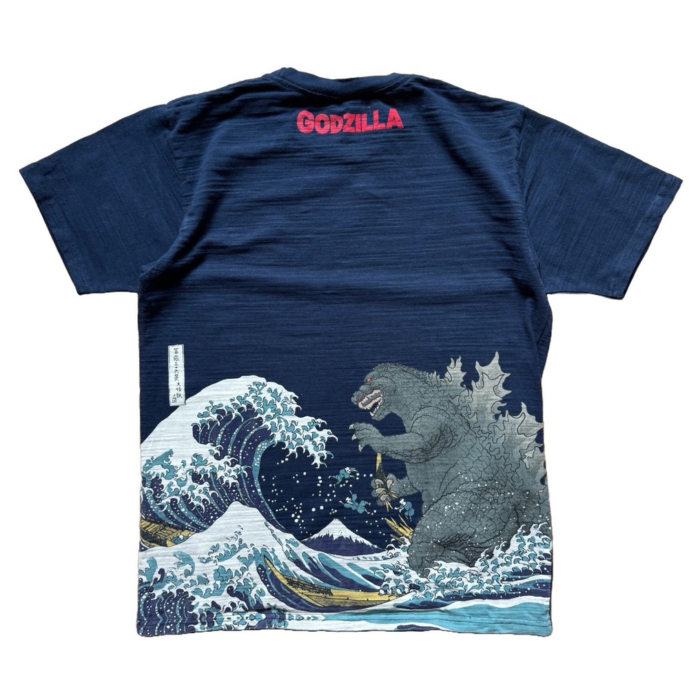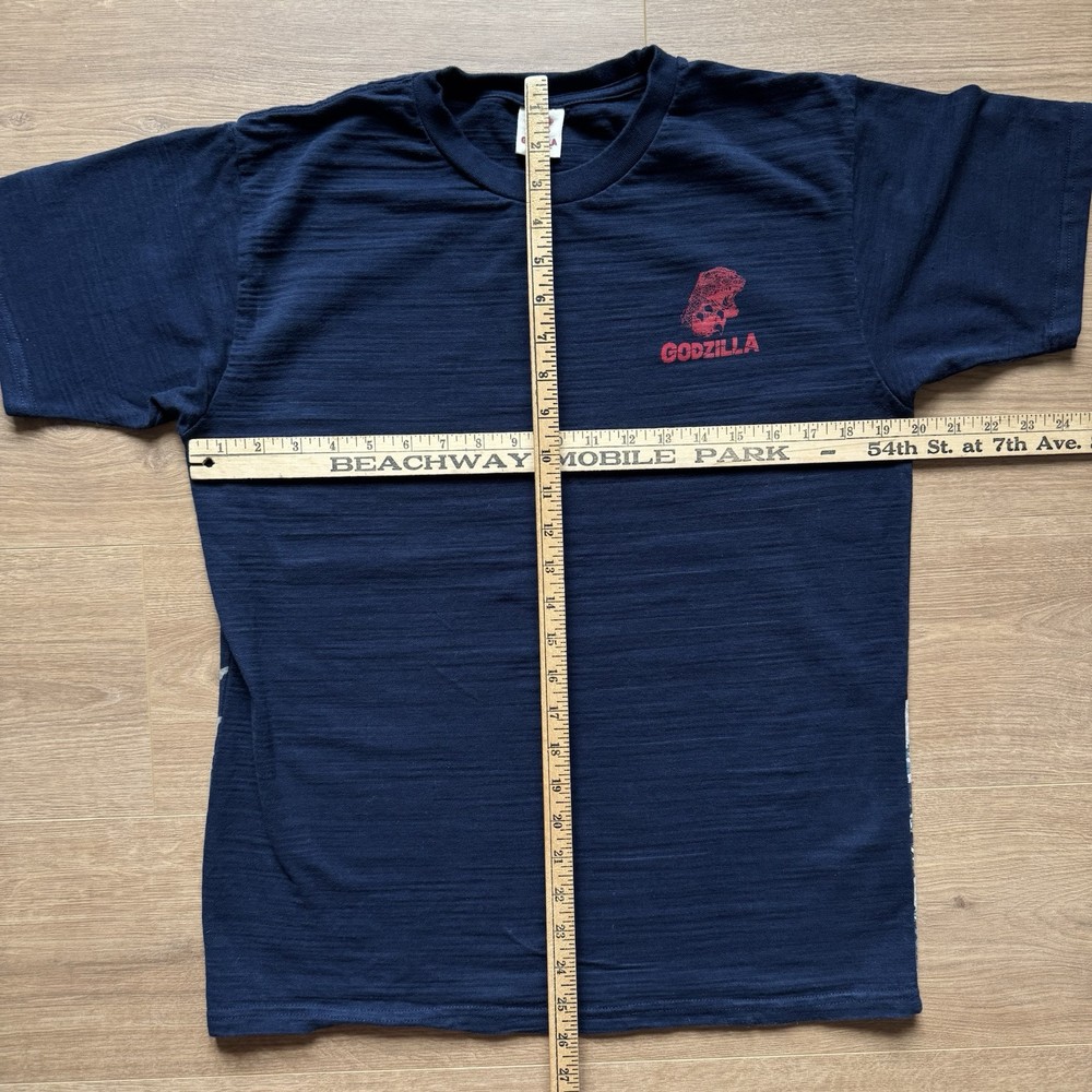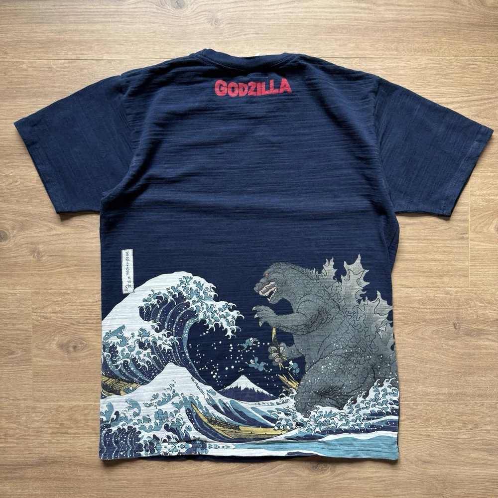 GODZILLA Toho Limited T-shirt Japanese Traditional Ukiyoe Print Navy Size L Apparel is in excellent condition. Barely any signs of wear, as shown. No significant flaws. Freshly washed and steamed. Zoom & review photos for exact details. Size L For best fit, follow pit to pit and length measurements. * Ships promptly * Thank you for viewing! #godzilla #japan #mtfuji