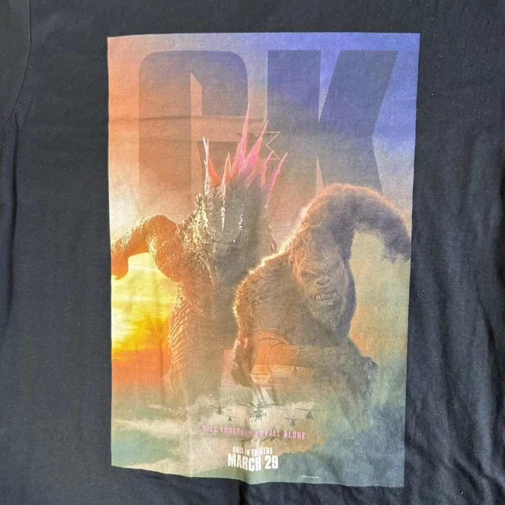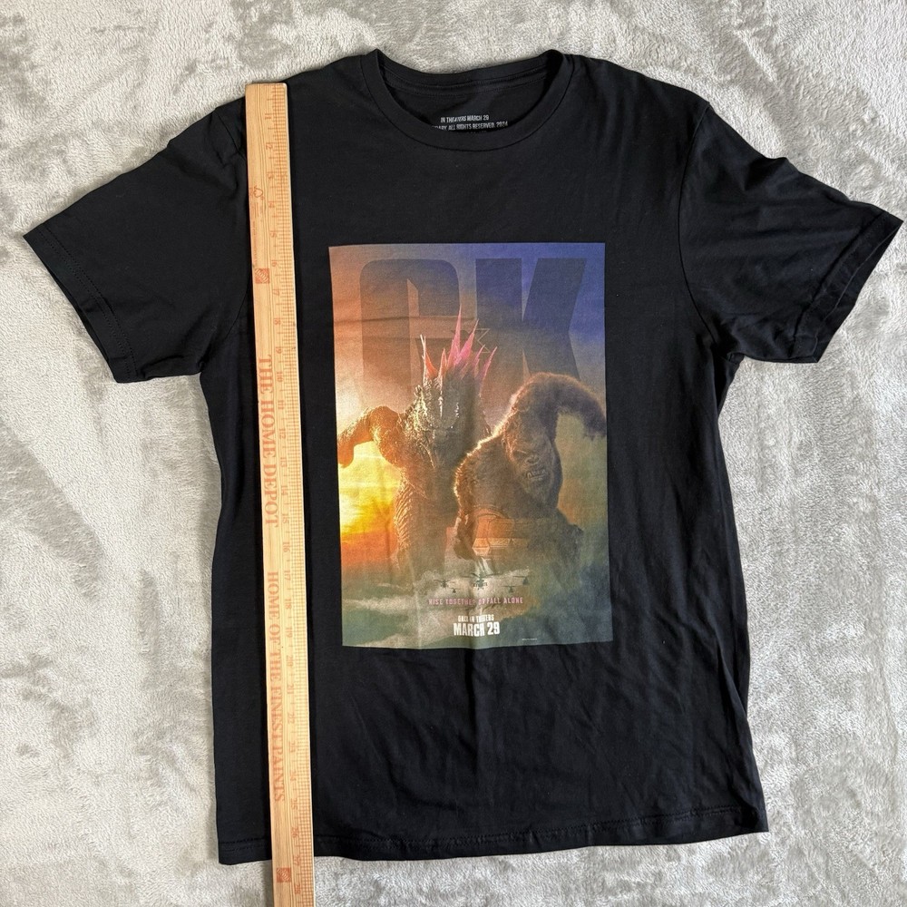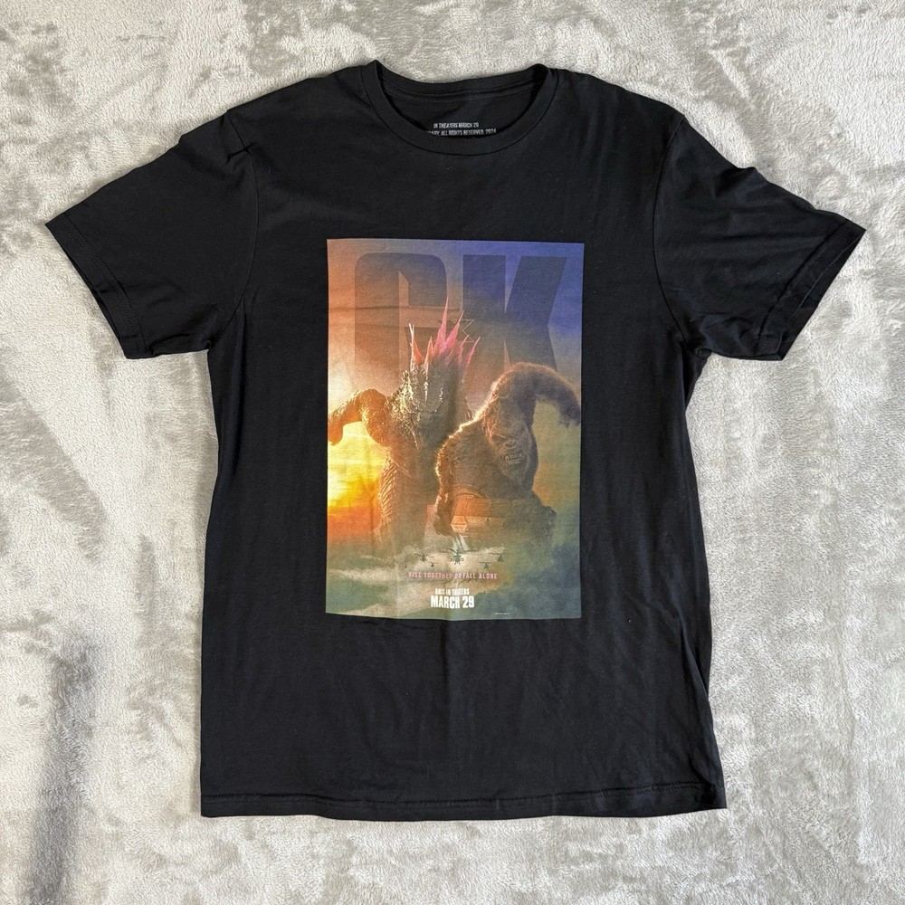 The product is a men's medium official t-shirt featuring a promo design for the movie "GODZILLA X KONG: New Empire." As a piece of entertainment memorabilia, this original promotional apparel allows fans to show off their love for the movie. With a unique design combining elements of both Godzilla and Kong, this t-shirt is sure to be a popular choice for fans looking to represent their favorite cinematic characters.