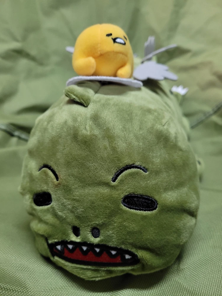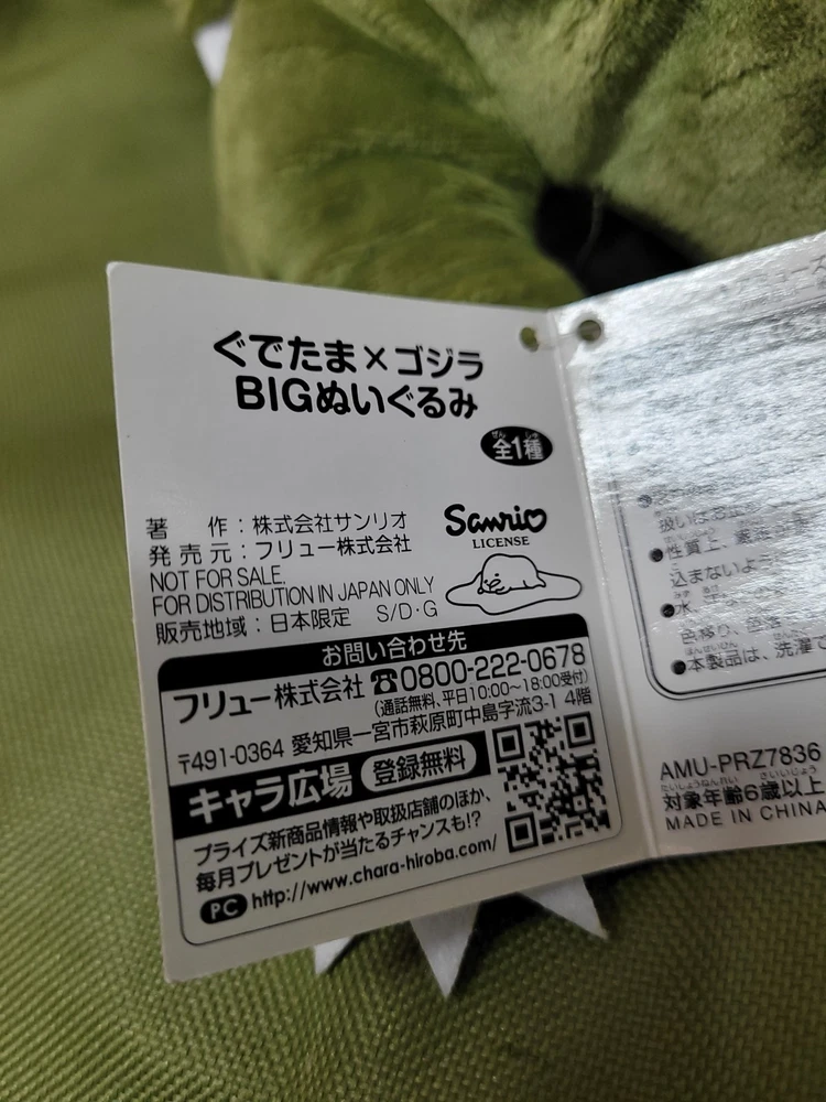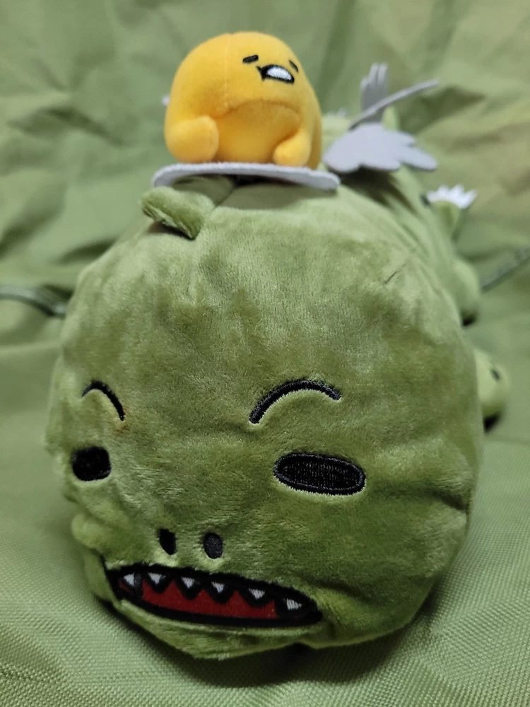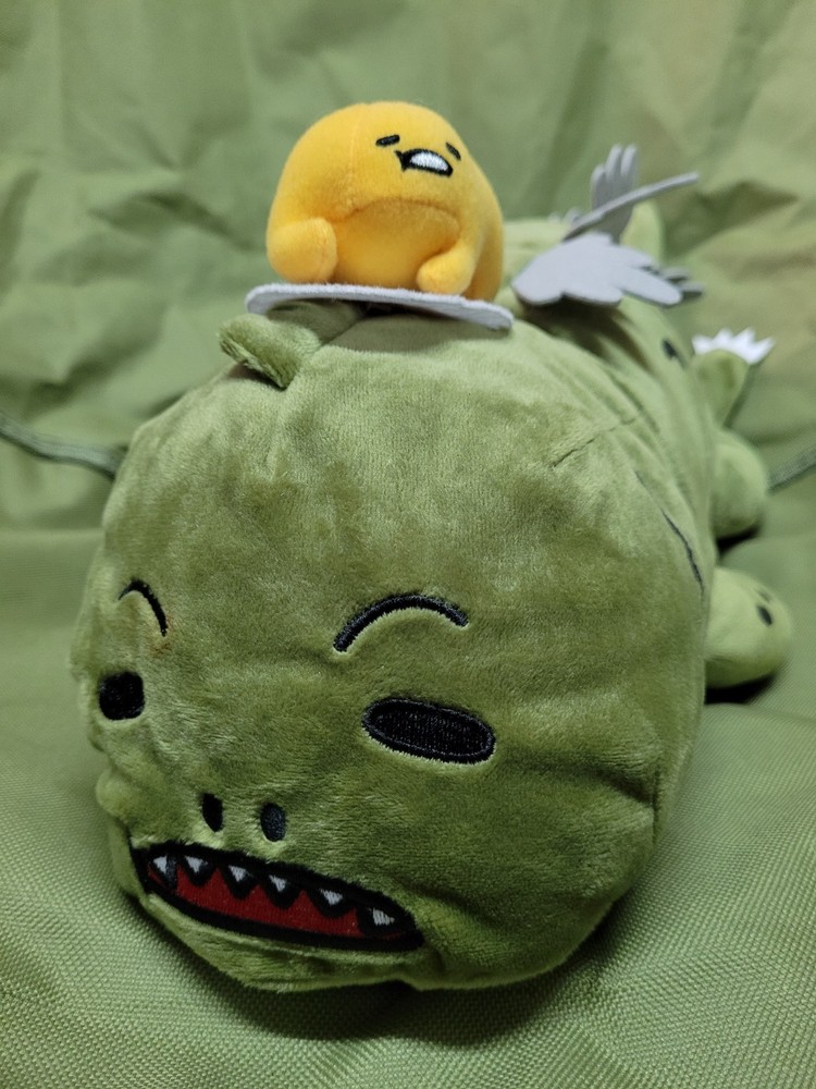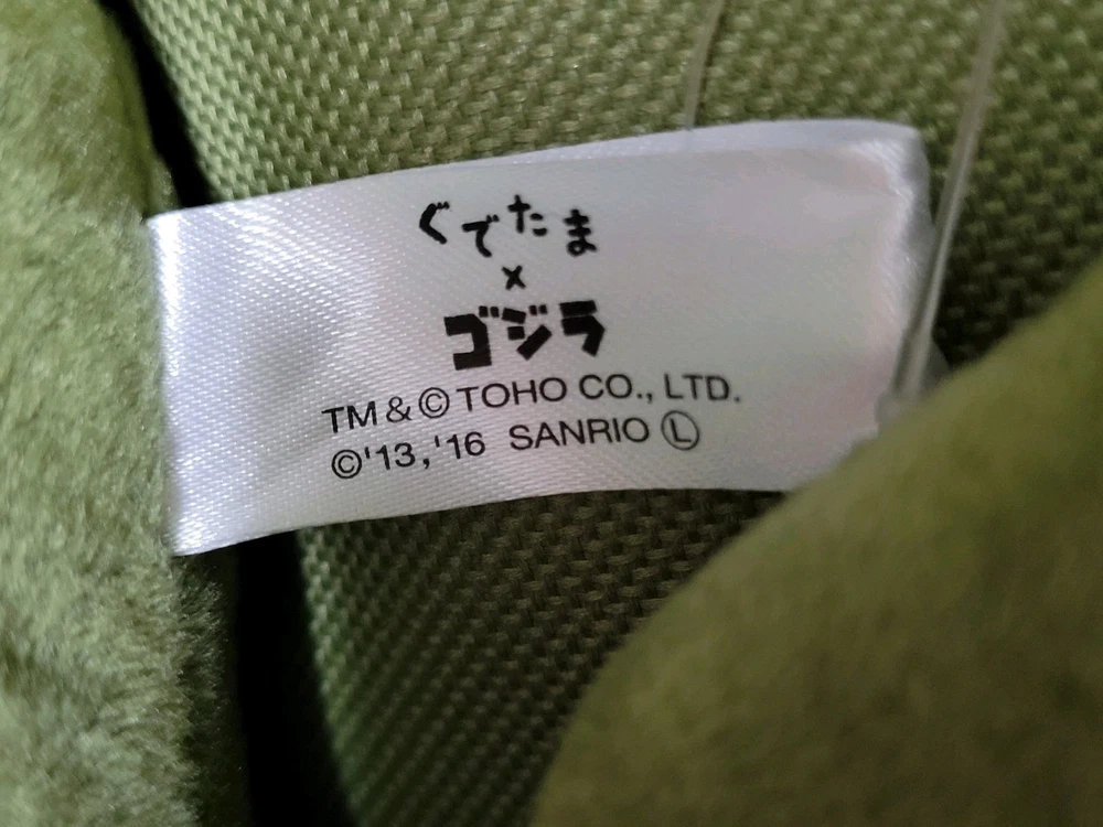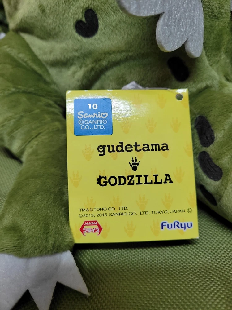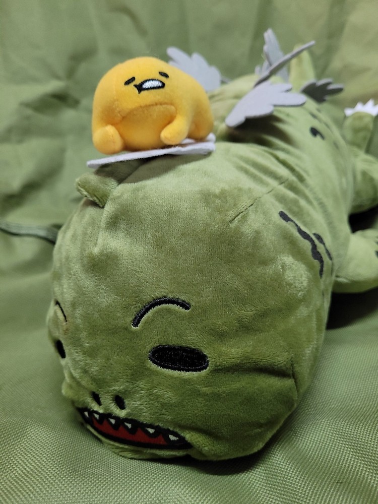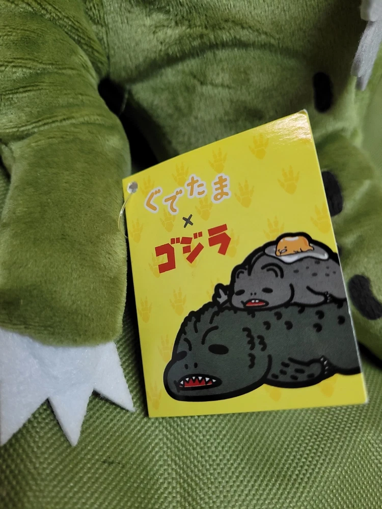 Upon this listing is 💥 Free Shipping 💥 GUDETAMA X GODZILLA The Lazy Egg x The Great Kaiju Stuffed Plush Toy Jumbo Size : 19 inch. (48 cm.) long Genuine TOHO / SANRIO Product Described as New Attached with paper hang-tag Excellent Condition Well Kept and Well Cared ********** Don’t miss this! Thank you for looking!