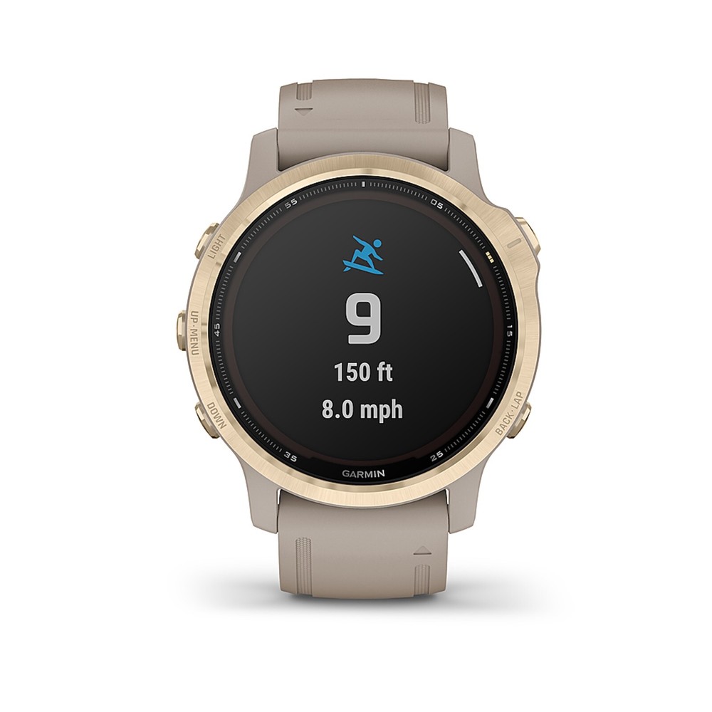 Garmin Fēnix 7S Sapphire Solar GPS Smartwatch 42 mm Fiber-reinforced polymer Cream Gold There are 7 days in a week. And the fēnix 7S Sapphire Solar multisport GPS watch is built to go strong for all of them. It’s styled for smaller-sized wrists and has a scratch-resistant Power Sapphire solar charging lens for the battery life to sustain your athletic and outdoor challenges. Use trusted button controls or the new touchscreen interface to access selections. Gain performance insights and metrics that help you manage your exertion and build stamina. Optimize recovery with 24/7 health and wellness monitoring of heart rate, respiration, stress, sleep and more (this device is intended to give an estimation of your activity and metrics; it is not a medical device). Outdoor navigation sensors and new multi-band GNSS technology help guide you with a higher level of positioning accuracy, even in challenging environments. Plus, you’ll have preloaded TopoActive maps and worldwide ski and golf maps right on your wrist. To complement your tamer days, connected features include smart notifications when connected to a compatible smartphone, music storage and Garmin Pay contactless payments in supported countries and payment networks Features Performance by design Long-running solar powered, smaller-sized multisport GPS watch with scratch-resistant Power Sapphire lens and always-on 1.2” display uses the sun’s energy to extend battery life Battery Up to 11 days of battery life while indoors or up to 14 days when solar charging (assuming all-day wear with 3 hours per day outside in 50,000 lux condition) in smartwatch mode; in GPS mode, up to 37 hours indoors or up to 46 hours when solar charging (assuming use in 50,000 lux conditions) Touchscreen and buttons Trusted button controls that work in any environment are matched with a highly responsive touchscreen interface for quick, convenient access to selections Perfromance metrics Take your training to the next level with endurance and real-time stamina tracking, training status, advanced performance metrics and 30+ built-in sports apps Multi-bane GNSS support and ABC sensors Navigate the outdoors with built-in sensors for the 3-axis compass, gyroscope and barometric altimeter; supports multi-GNSS satellite systems (GPS, GLONASS and Galileo) Mulicontinent topo maps Find freedom and adventure with preloaded TopoActive maps — plus maps for thousands of golf courses and ski resorts worldwide. Built-in Wi-Fi connectivity lets you download maps for any continent at any time — without using a computer Smart notifications Enjoy everyday style with access to smart notifications when connected to a compatible smartphone, music storage and our Garmin Pay contactless payment solution in supported countries and payment networks Health montioring activity Get 24/7 health and wellness monitoring with wrist-based heart rate, Pulse Ox (not available in all countries), stress and enhanced sleep tracking (this device is intended to give an estimation of your activity and metrics; it is not a medical device). Screen Size 30 millimeters Touch Screen Yes Operating System Compatibility Android, Apple iOS Operating System Garmin App Compatible Yes Global Positioning GPS, GLONASS, Galileo Metrics Measured Activity vs. inactivity, Altitude changes, Blood oxygen, Breathing patterns, Cadence, Calories burned, Cycling speed, Distance swam, Distance traveled, Duration of exercise, Heart rate, Hours slept, Laps swam, Pace, Sleep quality, Speed, Stairs climbed, Steps taken, Temperature Water Resistant Yes Maximum Depth of Water Resistance 328 feet Band Material Silicone Series fenix 7S General Product Name fēnix 7S Sapphire Solar GPS Smartwatch 42 mm Fiber-reinforced polymer Brand Garmin Product Type Smartwatch Form Factor Wristwatch Model Family Garmin fenix 7S Model Number 010-02539-20 Series fenix 7S Color Cream Gold Color Category Multi Design Case Size 42mm Case Shape Circular Band Color Light Sand Display Display Screen Yes Screen Size 30 millimeters Touch Screen Yes Screen Resolution 240 x 240 Display Type MIP LCD Color Display Yes Clock Display Yes Backlit Display Yes Adjustable Brightness Yes Customizable Watch Faces Yes Screen Material Corning Gorilla Glass DX Compatibility Operating System Compatibility Android, Apple iOS Operating System Garmin App Compatible Yes Connectivity Data Plan Required No Bluetooth Enabled Yes NFC Technology Yes Wi-Fi Compatibility Wireless N Features Global Positioning GPS, GLONASS, Galileo Mobile Notifications Yes Alert Type Audible, Vibration, Visual Mobile Payment Service Supported Garmin Pay Music Player Yes Vibration Alert Yes Activity Metrics Measured Activity vs. inactivity, Altitude changes, Blood oxygen, Breathing patterns, Cadence, Calories burned, Cycling speed, Distance swam, Distance traveled, Duration of exercise, Heart rate, Hours slept, Laps swam, Pace, Sleep quality, Speed, Stairs climbed, Steps taken, Temperature Multi-Sport Tracking Yes Sensors Accelerometer, Altimeter, Barometer, Compass, Gyro sensor, Heart rate sensor, Pulse oximeter (Sp02) sensor, Temperature sensor Medical Incident Notification Contact text, Email Medical Incidents Detected Fall Performance Water Resistant Yes Maximum Depth of Water Resistance 328 feet Power Rechargeable Yes Battery Strength Indicator Yes Charging Interface(s) USB, Solar Material Band Material Silicone Case Material Polymer Dimension Maximum Wrist Size 7.1 inches Band Size Adjustable Product Height 1.85 inches Product Width 1.65 inches Product Depth 0.55 inches Product Weight 2.04 ounces