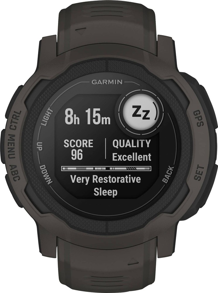 Expert Service. Unbeatable Price. About Us Contact Us Payment Shipping Store Pick Up Returns Best Buy Logo Welcome to the Best Buy eBay Store Garmin - Instinct 2 45 mm Smartwatch Fiber-reinforced Polymer - Graphite - (2022) Whatever you do, own it with Instinct 2. This rugged GPS smartwatch is tough enough to keep up with you and unique enough to fit your style. Do more of what you love with preloaded activity profiles for running, biking, swimming and more. Live the ultimate connected life with smart notifications and Connect IQ compatibility when paired with your compatible smartphone. Understand your body better with all-day health monitoring for energy levels, stress, sleep, Pulse Ox and much more (Pulse Ox not available in all countries. This device is intended to give an estimation of your activity and metrics; it is not a medical device). Included Items Instinct 2 charging/data cable documentation Features Engineered for endurance Rugged GPS smartwatch is water-rated to 100 meters and thermal- and shock resistant with fiber-reinforced polymer case and scratch-resistant Corning Gorilla glass; designed to fit a smaller wrist Built-in sports apps Built-in sports apps to take on running, biking, swimming, strength training and more; plus, VO2 Max and other training features Smart notifications Live the ultimate connected life with smart notifications and Connect IQ compatibility when paired with your compatible smartphone. Multi-GNSS support Track your adventures with the built-in 3-axis compass and barometric altimeter, plus multiple global navigation satellite systems (GPS, GLONASS and Galileo) Health monitoring Understand your body better with all-day health monitoring features that track your heart rate, sleep, Pulse Ox, respiration and more (Pulse Ox not available in all countries. This device is intended to give an estimation of your activity and metrics; it is not a medical device) Battery Performance Battery life: up to 21 days in smartwatch mode; up to 22 hours in GPS mode Specifications Brand: Garmin Model Number: 010-02626-10 Product Name: Instinct 2 45 mm Smartwatch Fiber-reinforced Polymer Color: Graphite Case Size: 45mm Case Shape: Circular Band Color: Graphite Clasp Type: Buckle Rotating Bezel: false Display Screen: true Screen Size: 33 millimeters Touch Screen: false Display Type: MIP LCD, Digital Color Display: false Clock Display: true Backlit Display: true Adjustable Brightness: true Customizable Watch Faces: true Screen Material: Chemically strengthened glass Operating System Compatibility: Android, Apple iOS Operating System: Garmin App Compatible: true Voice Assistant Built-in: Not Applicable Data Plan Required: false Wireless Connectivity: Bluetooth Built-in Storage: 1 gigabytes GPS Enabled: true Global Positioning: GPS, GLONASS, Galileo Mobile Notifications: true Alert Type: Audible, Vibration, Visual Music Player: false Silent Alarm: true Built-In Microphone: false Voice Activated: false Metrics Measured: Activity vs. inactivity, Altitude changes, Blood oxygen, Respiration rate, Cadence, Calories burned, Cycling speed, Distance swam, Distance traveled, Duration of exercise, Resting heart rate, Hours slept, Laps swam, Pace, Duration of sleep stages, Route, Running/Walking speed, Stairs climbed, Steps taken, Skin temperature Multi-Sport Tracking: true Sensors: Accelerometer, Altimeter, Barometer, Compass, Temperature sensor, Optical heart rate (PPG) sensor Medical Incident Notification: Contact call, Contact text Medical Incidents Detected: Fall Protective Qualities: Water resistant, Shock resistant Maximum Depth of Water Resistance: 328 feet Maximum Height of Shock Resistance: 4 feet Minimum Operating Temperature: -4.0 degrees fahrenheit Maximum Operating Temperature: 140 degrees fahrenheit Product Height: 1.77 inches Product Width: 1.77 inches Product Weight: 1.83 ounces Product Length: 0.57 inches Minimum Wrist Size: 135 millimeters Maximum Wrist Size: 228.6 millimeters Size: Adjustable Band Size: Adjustable Rechargeable: true Battery Strength Indicator: true Charging Time: 120 minutes Charging Interface(s): Other Battery Chemistry: Lithium-ion Band Material: Silicone Case Material: Fiber-Reinforced Polymer Case Back Material: Fiber-Reinforced Polymer Integrated Camera: No Product Type: Smartwatch, Activity tracker Form Factor: Wristwatch Model Family: Garmin Instinct 2 Warranty - Parts: 1-year limited consumer Warranty - Labor: 1-year limited consumer Year of Release: 2022 Series: Instinct 2 ⚠ WARNING : WARNING: Cancer and Reproductive Harm - www.p65warnings.ca.gov - www.P65Warnings.ca.gov About Us Contact Us Payment Shipping Store Pick Up Returns FAQ Best Buy Logo Prices and offers are subject to change. Copyright 2017 Best Buy. All rights reserved. BEST BUY, the BEST BUY logo, the Tag Design, MY BEST BUY, and BESTBUY.COM are trademarks of Best Buy and its affiliated companies.