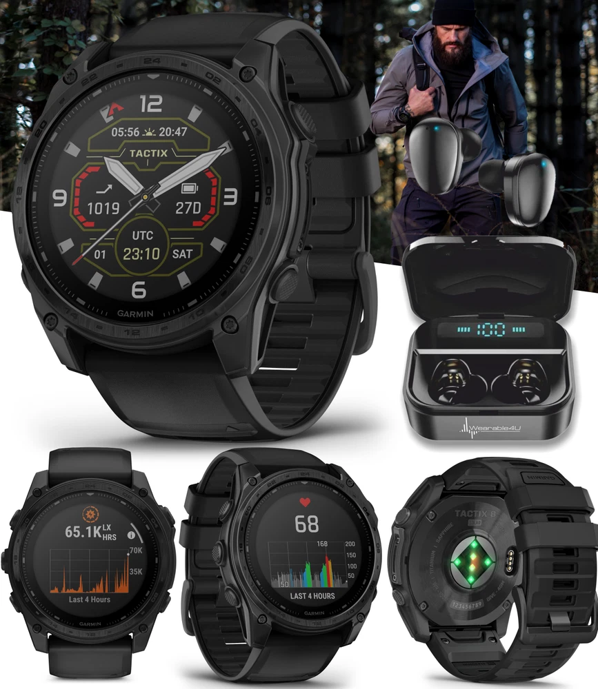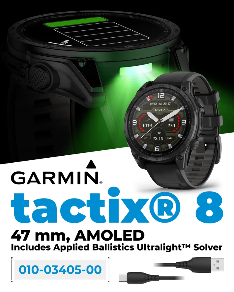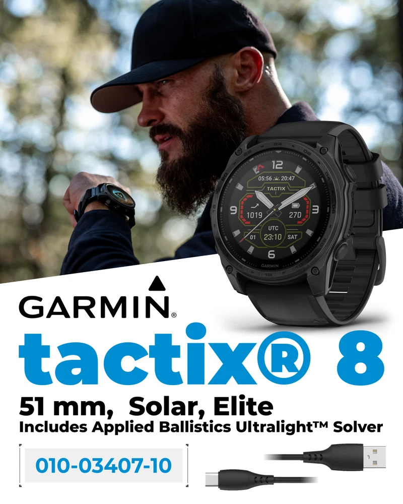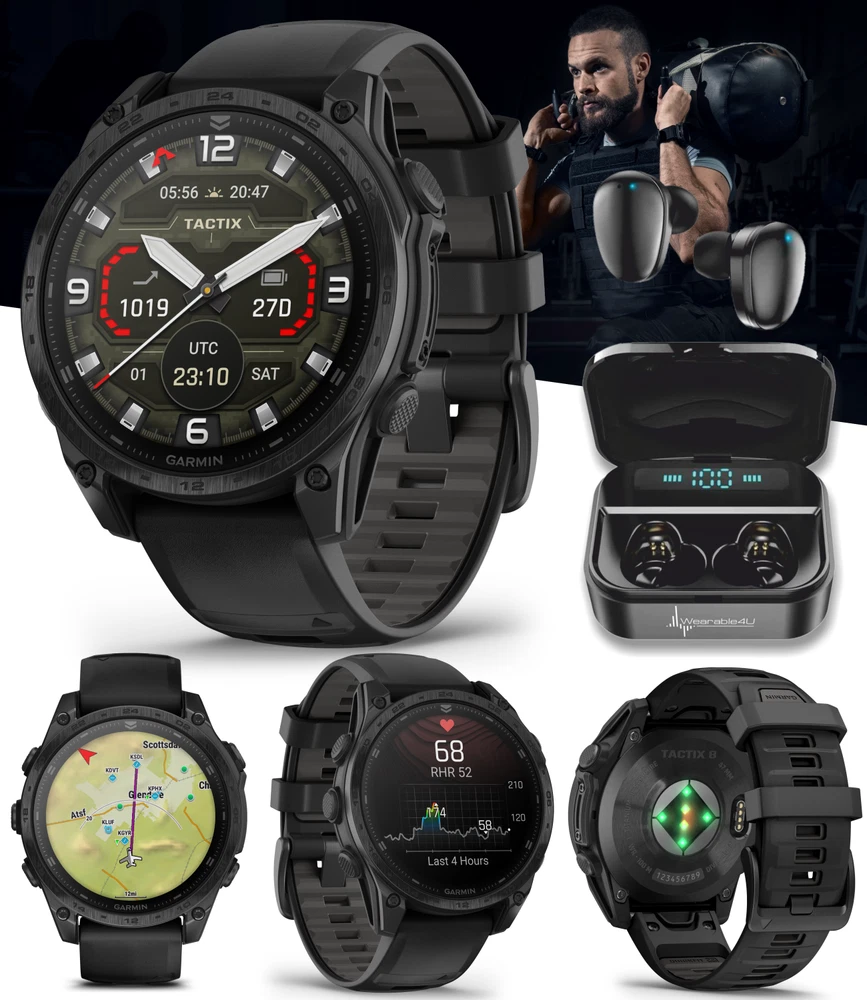 About us Contact Us Feedback Listings Shop Garmin Tactix 8 - 47mm/51mm, AMOLED/Solar Charged Display, Titanium Bezel, Sapphire Lens, Premium Tactical GPS Smartwatch, Includes Applied Ballistics Ultralight (Elite) Solver, 40 M Dive Rating < Description Contact Us Buy with Confidence Rise above with the tactix 8, the ultimate tactical smartwatch designed for elite performance. Featuring a rugged yet sophisticated design with a titanium bezel, sapphire lens, and a 40-meter dive rating, it’s built to withstand the toughest conditions. Choose between a stunning AMOLED display or a solar-charged display for extended battery life—up to 48 days in smartwatch mode with optimal solar exposure. Stay connected with on-wrist calling via the built-in speaker and mic, and take advantage of dedicated tactical features such as a rucking activity, jumpmaster mode, waypoint projection, stealth mode, kill switch, and an advanced Applied Ballistics solver (Elite version available). Guide your mission with a built-in LED flashlight, ensuring visibility in any environment. Enhance your training with strength training plans, sport-specific workouts, and daily suggested strength workouts for runners and cyclists. Navigate with confidence using superior multi-band GPS with SatIQ technology and built-in sensors, including a 3-axis compass, gyroscope, and barometric altimeter. Push your limits with the tactix 8—engineered for those who demand the best in tactical performance and endurance . Key Features: Premium Design & Display: 1.4” display options – choose between a bright AMOLED display or a solar-charged display for extended battery life, with a durable titanium bezel and scratch-resistant sapphire lens. Built-in LED flashlight for enhanced visibility in low-light conditions. Advanced Tactical Functions: Includes jumpmaster activity, waypoint projection, dual-position GPS format, stealth mode, kill switch, night vision goggle compatibility, rucking activity, and a preloaded Applied Ballistics solver for precise targeting. Superior Navigation & Outdoor Capabilities: Multi-band GPS with SatIQ technology ensures superior positioning accuracy, supported by built-in sensors including a 3-axis compass, gyroscope, and barometric altimeter. Preloaded TopoActive maps with relief shading, worldwide downloadable maps, and maps for golf courses and ski resorts. Aviation Navigation System: Fully functional aviation navigation with a dynamic moving map, GPS navigation, NEXRAD weather display, airport information, and more. Comprehensive Health & Fitness Tracking: 24/7 health monitoring, including wrist-based heart rate, advanced sleep tracking, Pulse Ox, respiration tracking, and an ECG app to record heart rhythms (availability varies by region). Advanced strength training plans, real-time stamina tracking, sport-specific workouts, and a full range of built-in sports apps. Exceptional Durability & Dive Rating: Water-resistant up to 40 meters, supporting scuba and apnea dive activities, ensuring reliable performance in extreme environments. Smart Connectivity & AB Quantum Integration: Compatible with the AB Quantum mobile app for managing ballistic profiles and targets, with the ability to use your smartphone as an additional display. Built-in speaker and mic for on-wrist calling. Extended Battery Life. AMOLED version: Up to 29 days in smartwatch mode, 84 hours in GPS mode. Solar version: Up to 48 days in smartwatch mode (with solar charging) and 149 hours in GPS mode (with solar charging). Garmin Tactix 8 Series Premium Tactical GPS Smartwatch Specifications: Display type: AMOLED / Solar Charged Display Size: 1.4” (35.56 mm) diameter Display resolution: 454 x 454 pixels (AMOLED version) / 280 x 280 pixels (Solar version) Strap material: silicone Lens Material: sapphire crystal (AMOLED version) / power sapphire (Solar version) Bezel Material: titanium Case material: fiber-reinforced polymer with titanium rear cover QuickFit watch band compatible: included (26 mm) Touchscreen: Yes Water rating: 10 ATM Dive activity maximum operating depth: 40 meters Built-in mapping: Yes LED flashlight: Yes Garmin Pay: Yes Multi-band GPS: Yes Leakproof inductive buttons: Yes Built-in speaker/microphone: Yes Memory/History: 32 GB Connectivity: BLUETOOTH, ANT+, Wi-Fi IN THE BOX: 1x Tactix 8 Smartwatch – 47 mm or 51 mm, AMOLED or Solar Charged Display with silicone watch band; Preloaded with Applied Ballistics Ultralight (Elite version available) solver; Charging/data cable; Documentation Also In The Box (Choose Your Bundle Option): Wearable4U Power Bank Keep your devices charged at all times with our Wearable4U Power Bank. Compatible with all popular USB-powered devices including most smartphones, GPS and fitness trackers, smart watches, wireless speakers, bluetooth headphones, and more. Enjoy! W earable4U Ultimate EarBuds + Power Pack Bundle: Wearable4U 2in1 Earbuds Pro + Power Bank 1500 mAh Working Time: Call / Music 4h Standby time: 300h Waterproof level: earphone ipx6 Operation mode: touch Enjoy! Garmin Tactix 8 | The Ultimate Tactical Smartwatch Please use eBay's internal messaging system to get a hold of us. Please remember to leave positive feedback if you are satisfied with the order. If you are not satisfied please contact us and we will do our best to solve the problem or refund your order. Contact Us FREE SHIPPING We aim to ship orders placed before 3pm Monday to Friday the same day, orders placed after this time will be posted next working day. Orders placed on weekends and bank holidays will be posted the next working day. All items are sent via USPS, FedEx or UPS post. Postage is combined for multiple purchases. Please request an invoice for reduced postage. First class and priority mail post should arrive in 2 day, but this is not guaranteed. Proof of postage is always obtained. However, an item is only considered "lost" after 15 working days, please contact us if your item does not arrive. If the wrong contact deta