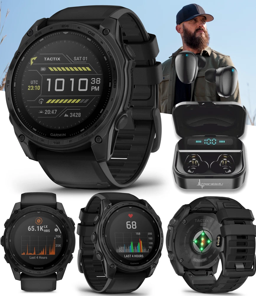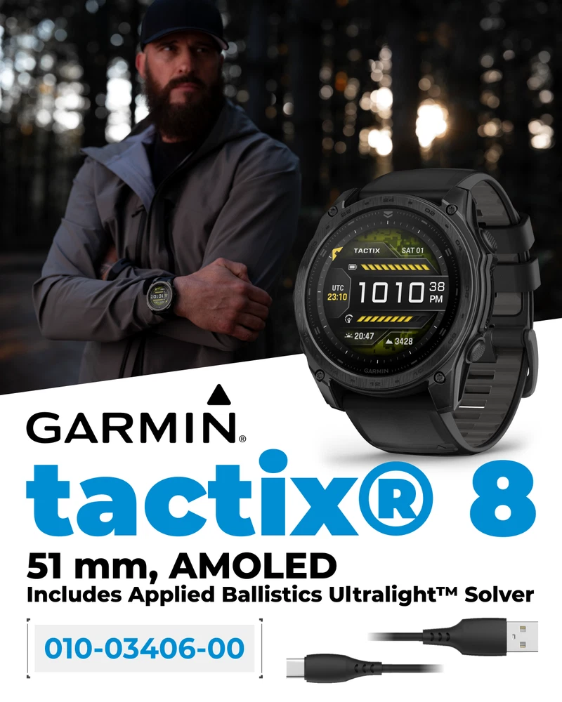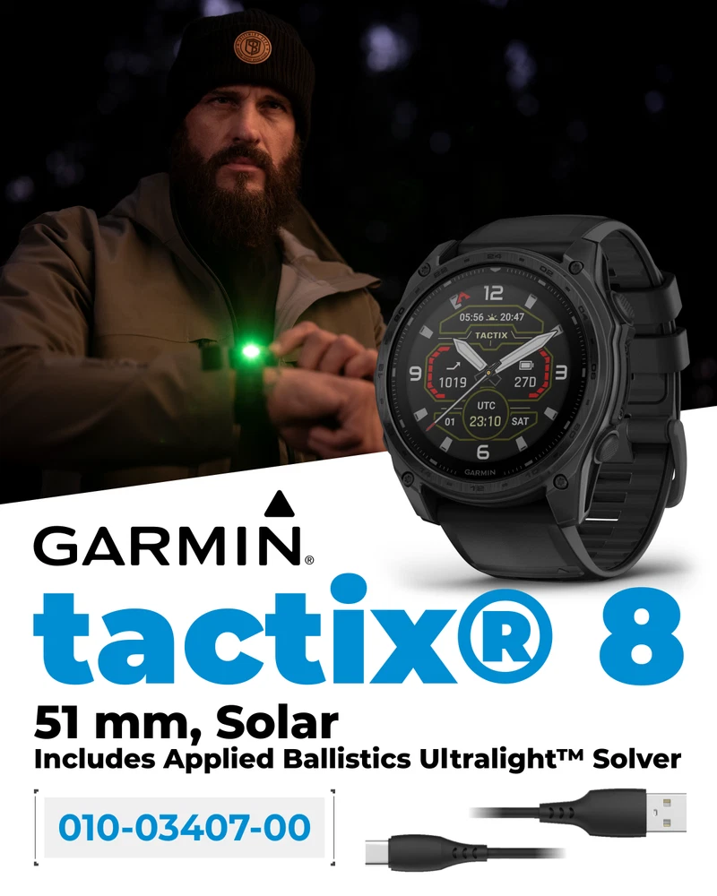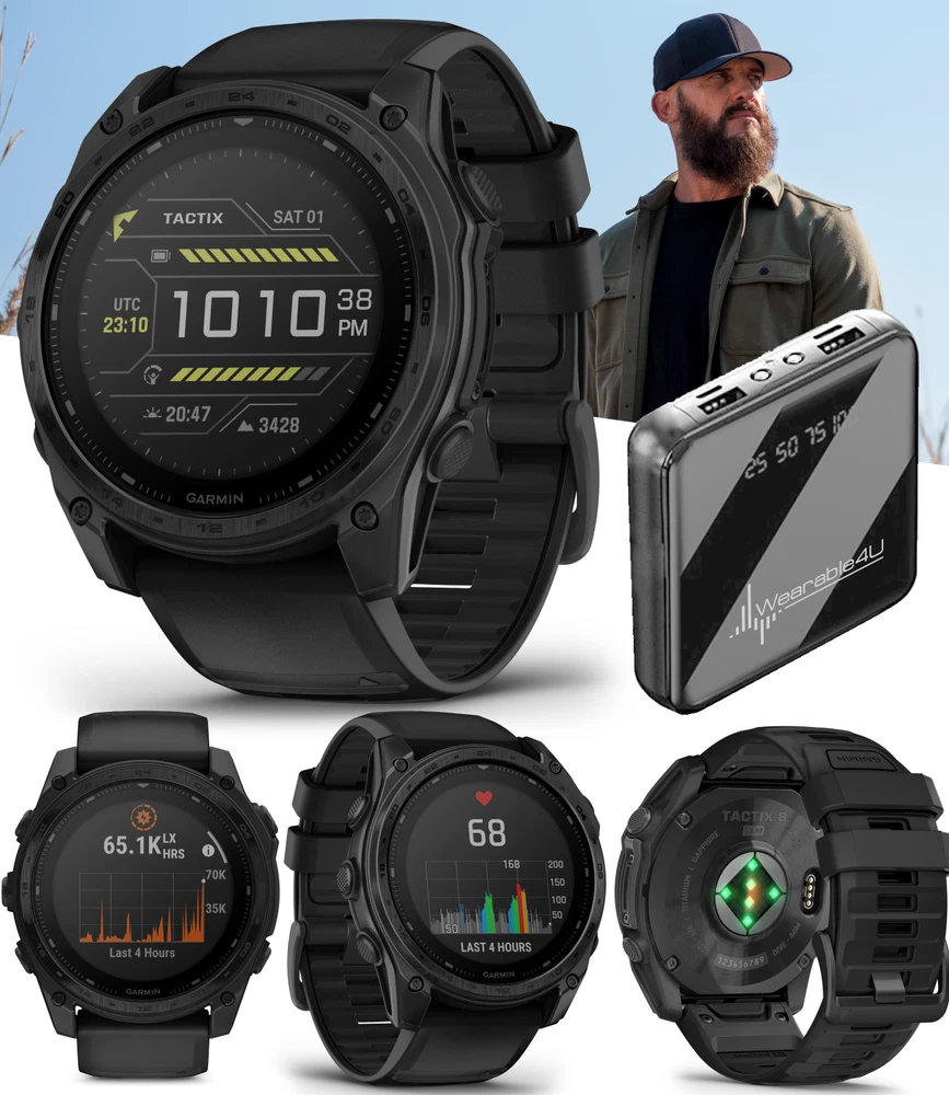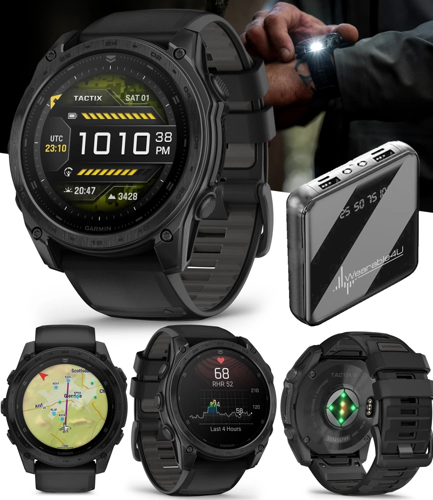 About us Contact Us Feedback Listings Shop Garmin Tactix 8 - 47mm/51mm, AMOLED/Solar Charged Display, Titanium Bezel, Sapphire Lens, Premium Tactical GPS Smartwatch, Includes Applied Ballistics Ultralight (Elite) Solver, 40 M Dive Rating < Description Contact Us Buy with Confidence Rise above with the tactix 8, the ultimate tactical smartwatch designed for elite performance. Featuring a rugged yet sophisticated design with a titanium bezel, sapphire lens, and a 40-meter dive rating, it’s built to withstand the toughest conditions. Choose between a stunning AMOLED display or a solar-charged display for extended battery life—up to 48 days in smartwatch mode with optimal solar exposure. Stay connected with on-wrist calling via the built-in speaker and mic, and take advantage of dedicated tactical features such as a rucking activity, jumpmaster mode, waypoint projection, stealth mode, kill switch, and an advanced Applied Ballistics solver (Elite version available). Guide your mission with a built-in LED flashlight, ensuring visibility in any environment. Enhance your training with strength training plans, sport-specific workouts, and daily suggested strength workouts for runners and cyclists. Navigate with confidence using superior multi-band GPS with SatIQ technology and built-in sensors, including a 3-axis compass, gyroscope, and barometric altimeter. Push your limits with the tactix 8—engineered for those who demand the best in tactical performance and endurance . Key Features: Premium Design & Display: 1.4” display options – choose between a bright AMOLED display or a solar-charged display for extended battery life, with a durable titanium bezel and scratch-resistant sapphire lens. Built-in LED flashlight for enhanced visibility in low-light conditions. Advanced Tactical Functions: Includes jumpmaster activity, waypoint projection, dual-position GPS format, stealth mode, kill switch, night vision goggle compatibility, rucking activity, and a preloaded Applied Ballistics solver for precise targeting. Superior Navigation & Outdoor Capabilities: Multi-band GPS with SatIQ technology ensures superior positioning accuracy, supported by built-in sensors including a 3-axis compass, gyroscope, and barometric altimeter. Preloaded TopoActive maps with relief shading, worldwide downloadable maps, and maps for golf courses and ski resorts. Aviation Navigation System: Fully functional aviation navigation with a dynamic moving map, GPS navigation, NEXRAD weather display, airport information, and more. Comprehensive Health & Fitness Tracking: 24/7 health monitoring, including wrist-based heart rate, advanced sleep tracking, Pulse Ox, respiration tracking, and an ECG app to record heart rhythms (availability varies by region). Advanced strength training plans, real-time stamina tracking, sport-specific workouts, and a full range of built-in sports apps. Exceptional Durability & Dive Rating: Water-resistant up to 40 meters, supporting scuba and apnea dive activities, ensuring reliable performance in extreme environments. Smart Connectivity & AB Quantum Integration: Compatible with the AB Quantum mobile app for managing ballistic profiles and targets, with the ability to use your smartphone as an additional display. Built-in speaker and mic for on-wrist calling. Extended Battery Life. AMOLED version: Up to 29 days in smartwatch mode, 84 hours in GPS mode. Solar version: Up to 48 days in smartwatch mode (with solar charging) and 149 hours in GPS mode (with solar charging). Garmin Tactix 8 Series Premium Tactical GPS Smartwatch Specifications: Display type: AMOLED / Solar Charged Display Size: 1.4” (35.56 mm) diameter Display resolution: 454 x 454 pixels (AMOLED version) / 280 x 280 pixels (Solar version) Strap material: silicone Lens Material: sapphire crystal (AMOLED version) / power sapphire (Solar version) Bezel Material: titanium Case material: fiber-reinforced polymer with titanium rear cover QuickFit watch band compatible: included (26 mm) Touchscreen: Yes Water rating: 10 ATM Dive activity maximum operating depth: 40 meters Built-in mapping: Yes LED flashlight: Yes Garmin Pay: Yes Multi-band GPS: Yes Leakproof inductive buttons: Yes Built-in speaker/microphone: Yes Memory/History: 32 GB Connectivity: BLUETOOTH, ANT+, Wi-Fi IN THE BOX: 1x Tactix 8 Smartwatch – 47 mm or 51 mm, AMOLED or Solar Charged Display with silicone watch band; Preloaded with Applied Ballistics Ultralight (Elite version available) solver; Charging/data cable; Documentation Also In The Box (Choose Your Bundle Option): Wearable4U Power Bank Keep your devices charged at all times with our Wearable4U Power Bank. Compatible with all popular USB-powered devices including most smartphones, GPS and fitness trackers, smart watches, wireless speakers, bluetooth headphones, and more. Enjoy! W earable4U Ultimate EarBuds + Power Pack Bundle: Wearable4U 2in1 Earbuds Pro + Power Bank 1500 mAh Working Time: Call / Music 4h Standby time: 300h Waterproof level: earphone ipx6 Operation mode: touch Enjoy! Garmin Tactix 8 | The Ultimate Tactical Smartwatch Please use eBay's internal messaging system to get a hold of us. Please remember to leave positive feedback if you are satisfied with the order. If you are not satisfied please contact us and we will do our best to solve the problem or refund your order. Contact Us FREE SHIPPING We aim to ship orders placed before 3pm Monday to Friday the same day, orders placed after this time will be posted next working day. Orders placed on weekends and bank holidays will be posted the next working day. All items are sent via USPS, FedEx or UPS post. Postage is combined for multiple purchases. Please request an invoice for reduced postage. First class and priority mail post should arrive in 2 day, but this is not guaranteed. Proof of postage is always obtained. However, an item is only considered "lost" after 15 working days, please contact us if your item does not arrive. If the wrong contact deta