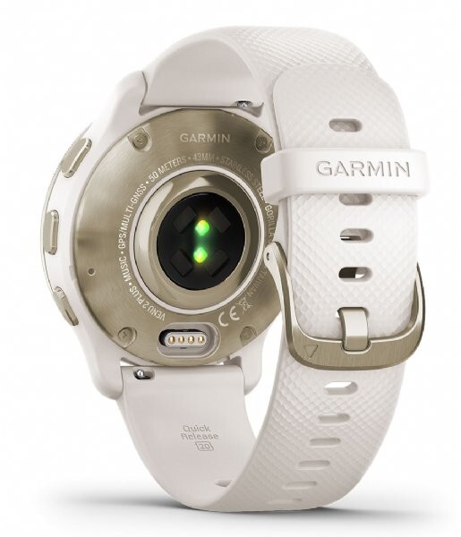 Garmin Venu 2 Plus Ivory Slate Stainless Steel Bezel Smart GPS Sports Watch Dial into your well-being Understand your body better with advanced health and fitness features. And enjoy the convenience of making calls from your wrist when paired with your compatible smartphone. Tired of juggling devices? Make calls from your wrist when connected to your compatible smartphone. Create or respond to text messages hands-free, courtesy of your paired smartphone’s voice assistant. Store music on the watch so you can leave your phone behind. Tap your wrist at the register to pay. Easy and touch-free. Health and wellness features give a better look at what’s going on inside your body. Find new ways to move your body with more than 25 preloaded sports apps. Want some coaching? Follow along with animated workouts right on your wrist. Store music on the watch for phone-free listening with your wireless headphones. Bright AMOLED display and up to 9 days of battery life? Yes, please! Accent your style A crystal-clear AMOLED display brings this watch to life, even under bright sunlight. Try always-on mode to keep the display visible at all times. Made for those on the move From durable Corning® Gorilla® Glass 3 to the sleek stainless steel bezel and comfortable silicone band, this smartwatch is ready for anything. Phone calls from your wrist No more missing calls while digging in your pockets or fumbling through your purse. When connected with your compatible smartphone, you can make and take phone calls right from the watch. Ask your voice assistant Hands full? No problem. Use your paired smartphone’s voice assistant (Siri, Google Assistant or Bixby) via Venu 2 Plus to compose and respond to text messages, ask questions and even control your compatible smart home devices. Health Snapshot™ feature Log a 2-minute session to record key stats, including heart rate, heart rate variability, Pulse Ox, respiration and stress. Then generate a report with those stats via the Garmin Connect™ app on your compatible smartphone to share. Body Battery™ energy monitoring See your body’s energy levels throughout the day so you can find the best times for activity and rest. Pulse Ox sensor Use the Pulse Ox sensor to spot check your blood oxygen saturation at any point during the day, or for part of the night as you sleep, to show how well your body is absorbing oxygen. Stress tracking Find out if you’re having a calm, balanced or stressful day. Relax reminders will even prompt you to do a short breathing activity when the watch detects that you’re feeling stressed. Women’s health tracking Use the Garmin Connect app to track your menstrual cycle or pregnancy. Log symptoms, get exercise and nutrition education and more. Even see and log details on your wrist with the Women’s Health Tracking app. Hydration tracking Log your daily fluid intake as a reminder to stay hydrated. You can even have an auto goal for hydration that adjusts based on how much you sweat during activities. Respiration tracking See how you’re breathing throughout the day, during sleep and during breathwork and yoga activities. Sleep score and advanced sleep monitoring Get a score for your sleep’s quality and insights on how you can do better. Even keep track of the different sleep stages as well as heart rate, stress, Pulse Ox3 and respiration. Wrist-based heart rate The watch constantly samples your heart rate2 and will alert you if it stays too high or too low while you’re at rest. It also helps gauge how hard you work during activities — even while swimming. Mindful breathing When you want to relax or focus, you can start a breathwork activity, and this watch will track your stress and respiration to help you get a better understanding of how you’re breathing. Fitness age This feature uses chronological age, your weekly vigorous activity, resting heart rate and BMI or body fat percentage to estimate if your body is younger or older than you are. And you can get tips to lower your fitness age. Animated, on-screen workouts Easy-to-follow, animated cardio, strength, yoga, Pilates and high-intensity interval training (HIIT) workouts come preloaded on the watch, and you can download more from the Garmin Connect app. Built-in sports apps Track all the ways you move with more than 25 preloaded GPS and indoor sports apps — including walking, running, cycling, pool swimming, golf and more. Advanced strength training This detailed activity profile puts scaling and strength PRs right at your wrist plus graphics that show what muscle groups you worked. HIIT workouts Use this new activity profile with different timers to track your HIIT workouts, including AMRAP, EMOM, Tabata and custom. Set the number of rounds, work/rest intervals and more. Create workouts Choose from more than 1,400 exercises to build your own workouts in the Garmin Connect app on your compatible smartphone. Then download them to the watch. Garmin Coach Get a personal running coach on your wrist, for free, to help you train for your next 5K, 10K or half-marathon. Intensity minutes We’ve updated our intensity minutes feature to give you a better idea of when during the day you earned them and during what activity. You can even view them as a data field during timed activities. Smart notifications Receive emails, texts and alerts right on your watch when paired with your compatible smartphone. You can even respond to texts if you have an Android™ phone. Music Download songs plus playlists from your Spotify, Deezer or Amazon Music accounts (subscription may be required). Use wireless headphones (sold separately) for phone-free listening. Safety and tracking features When your watch and phone are paired, your live location can be sent to your contacts manually or — during select outdoor activities — automatically with built-in incident detection. Garmin Pay™ Breeze through checkout lines and select transit systems with Garmin Pay contactless payment sol
