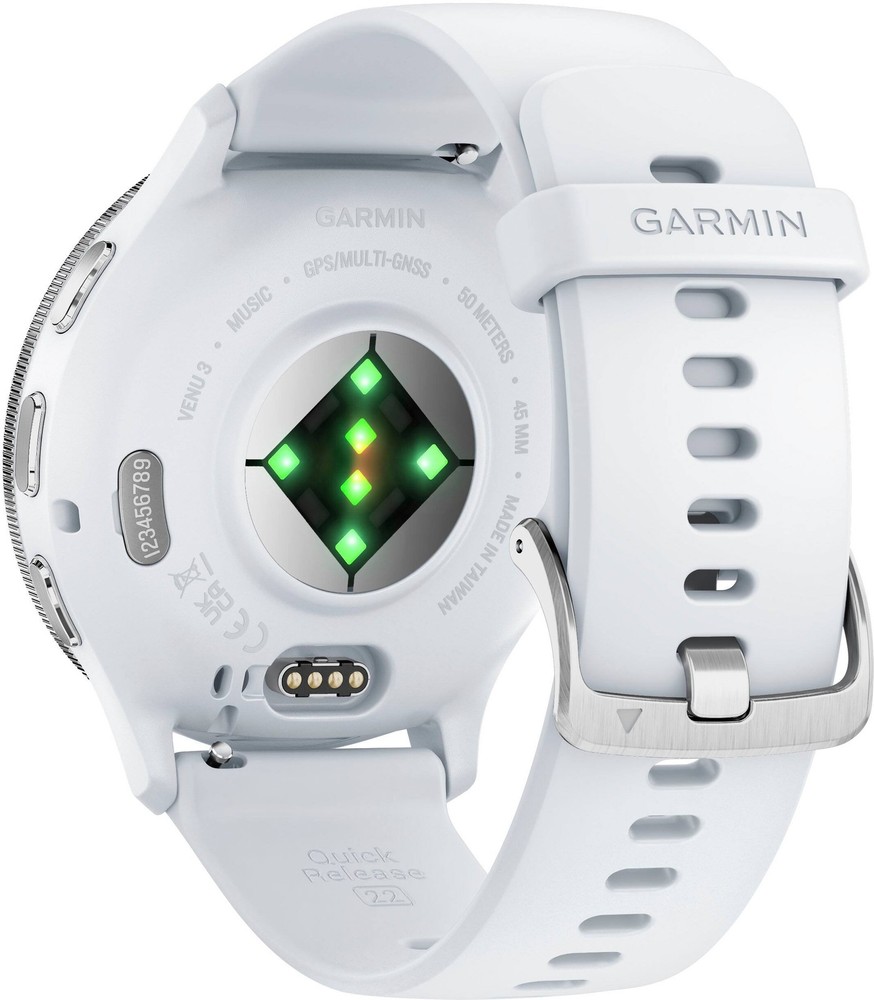 Expert Service. Unbeatable Price. About Us Contact Us Payment Shipping Store Pick Up Returns Best Buy Logo Welcome to the Best Buy eBay Store Garmin - Venu 3 GPS Smartwatch 45 mm Fiber-reinforced polymer - Stainless Steel and Whitestone - (2023) Know the real you with the Venu 3 smartwatch, the ultimate on-wrist coach designed to support your goals whatever they may be. Featuring a bright, colorful display and up to 14 days of battery life, this GPS smartwatch is purpose-built with advanced health and fitness features to help you better understand your body. BodyBattery energy monitoring helps you keep your energy levels in check with personalized insights based on sleep, naps, stress, workouts and more. Improve the quality of your sleep with personalized sleep coaching and nap detection plus even more details such as HRV status (data presented is intended to be a close estimation of metrics tracked). During the day, switch up your activities with animated workouts and more than 30 built-in sports apps including for active wheelchair users plus advanced training features to keep you going strong. With its built-in speaker and microphone, the Venu 3 smartwatch makes it easy to make and take calls right from your wrist when paired to your smartphone and even reply to texts by using your phones voice assistant. Plus, enjoy connectivity features such as music storage, GarminPay contactless payments (with a supported country and payment network) and more. Included Items Venu 3 Charging/Power Cable Manual Features Bright AMOLED Display And Long Battery Life Designed with a bright, colorful display, get a more complete picture of your health, thanks to battery life of up to 14 days in smartwatch mode Body Battery Energy Monitoring BodyBattery energy monitoring helps you understand when youre charged up or need to rest with even more personalized insights based on sleep, naps, stress levels, workouts and more Sleep Coach Get a sleep score and personalized sleep coaching for how much sleep you need and get tips on how to improve plus key metrics such as HRV status to better understand your health (data presented is intended to be a close estimation of metrics tracked) 30+ Sports Apps Find new ways to keep your body moving with more than 30 built-in indoor and GPS sports apps, including walking, running, cycling, HIIT, swimming, golf and more Built-In Speaker And Microphone Make and take phone calls from your wrist and use your smartphones voice assistant to respond to text messages and more (when paired with your compatible smartphone); plus, you can respond to texts via voice, or Android users can text directly from the smartwatch. Wheelchair Mode Wheelchair mode tracks pushesrather than stepsand includes push and handcycle activities with preloaded workouts, animated workouts for strength, cardio, HIIT, Pilates and yoga, challenges specific to wheelchair users (data is intended to be a close estimation of metrics tracked) Nap Tracking Automatic nap detection and nap logging track your nap length during the day, providing personalized insights on how it affects your BodyBattery energy monitoring and more (data presented is intended to be a close estimation of metrics tracked) Health And Wellness Know your body better with extensive health monitoring features, including wrist-based heart rate, morning report, fitness age, stress tracking, menstrual cycle and pregnancy tracking, meditation and more (data presented is intended to be a close estimation of metrics tracked) Workout Benefit And Recovery Time Take on any fitness journey with advanced training features such as workout benefit which helps you understand how each workout affects your body and recovery time to know how long your body needs to recover and more Animated Workout And Garmin Coach Use preloaded workouts with exercise animations that include cardio, yoga, strength, HIIT and Pilates; create your own in the GarminConnect smartphone app, or try GarminCoach free adaptive training plans to help you prepare for your next running challenge Music Download your favorite music to your watch, including playlists from Spotify, Amazon Music or Deezer (premium subscription required), and connect with your wireless headphones for phone-free listening Garmin Pay Contactless Payments Leave your cash and cards at home; GarminPay contactless payments (with a supported country and payment network) let you pay for purchases on the go and breeze through select transit systems Safety And Tracking Safety and tracking features include incident detection (during select outdoor activities) and Assistance, both can call or send a message with your location to emergency contacts when paired with your smartphone; requires phone setup and network coverage where data is available. Garmin Connect Sync the Venu 3 smartwatch with the GarminConnect smartphone app, and get more details on your health and fitness data plus personalized insights and more Specifications Brand: Garmin Model Number: 010-02784-00 Product Name: Venu 3 GPS Smartwatch 45 mm Fiber-reinforced polymer Color: Stainless Steel and Whitestone Case Size: 45mm Case Shape: Circular Band Color: Whitestone Clasp Type: Buckle Rotating Bezel: false Display Screen: true Screen Size: 35.5 millimeters Touch Screen: true Screen Resolution: 454 x 454 Display Type: AMOLED Color Display: true Clock Display: true Backlit Display: true Adjustable Brightness: true Customizable Watch Faces: true Screen Material: Corning Gorilla Glass 3 Operating System Compatibility: Android, Apple iOS Operating System: Garmin App Compatible: true Voice Assistant Built-in: Not Applicable Data Plan Required: false Wireless Connectivity: Bluetooth, Wi-Fi Wireless Standard: N Built-in Storage: 8 gigabytes GPS Enabled: true Global Positioning: GPS, GLONASS, Galileo Usage Time: 336 hours Mobile Notifications: true Alert Type: Audible, Vibration, Visual Mobile Payment Service Supported: Garmin Pay Music Player: true Silent Alarm: true Bui