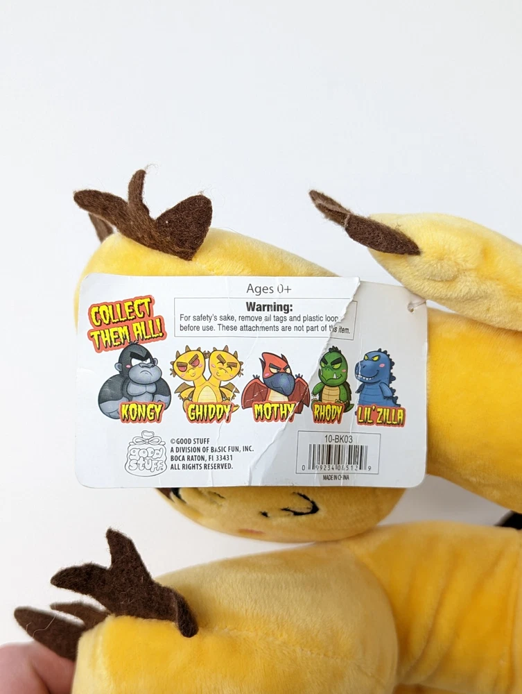 Ghiddy 2 Headed 13” Japanese Monster Mania Plush Yellow Dragon Stuffed Toy. Tag has some damage, but plush is in brand new condition.