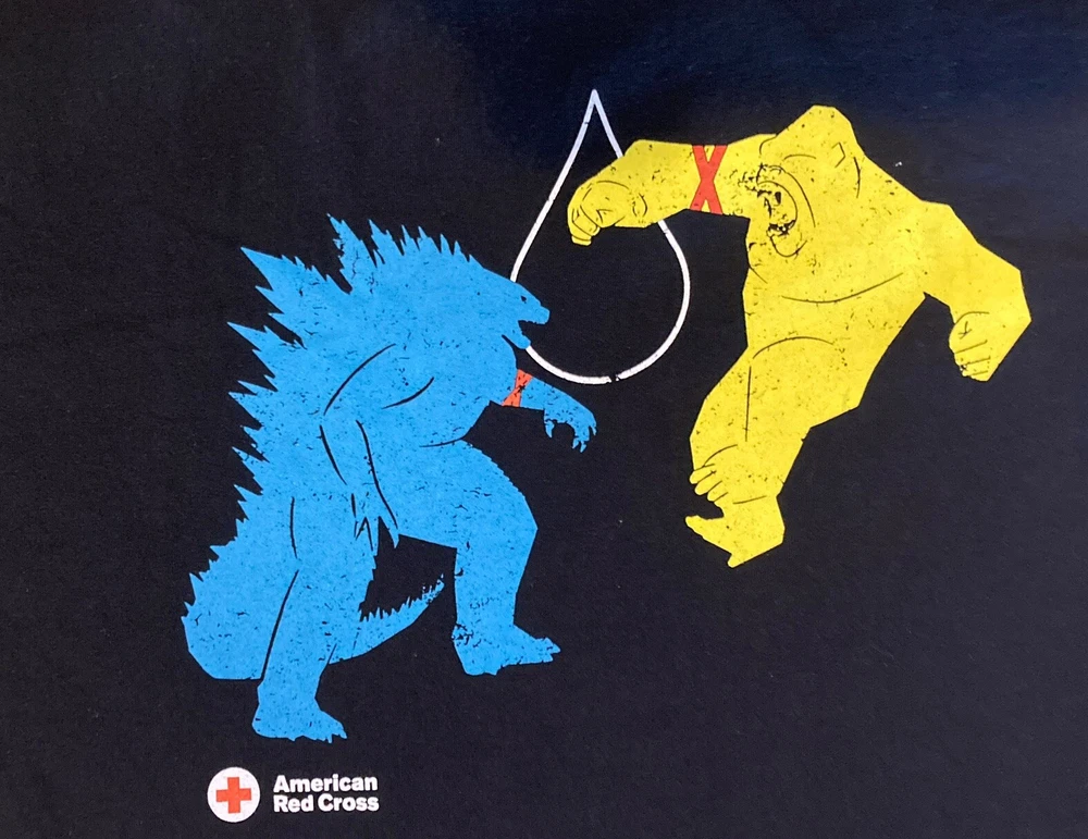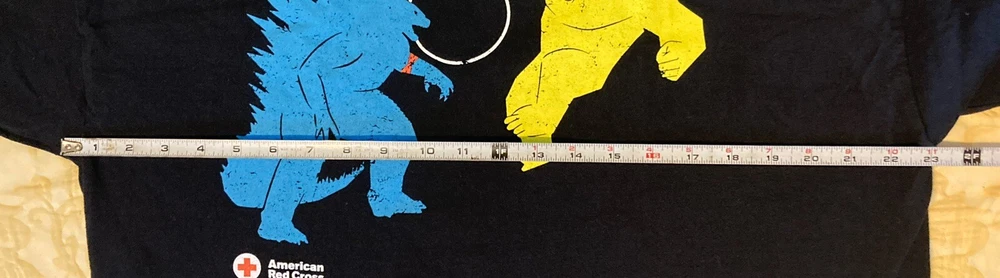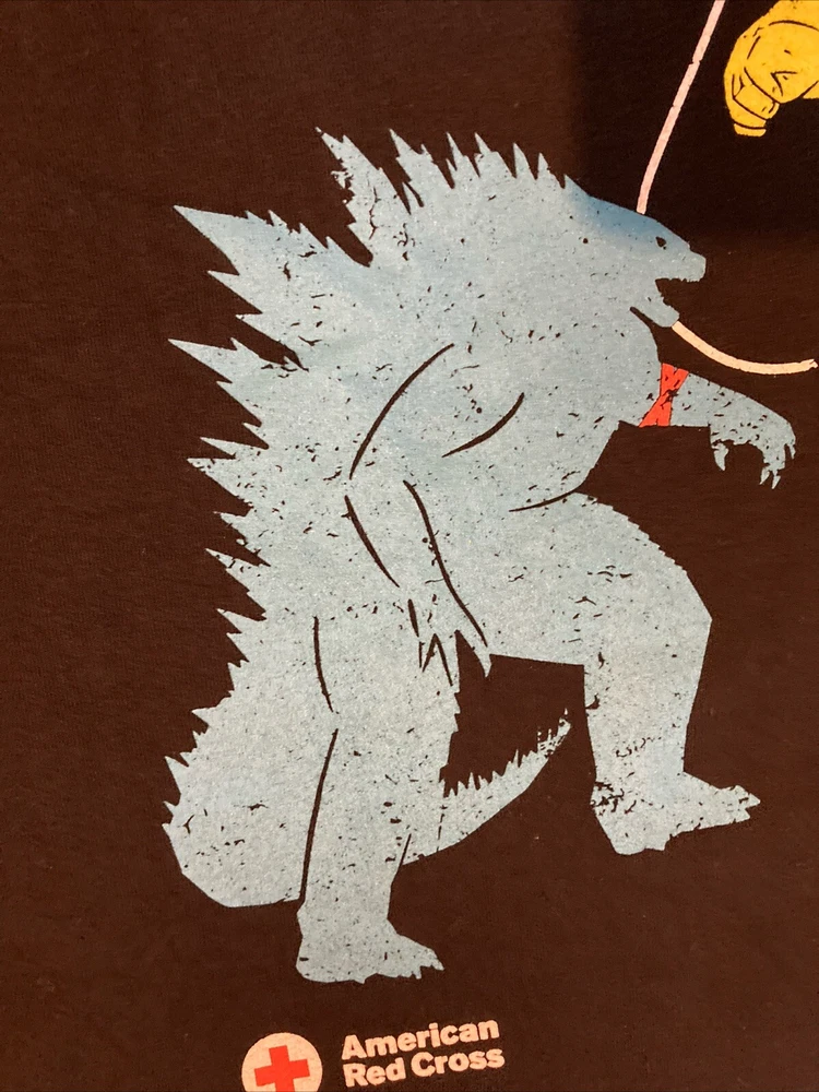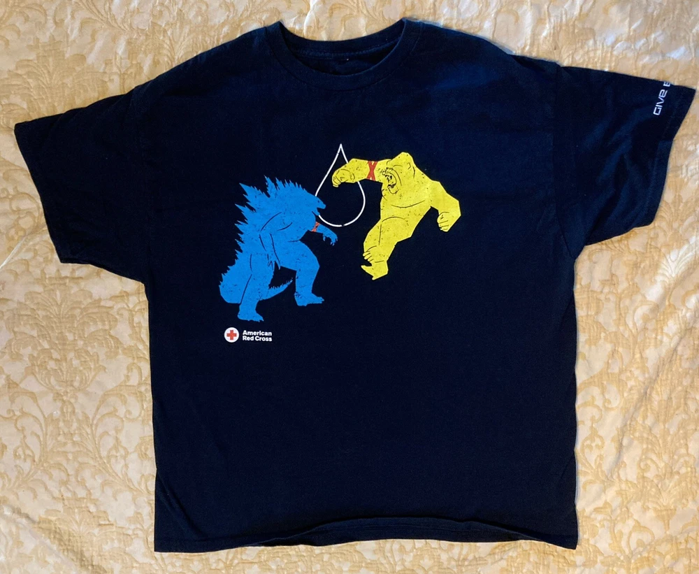 Show off your love for the iconic movie characters, Godzilla and King Kong, with this solid black T-shirt from the American Red Cross. Featuring a crew neckline and short sleeves, this regular fit shirt is perfect for both men and women, in size XL. The shirt is made from high-quality material and is suitable for everyday wear. The shirt is a perfect addition to any movie fan's wardrobe and is great for casual outings or events. The shirt is designed with the theme of the movie, Godzilla King Kong, and features the characters in an eye-catching manner. This shirt is perfect for those who love to show off their fandom and support their favorite characters. Pictures show what you will receive. Shirt is in great condition, no rips, tears, or stains. Message me with any questions. Thank you for looking.