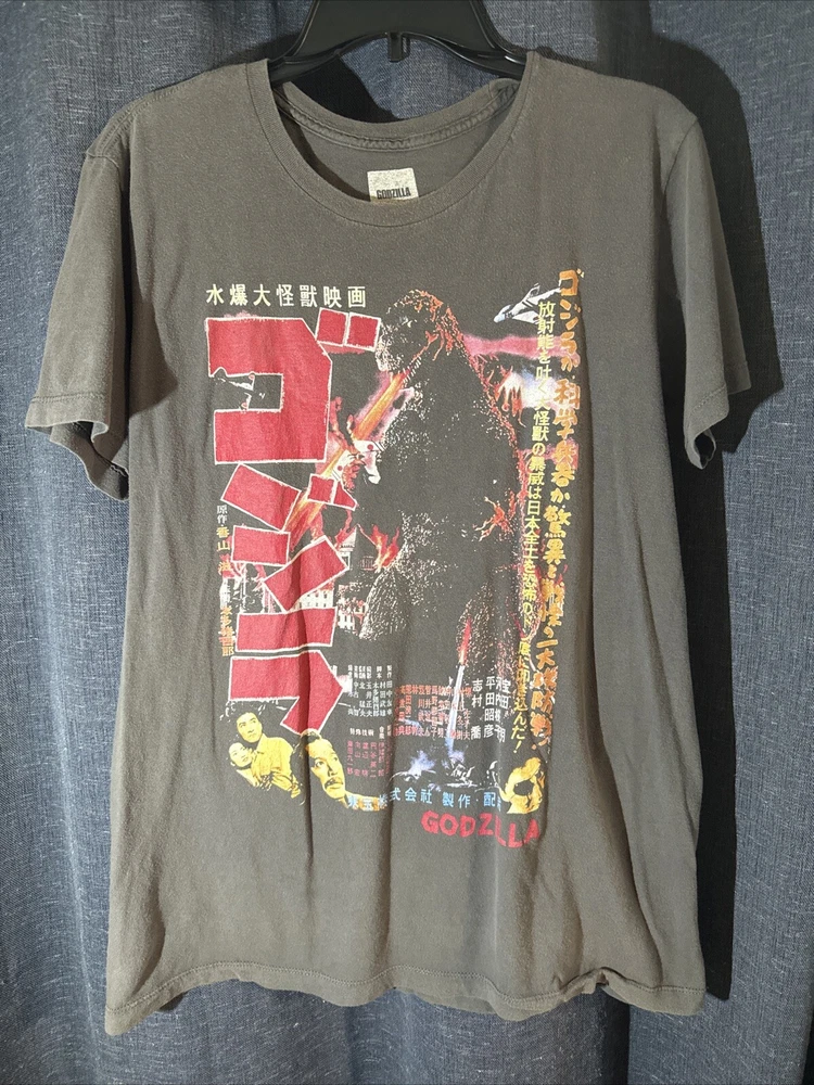 Show off your love for the iconic monster with this gray T-shirt featuring the 1954 Godzilla poster from Hot Topic. The shirt is made for men in size L and features a comfortable fit. The Godzilla theme is perfect for any fan of the franchise, and the T-shirt is sure to make a great addition to any collection. Don't miss your chance to get your hands on this unique piece of clothing that will surely turn heads.