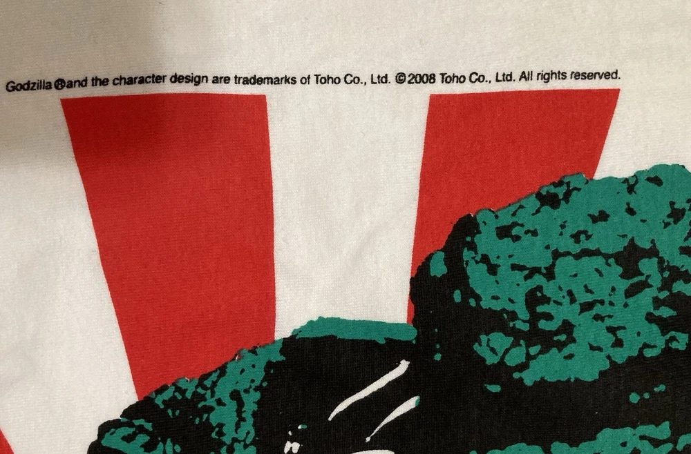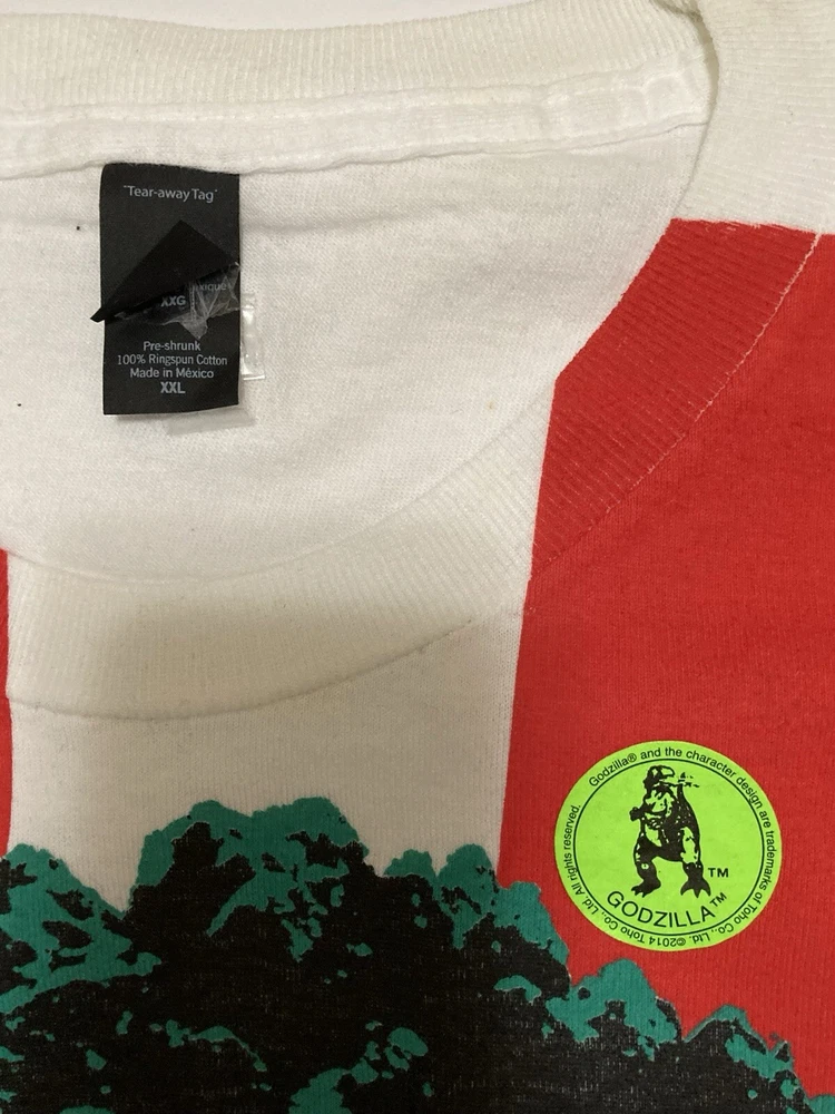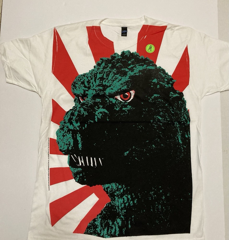 Rare, licensed 2013 big print Godzilla Rising Sun t-shirt made by Impact Merchandising. Never sold retail, never worn, in new condition. Still has the Toho Godzilla sticker. A size Large, from left to right under the arms is about 21", down the front is about 27", and down the back is about 29 3/4". This is the original item and not a modern reproduction.