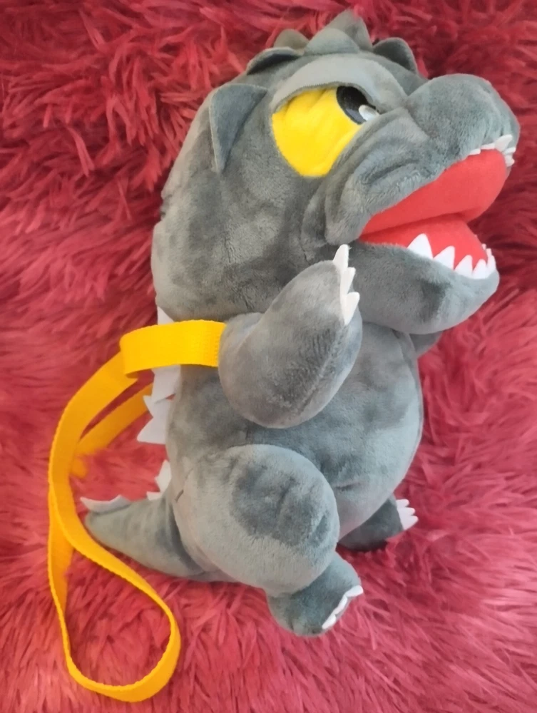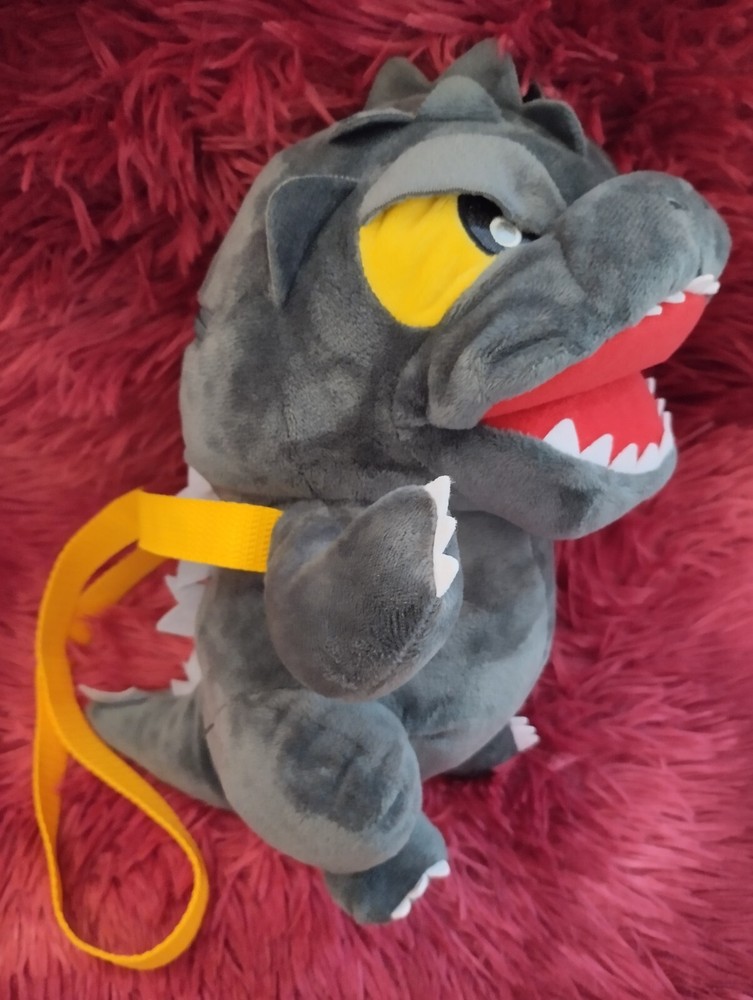 Upon this listing is 💥 Free Shipping 💥 GODZILLA Stuffed Plush Doll Purse with shoulder strap Size : app. 9 inch. tall Strap length app. 25 inch. Genuine TOHO Product Described as Pre-owned but actually it is UN-USED Excellent Condition Well Kept and Well Cared Don’t miss this! Thank you for looking!