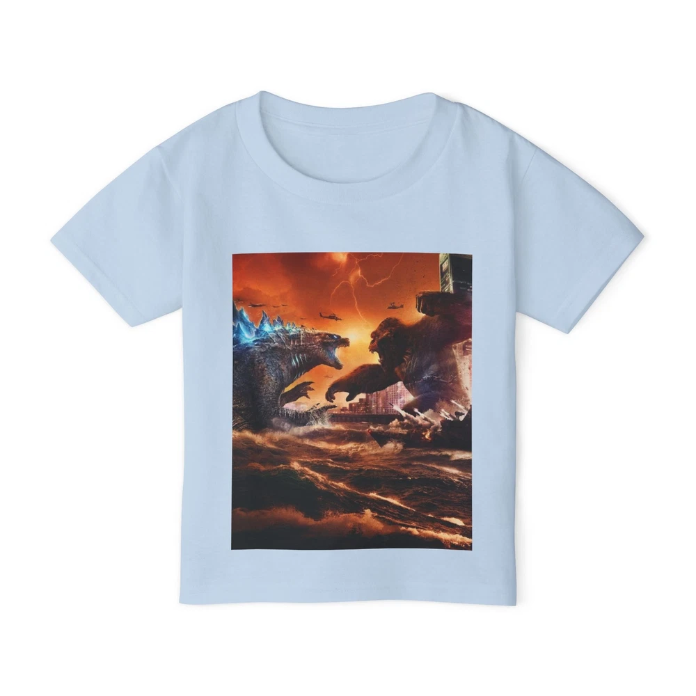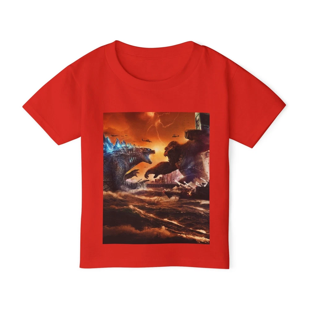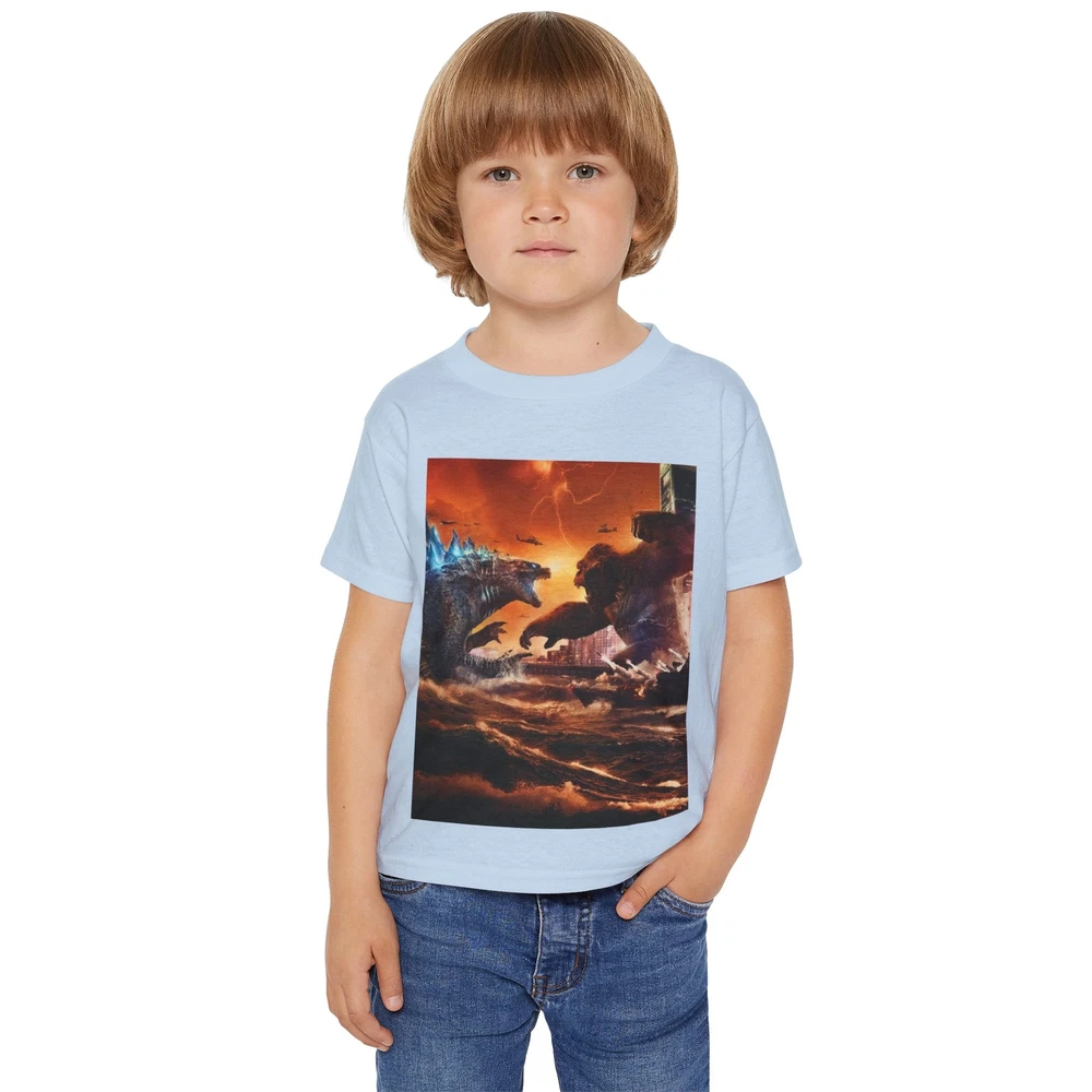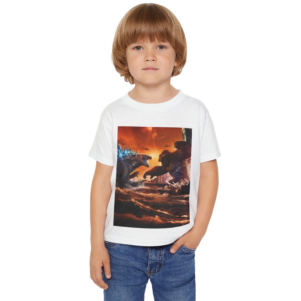 Unleash monster-sized fun with our Godzilla Adventure Toddler T-Shirt. Perfect for little fans of excitement and adventure, this comfy kids tee features a bold and playful Godzilla graphic that sparks imagination. Made from soft, breathable cotton, it’s gentle on your child’s skin and built for all-day play. Whether it's a birthday gift, a special occasion, or everyday fun, this shirt adds a roar of joy to any outfit. Available in multiple sizes for toddlers and young kids. Let your little one stomp into fun with style and comfort in this epic Godzilla-themed tee. Product features - Fiber composition: Solid colors are 100% cotton (Sport Grey is 90% cotton, 10% polyester) - Neck and shoulder tape: Twill tape covers the shoulder and neck seams to stabilize the back of the shirt and prevent stretching - With side seams: Located along the sides of a garment, they hold shirts shape longer and lend it structural support - 1x1 Ribbed collar: Allows the shirt to stretch as it is put on, afterwards the collar goes back to its original size, leaving a well-fitted tee - Medium fabric: 5.3 oz/yd² (180 g/m²) Care instructions - Machine wash: cold (max 30C or 90F) - Non-chlorine: bleach as needed - Tumble dry: low heat - Iron, steam or dry: low heat - Do not dry clean