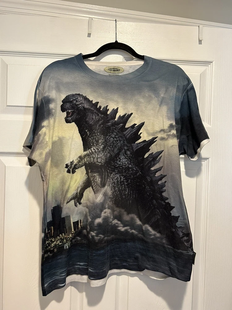 This Colorado Timberline T-shirt features an all-around print of the iconic movie monster, Godzilla. Made of high-quality polyester material, it is available in size M with a regular fit. The shirt comes in a solid blue color with a crew neckline and short sleeves. Perfect for fans of the movie, this T-shirt is a great addition to any collection. Its unique design is sure to turn heads and spark conversations. Get your hands on this one-of-a-kind piece to show off your love for Godzilla.
