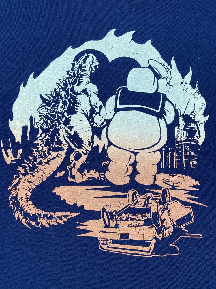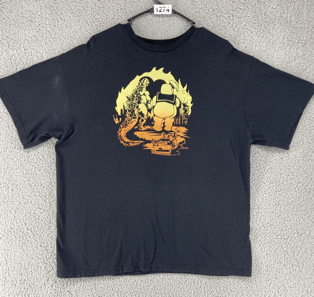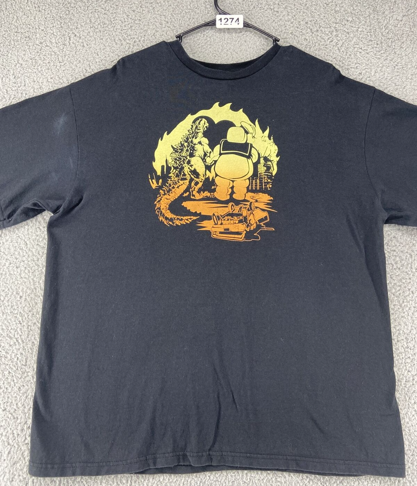 Godzilla And Marshmallow Puff Man Holding Hands Large Black T-Shirt. Great Price Won't last long BUY NOW ! 100 % Authentic! Please see my Ebay store . I list several times a week New items at Great prices. Thank You so much for shopping.