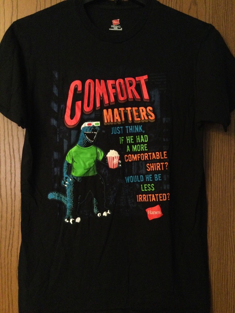 Get ready for a monsterous viewing experience with this Godzilla At Movies T-Shirt. The shirt features a classic solid black color, perfect for any occasion. The shirt is made of high-quality cotton material, ensuring maximum comfort throughout the day. The shirt's design showcases the iconic Godzilla movie theme, making it a must-have for any fan. The shirt is available in a regular fit and size type, suitable for men of all sizes. The short-sleeved shirt is perfect for those who love to watch movies in 3D. The crew neckline adds to the shirt's stylish design. This Hanes T-Shirt is an excellent addition to any movie lover's wardrobe. B 378 Pit to Pit 20” Length 30” Please note entire descriptions with measurements and whether item has any flaws. Shirts may vary in size. Smoke Free.