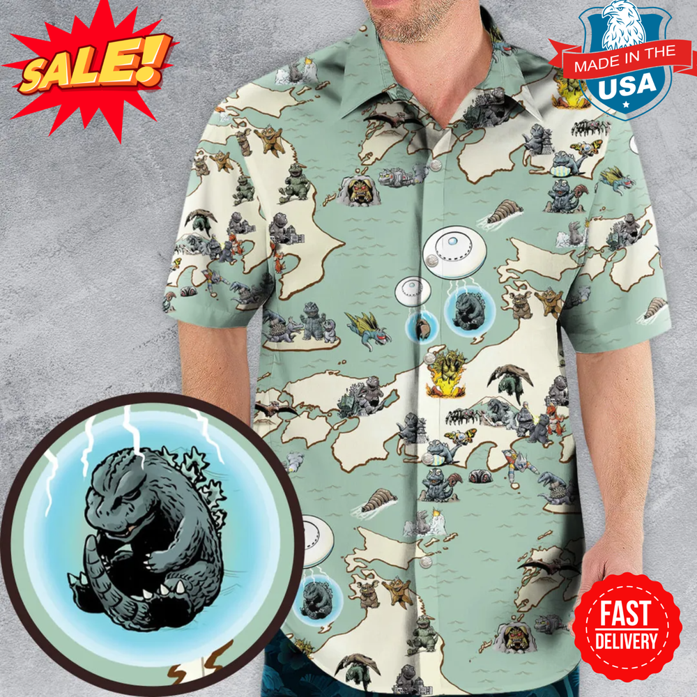 Great Godzilla Hawaiian shirt. Fun print. Excellent eBay seller. A+++ transaction.