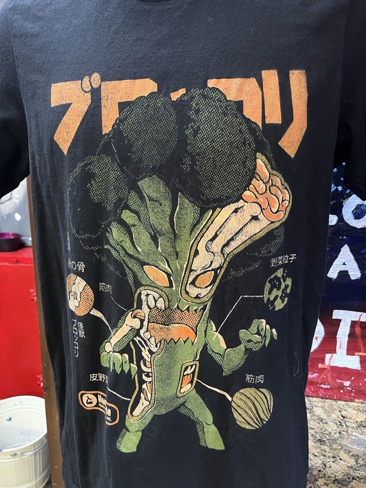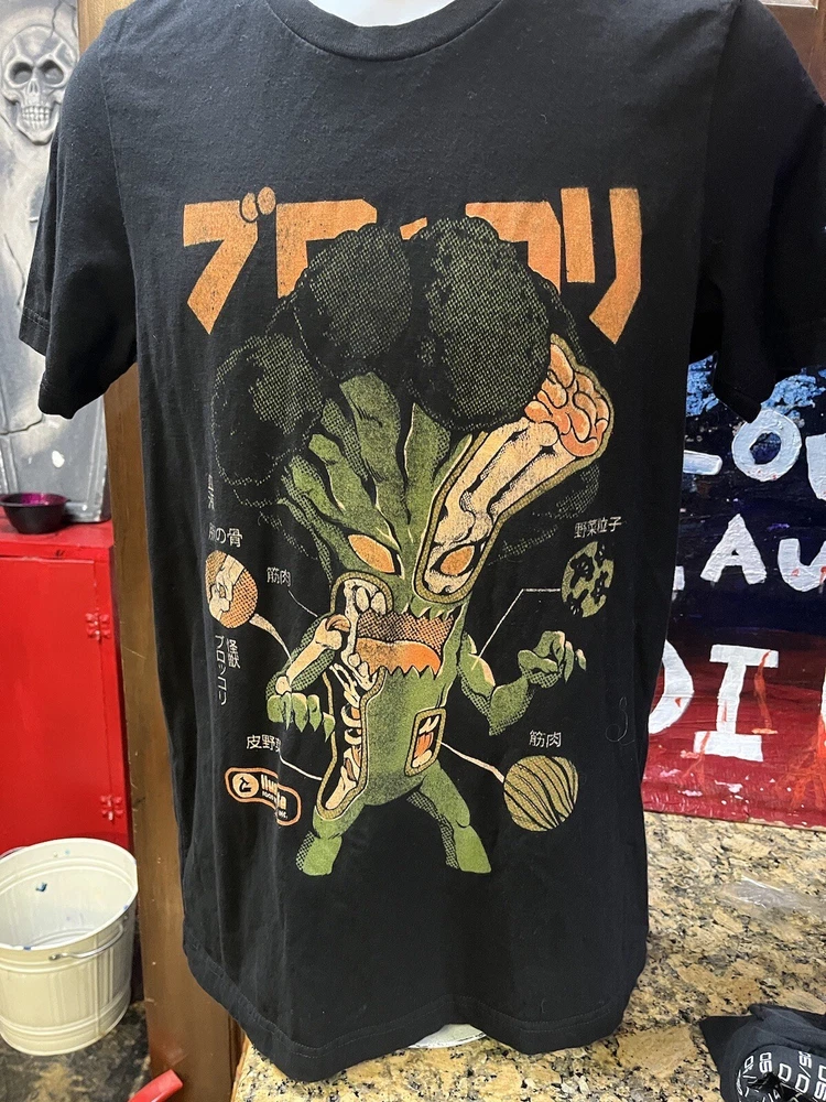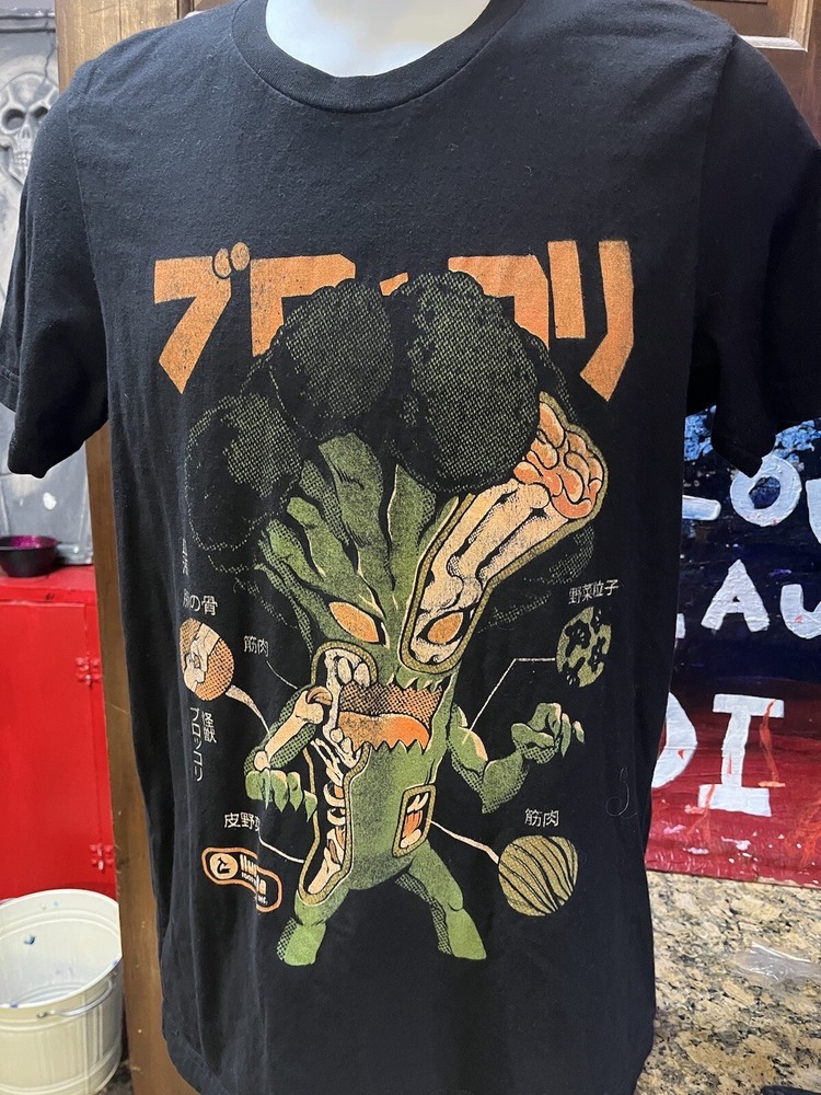 This shirt is in good condition. It’s about 19 inches underarm to underarm and about 25 inches from the top front middle collar to the waist....